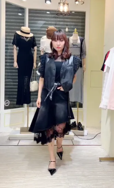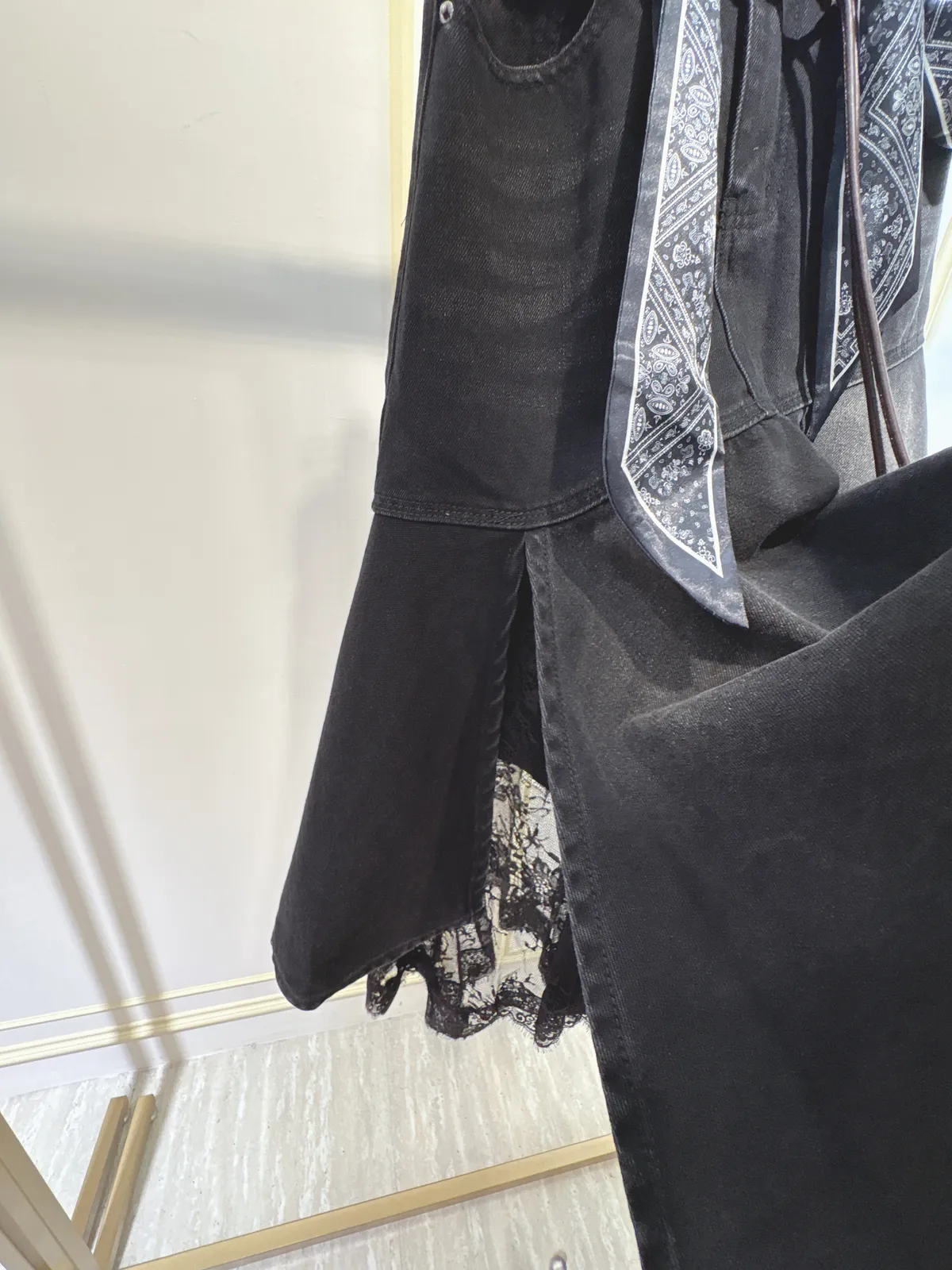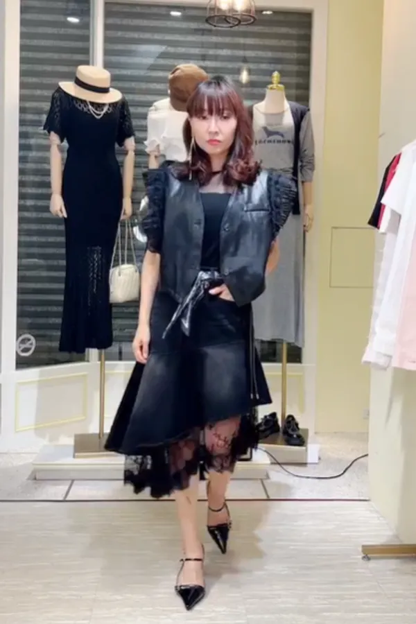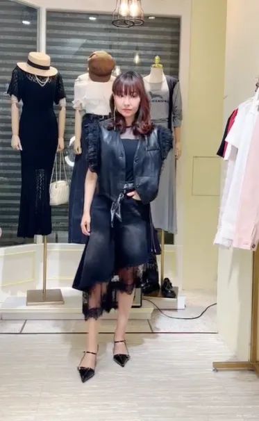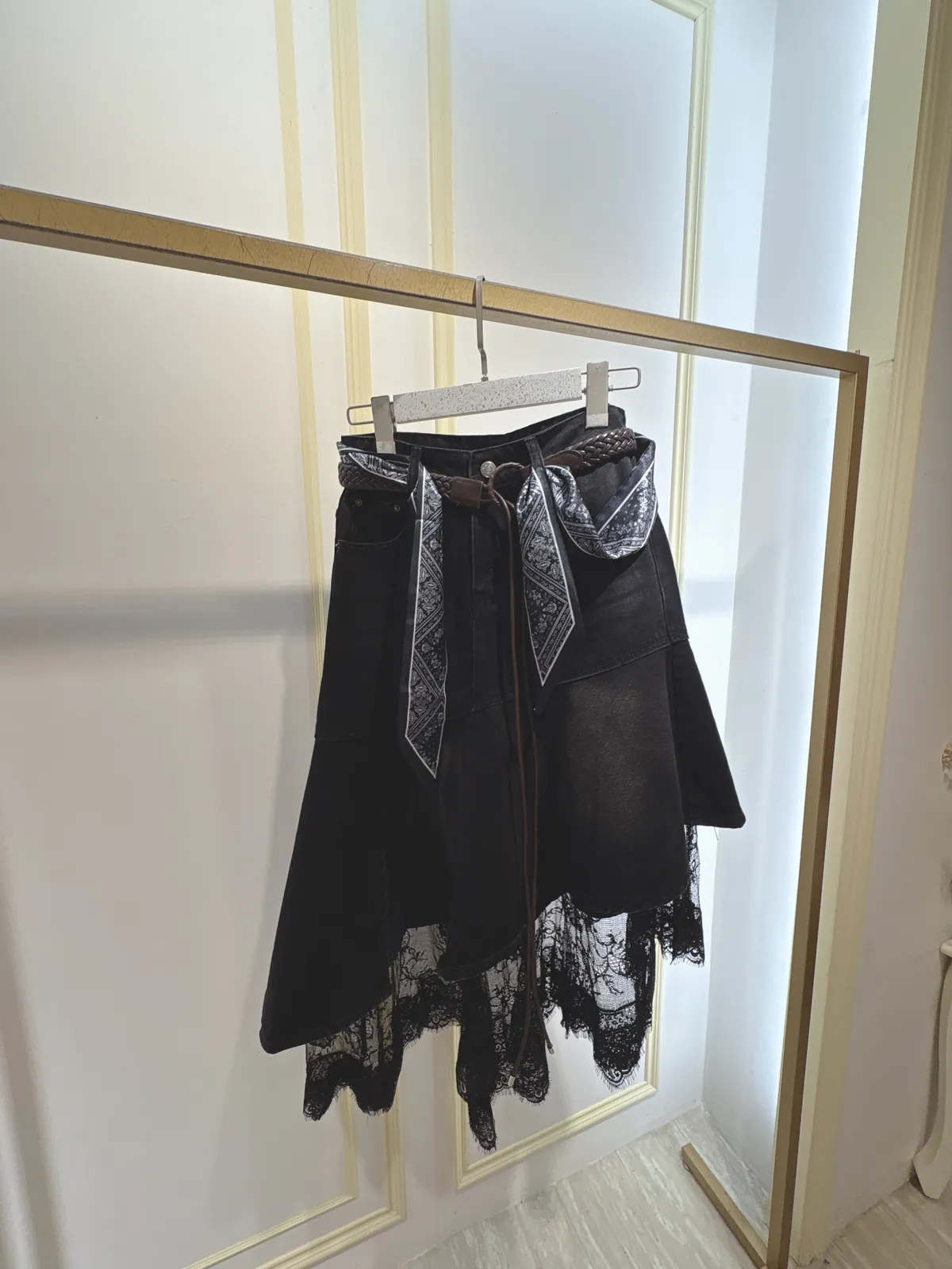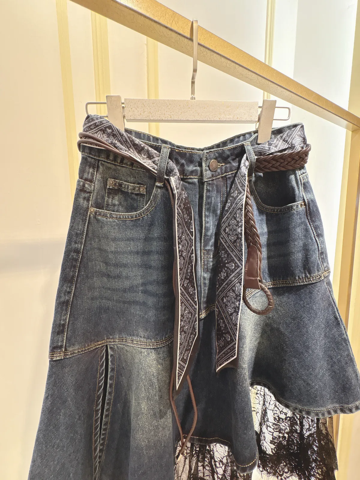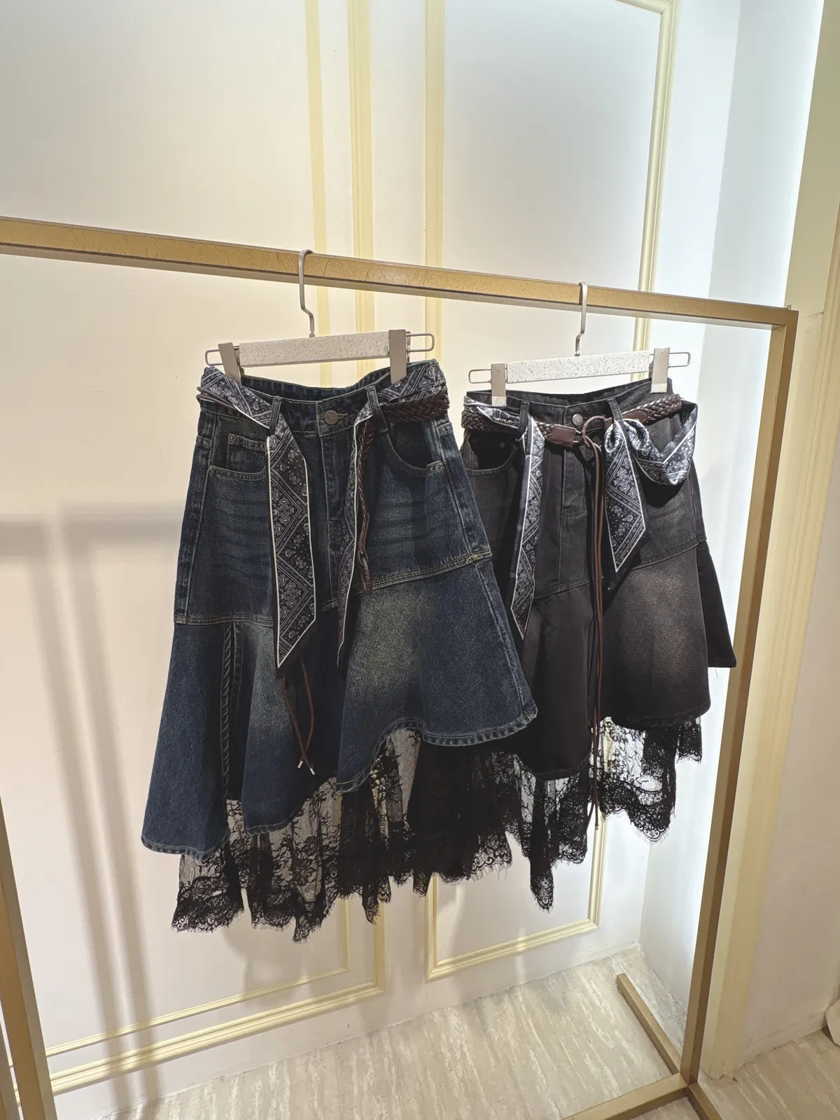 S061牛仔斜切蕾絲蛋糕裙