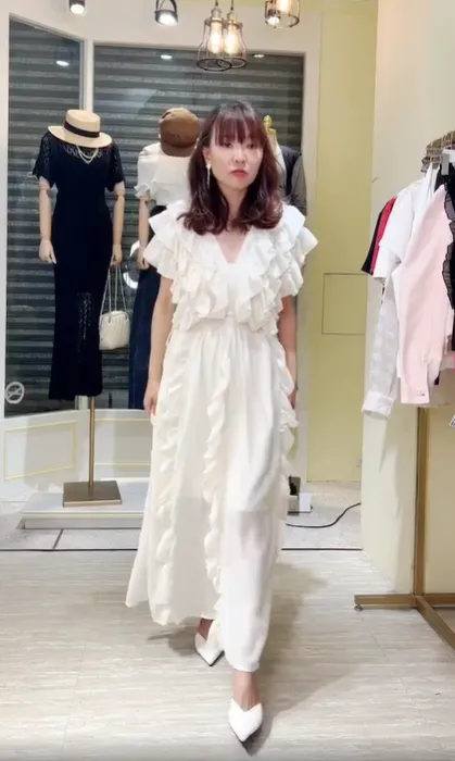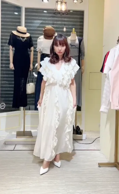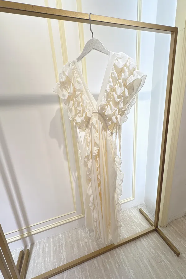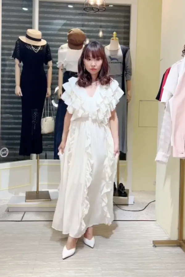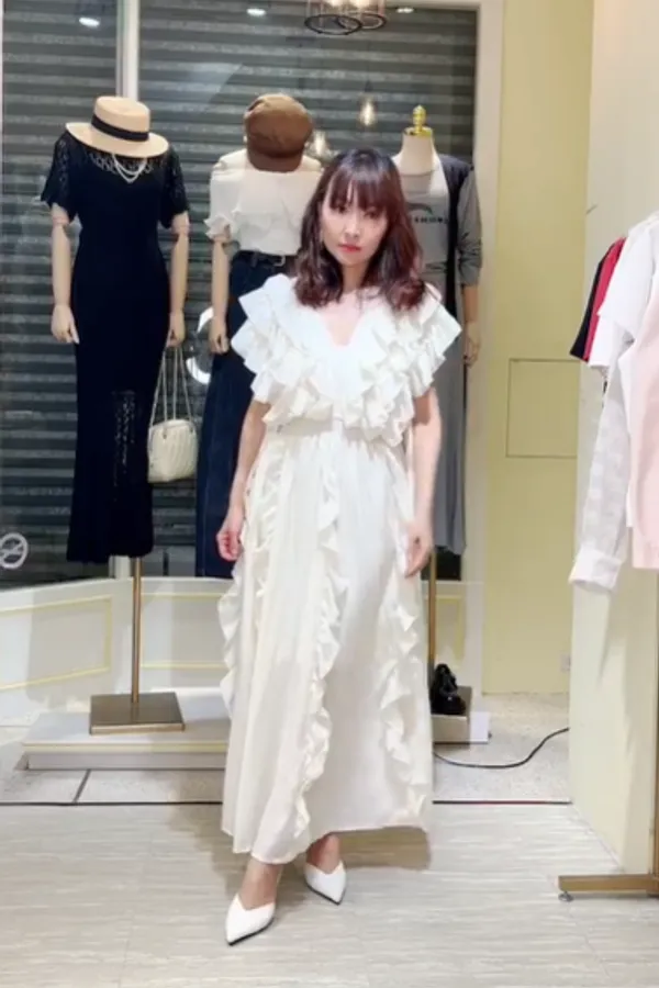 S071浪漫捲邊長洋裝
