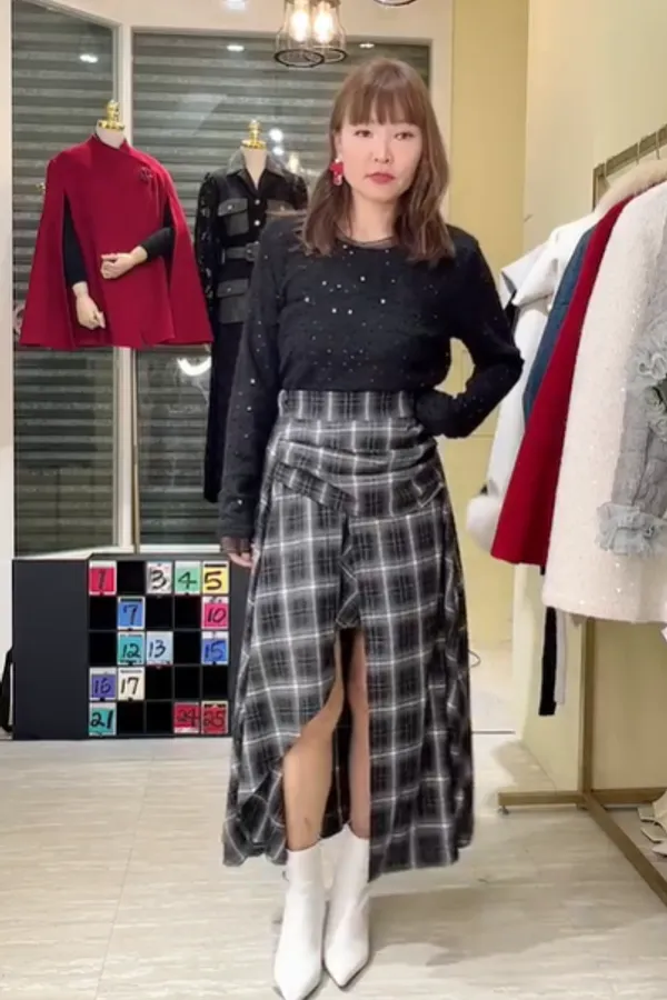 S1002格子造型長裙