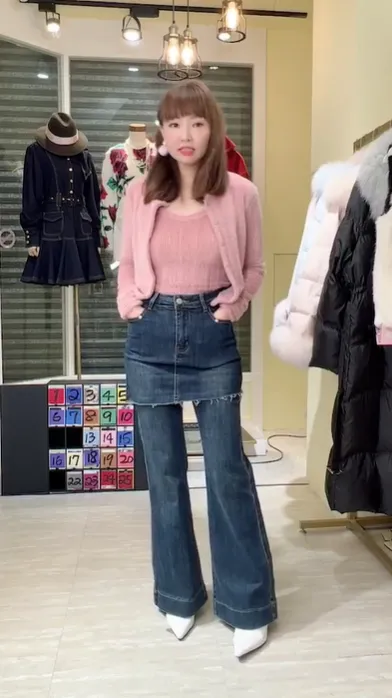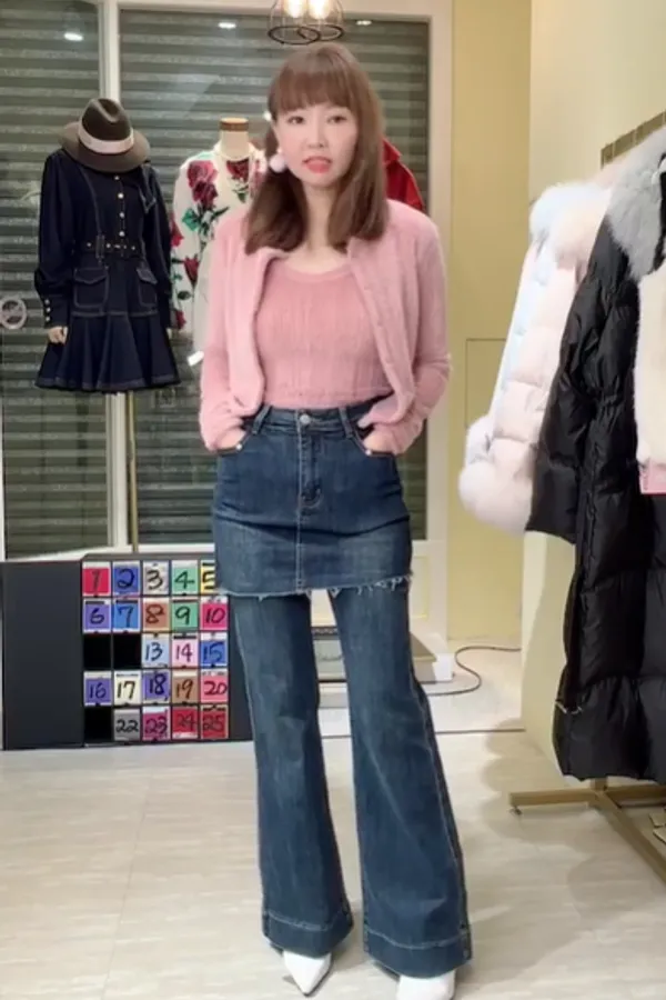 S1045牛仔喇叭褲裙