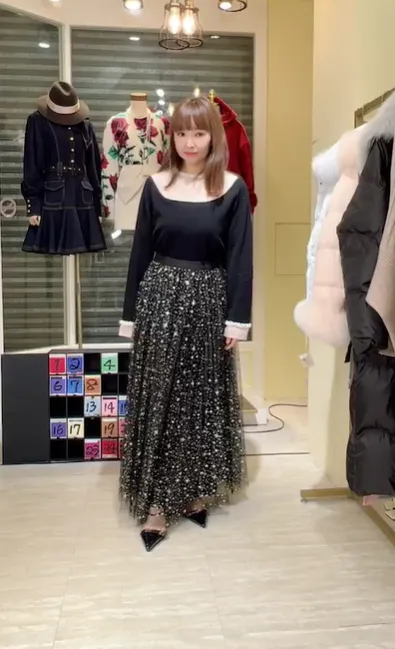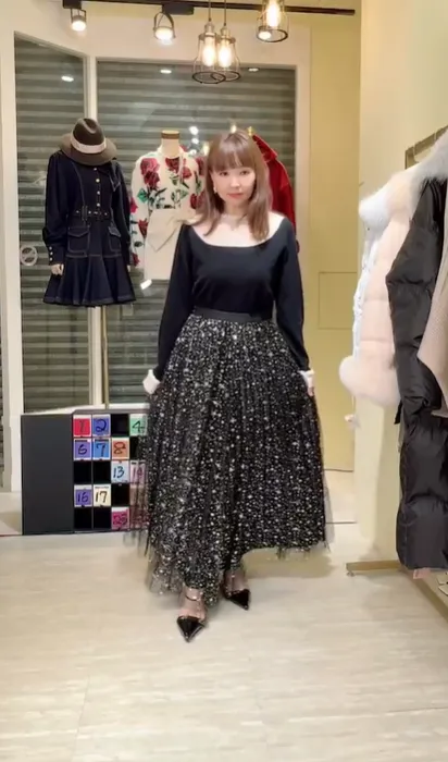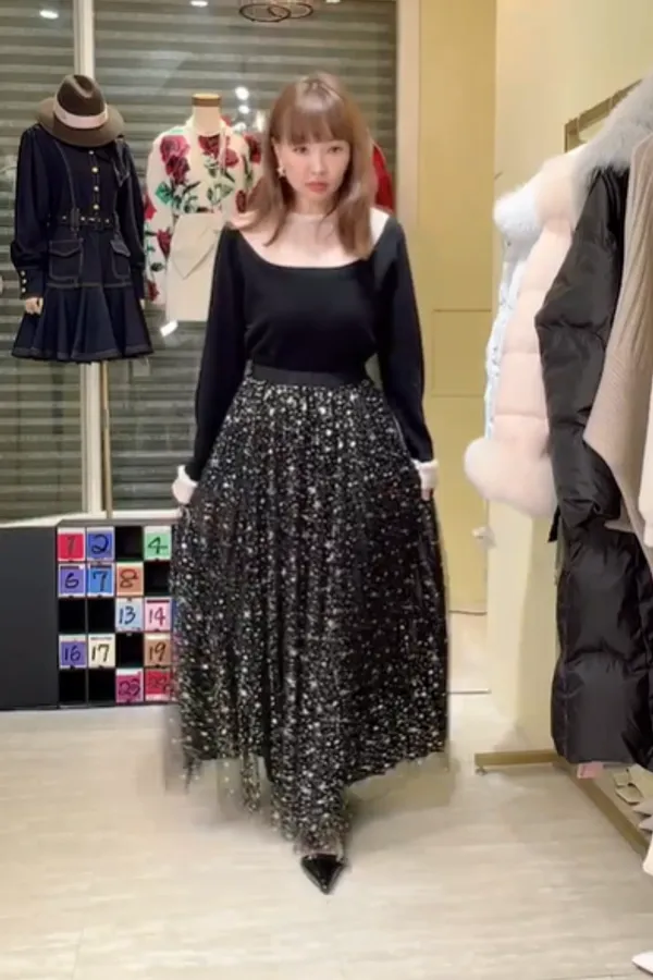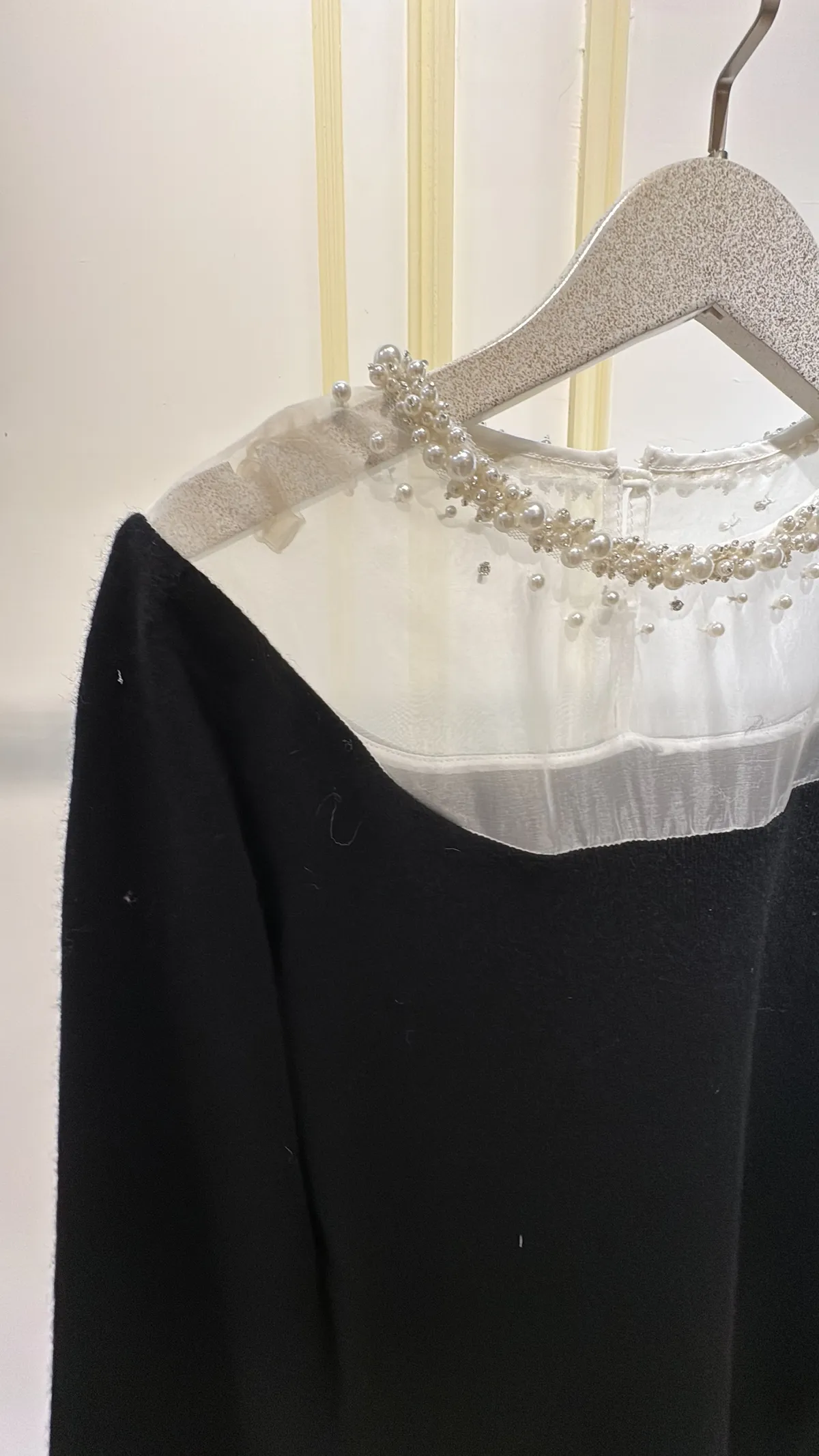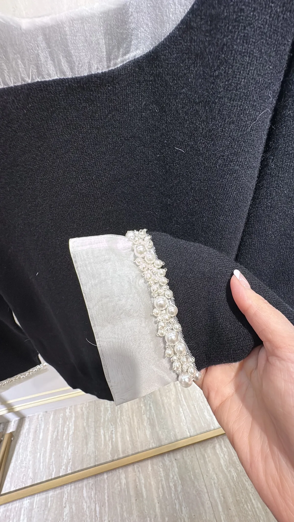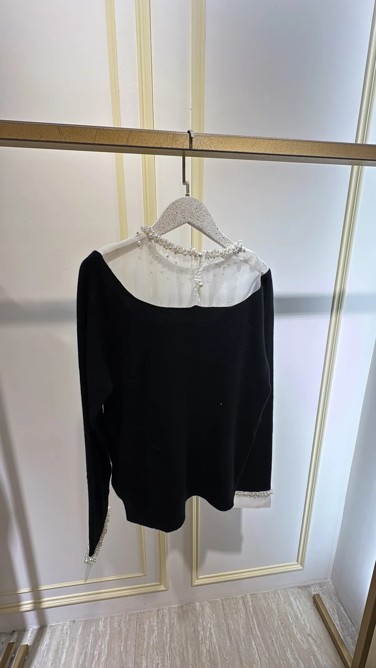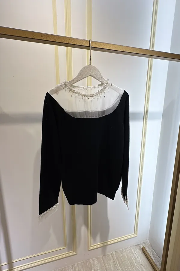 S1046肩透紗釘珠羊絨衣