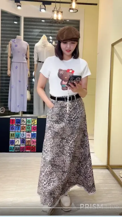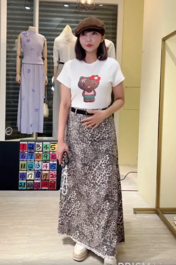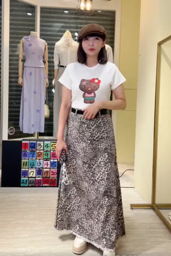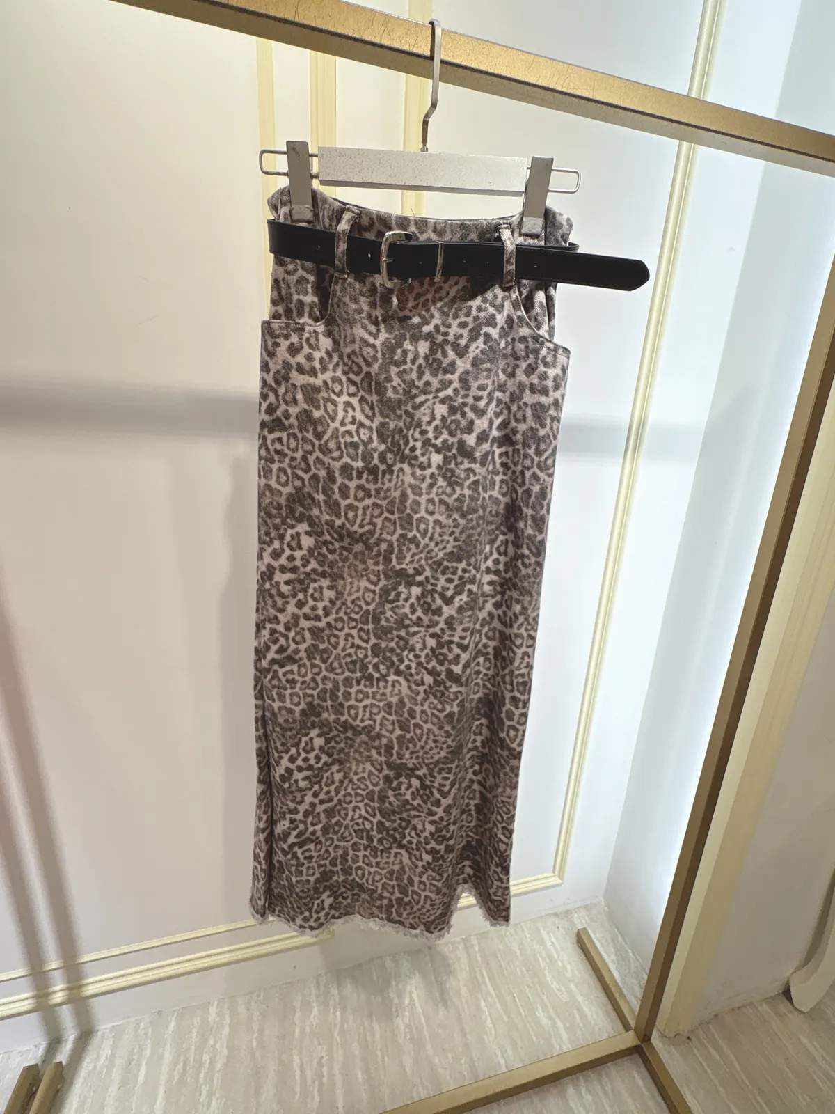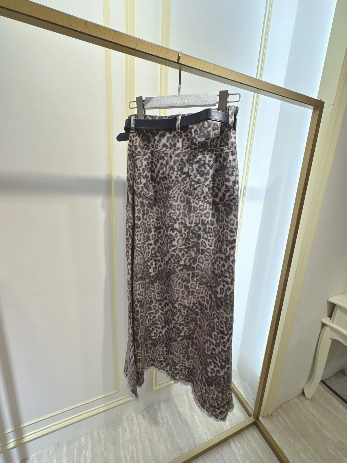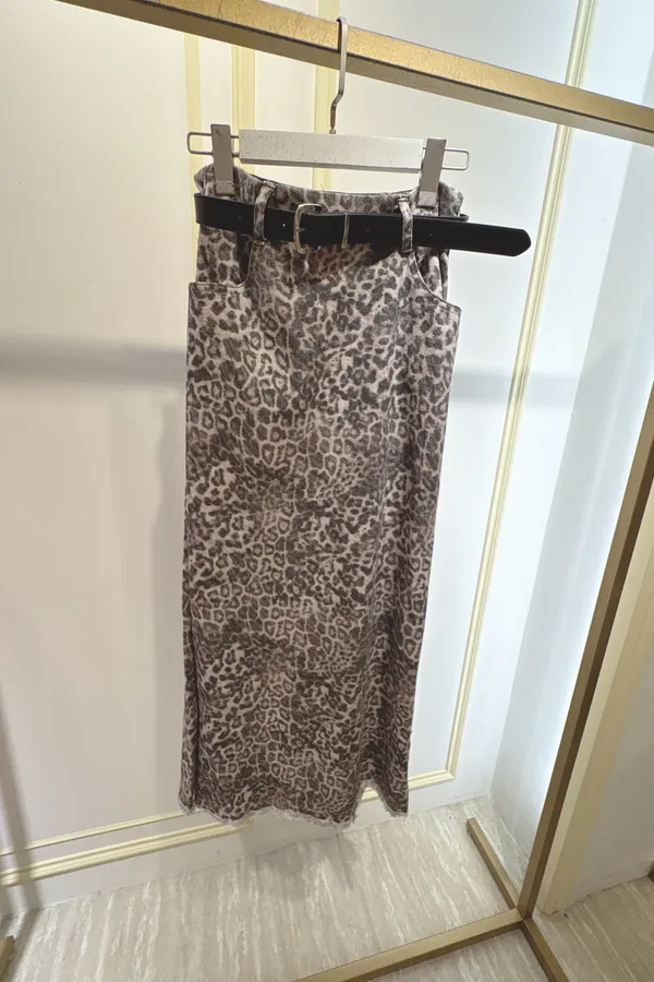 S110豹紋長裙(附皮帶)