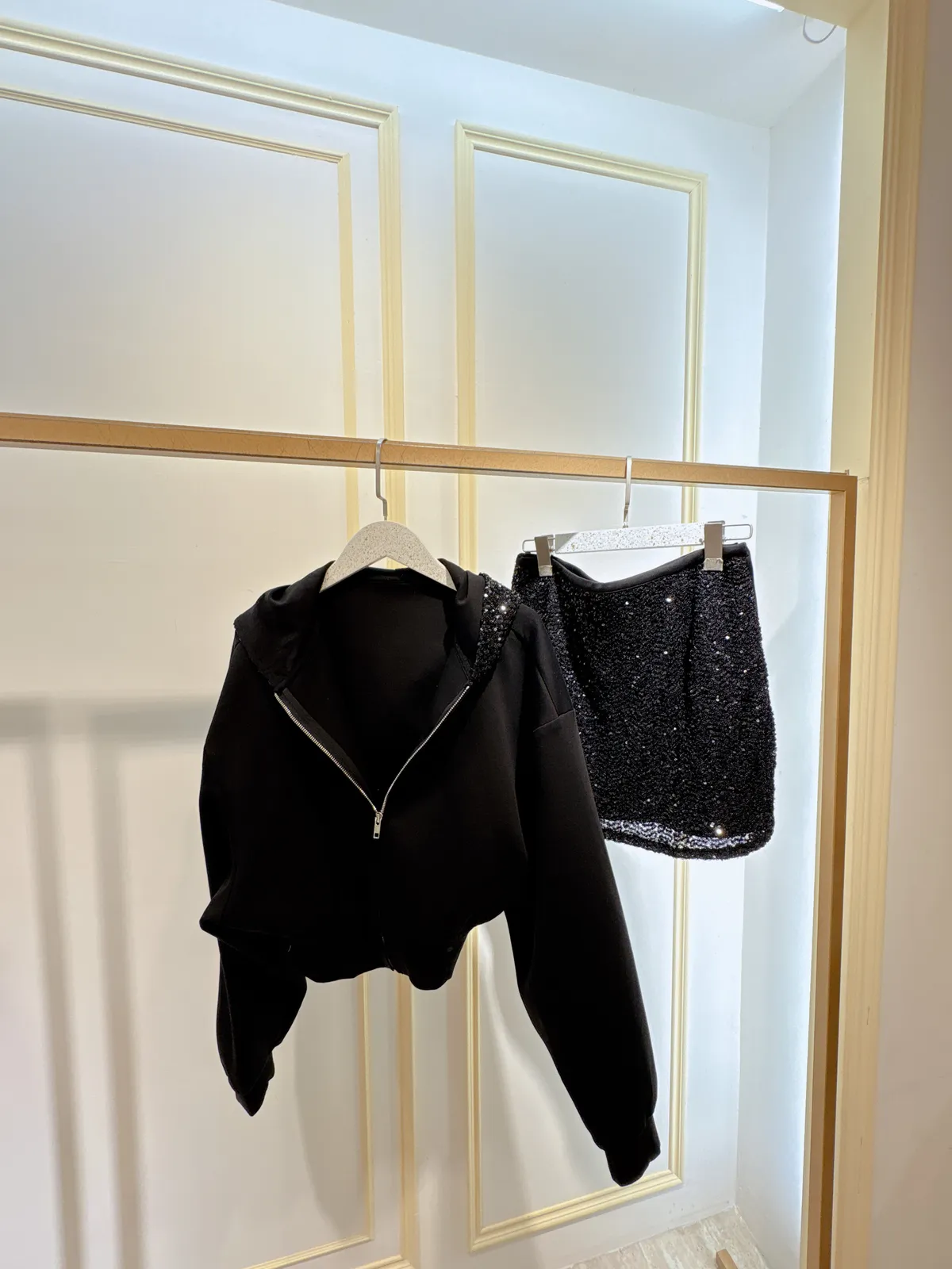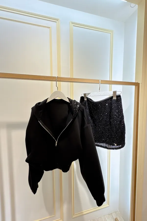 S285連帽亮片褲裙裝