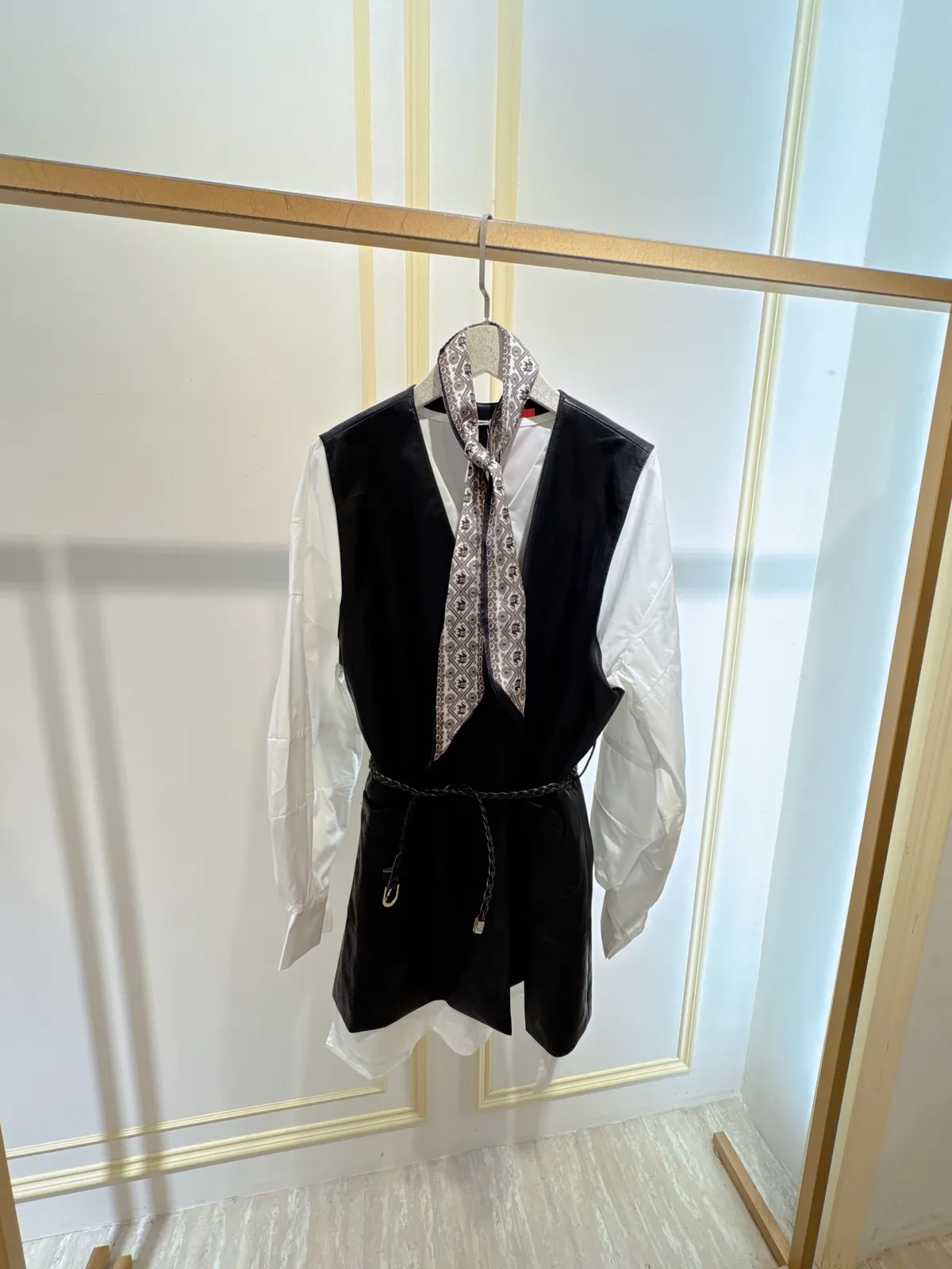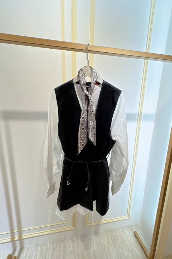 S308帥妞皮革背心兩件式洋裝