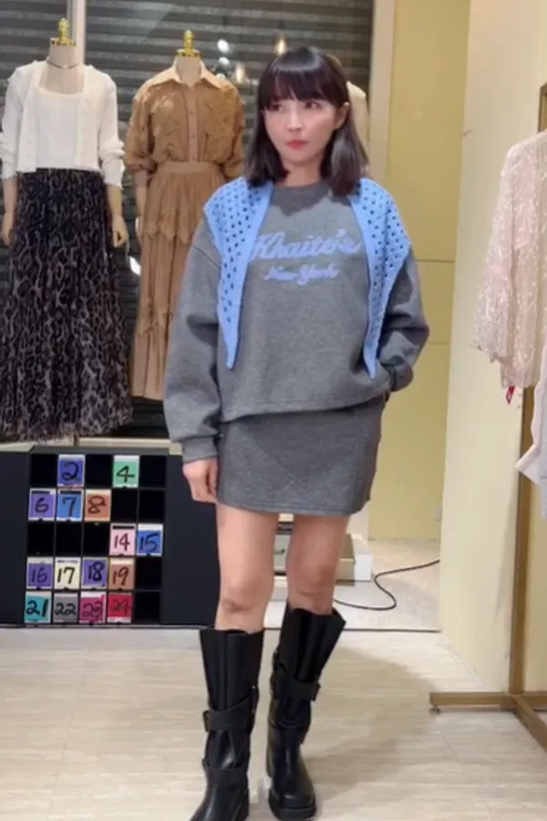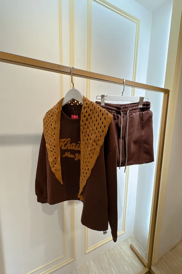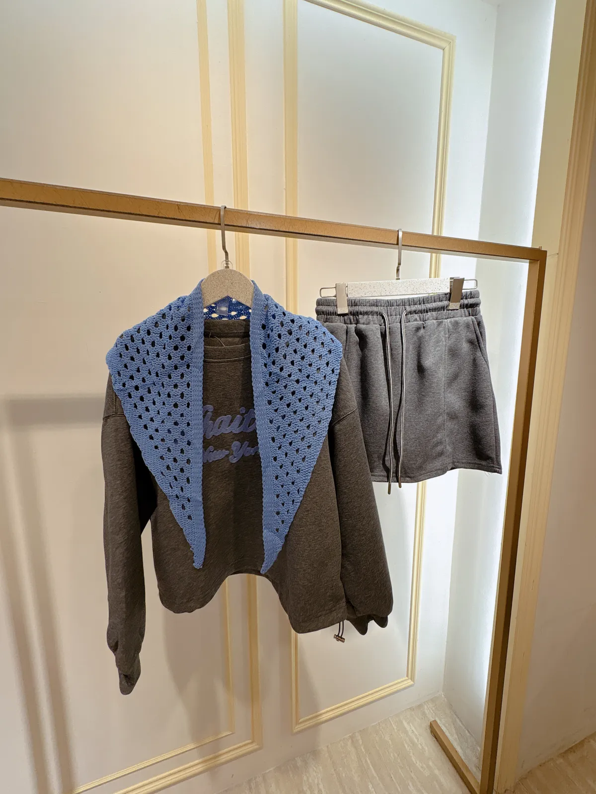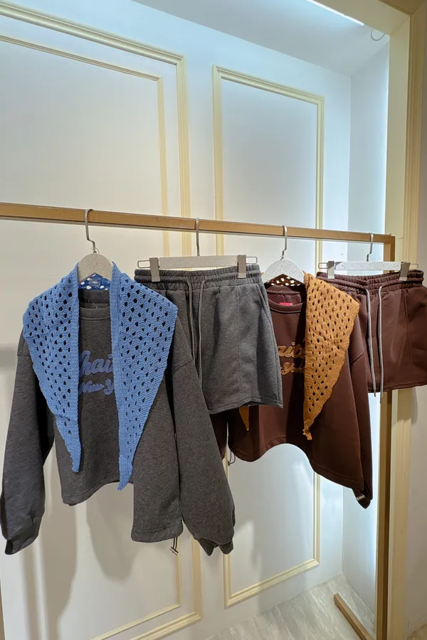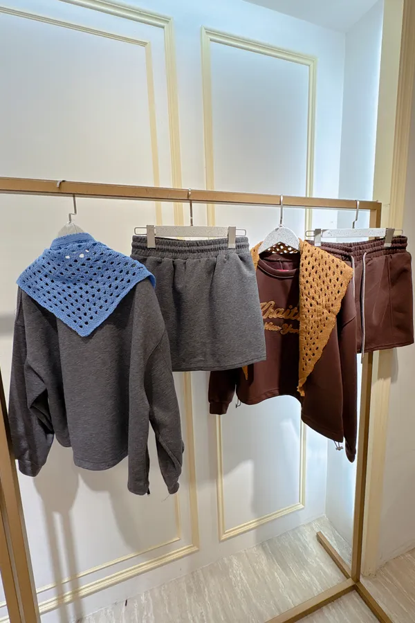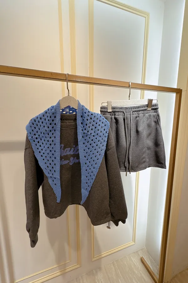 S402字母休閒短褲裙套裝(附披肩)
