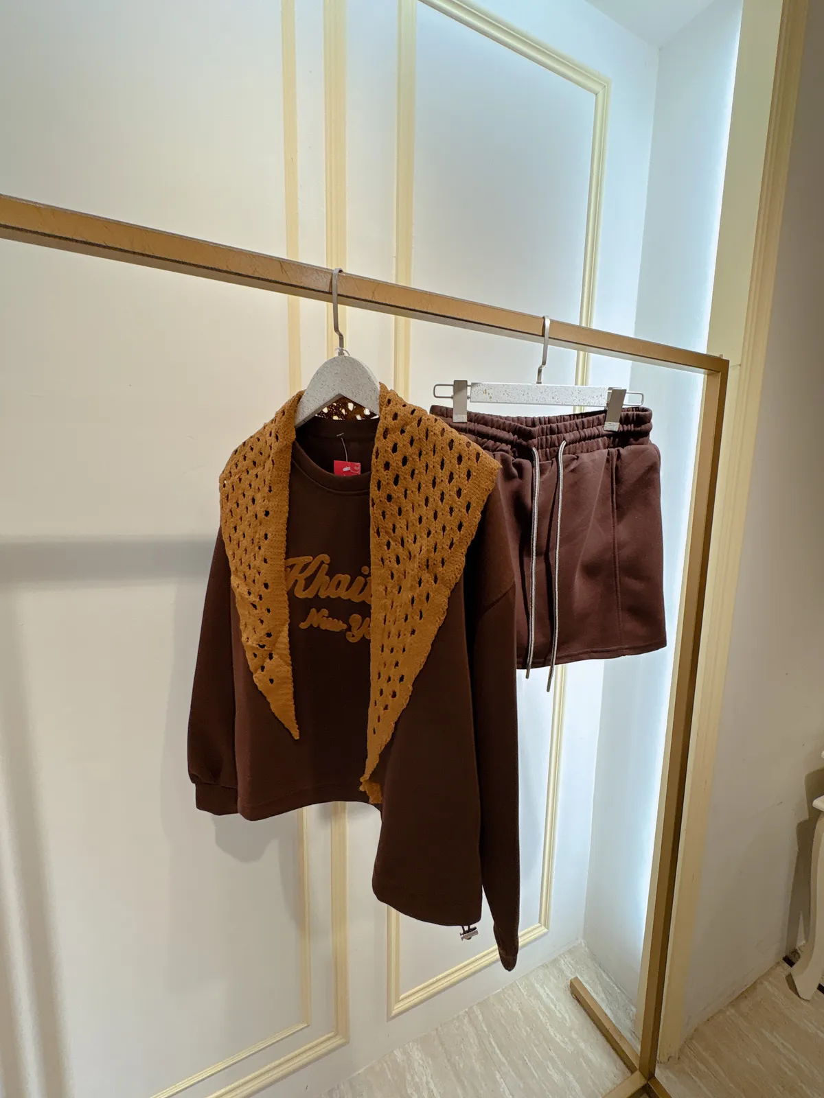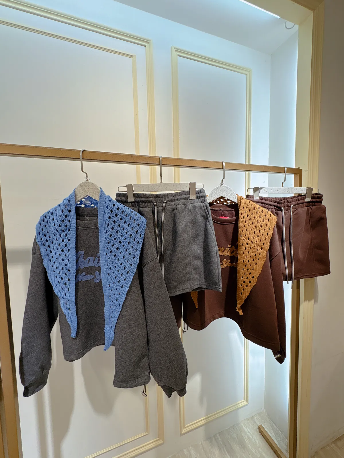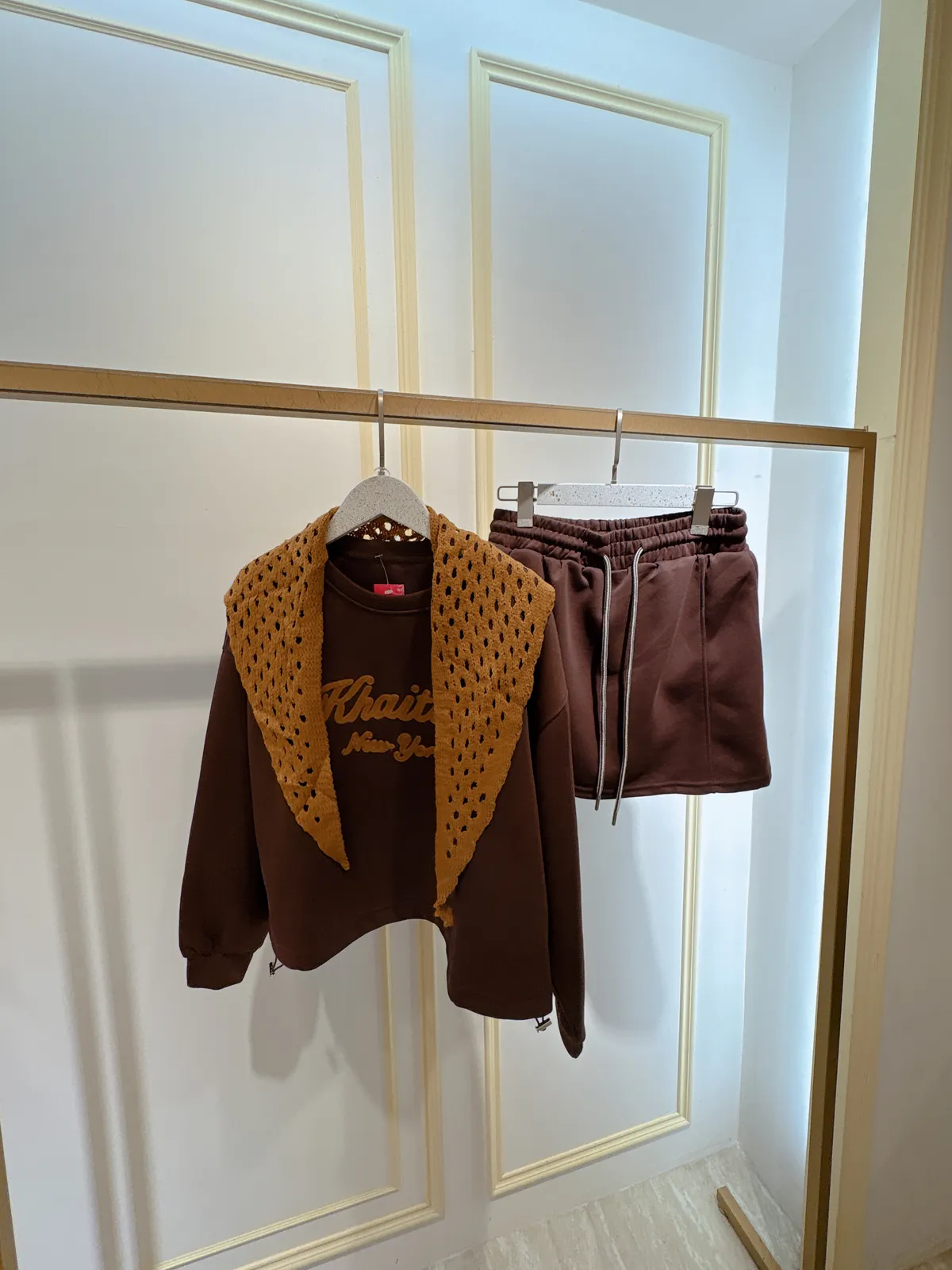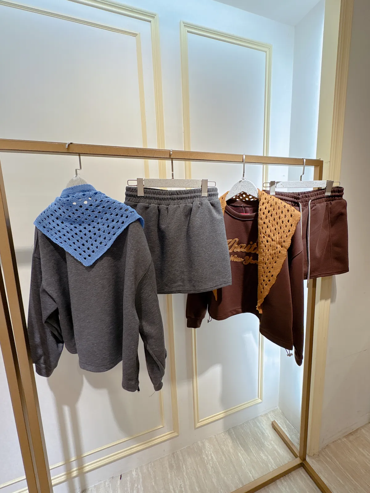 S402字母休閒短褲裙套裝(附披肩)