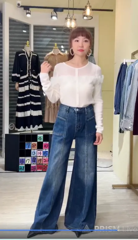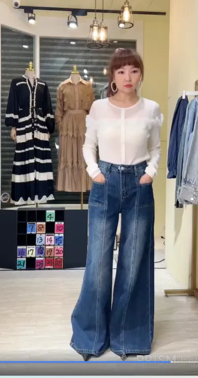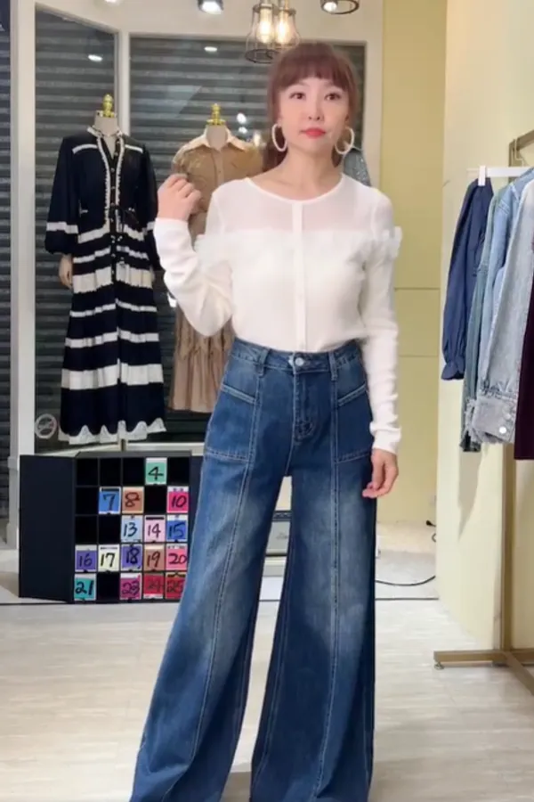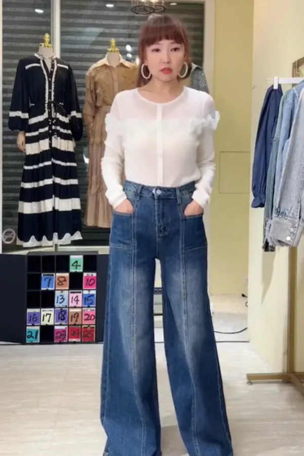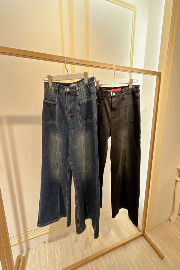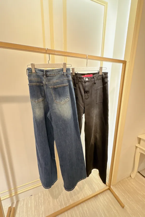 S435洗色牛仔闊腿牛仔褲