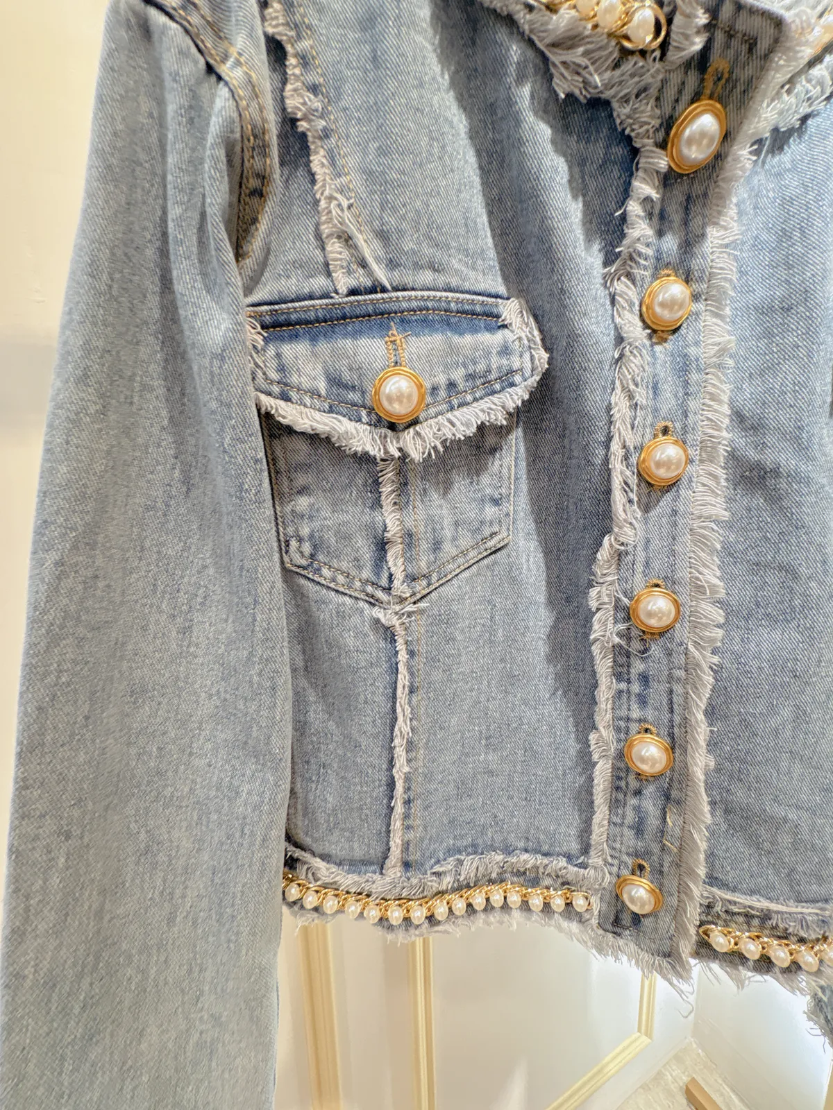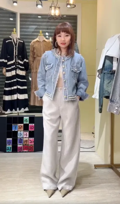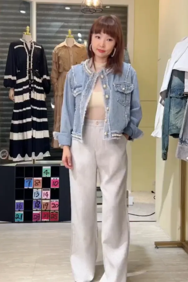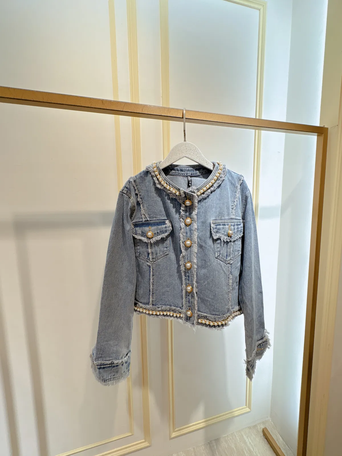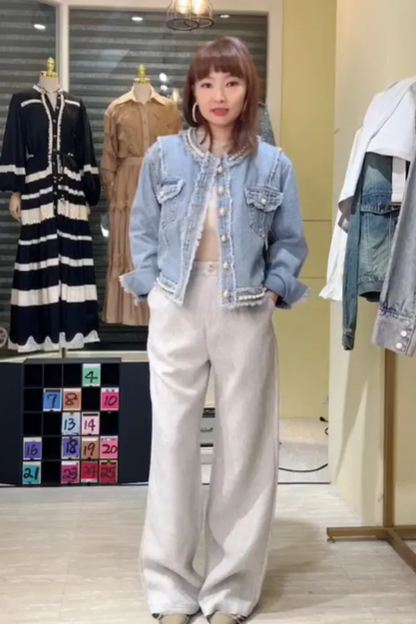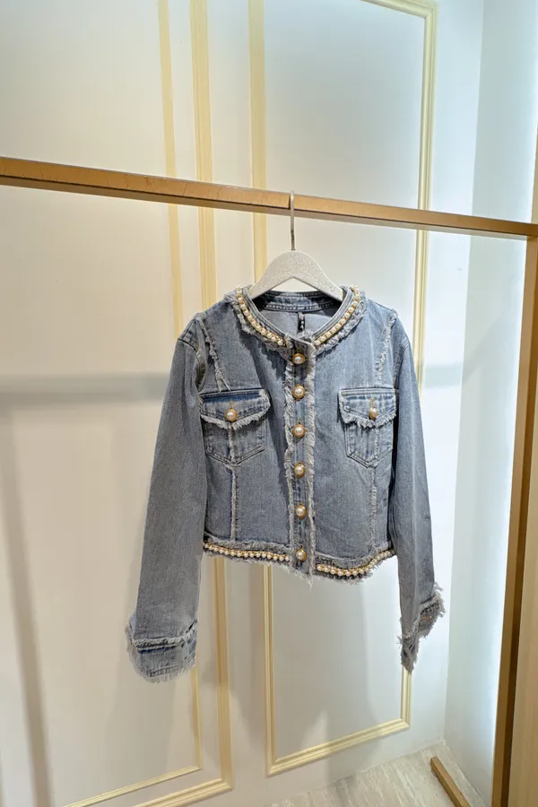 S469珍珠牛仔外套