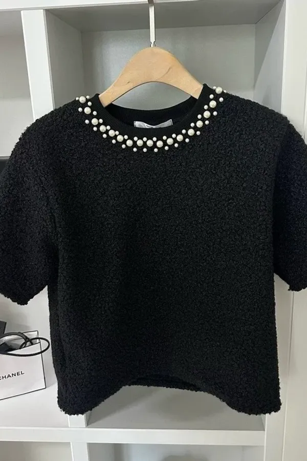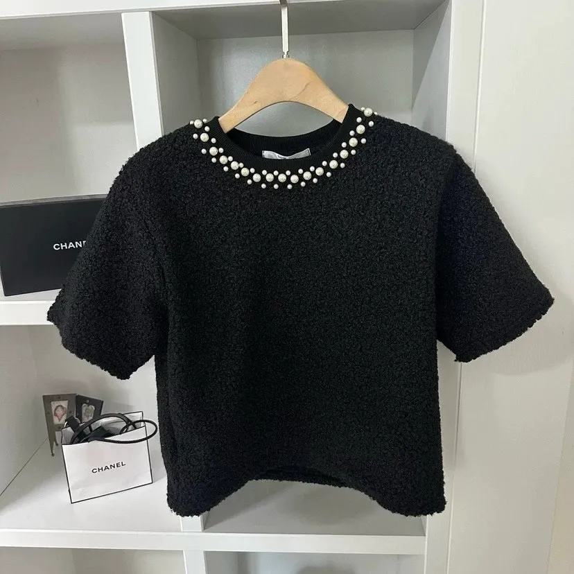 S566珍珠毛毛短袖衣