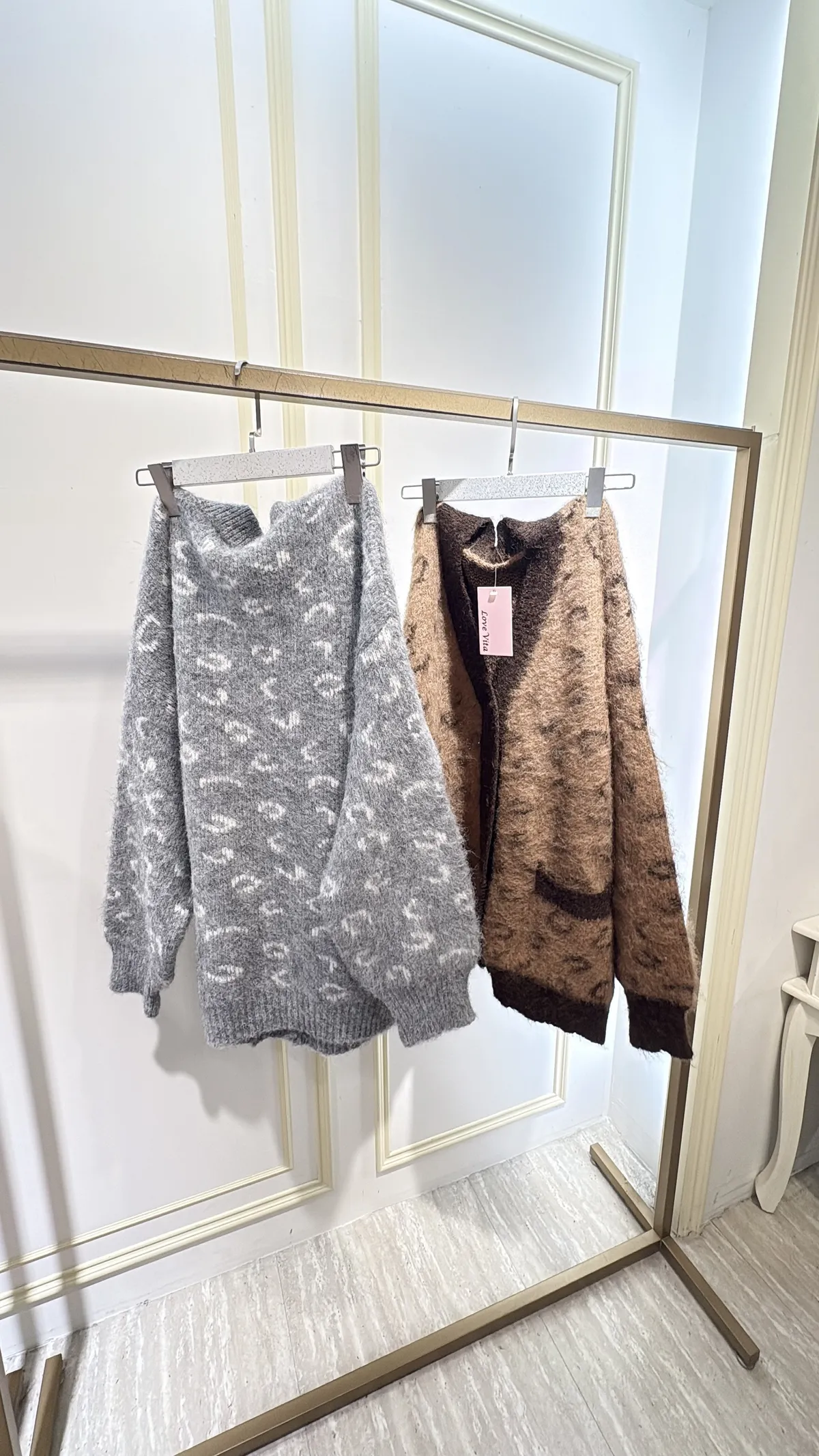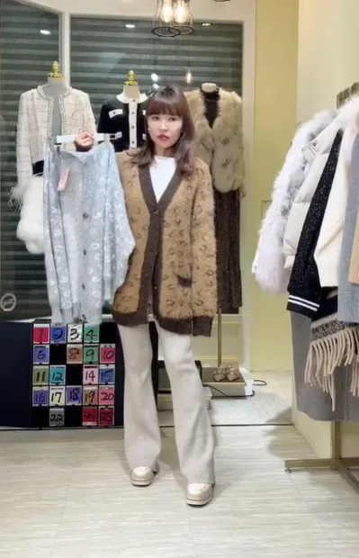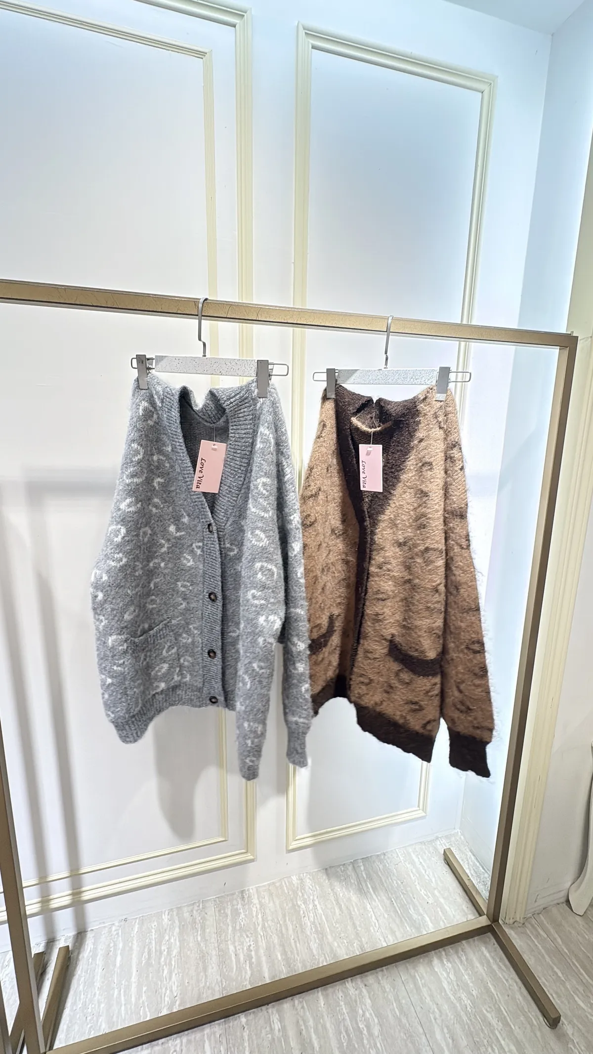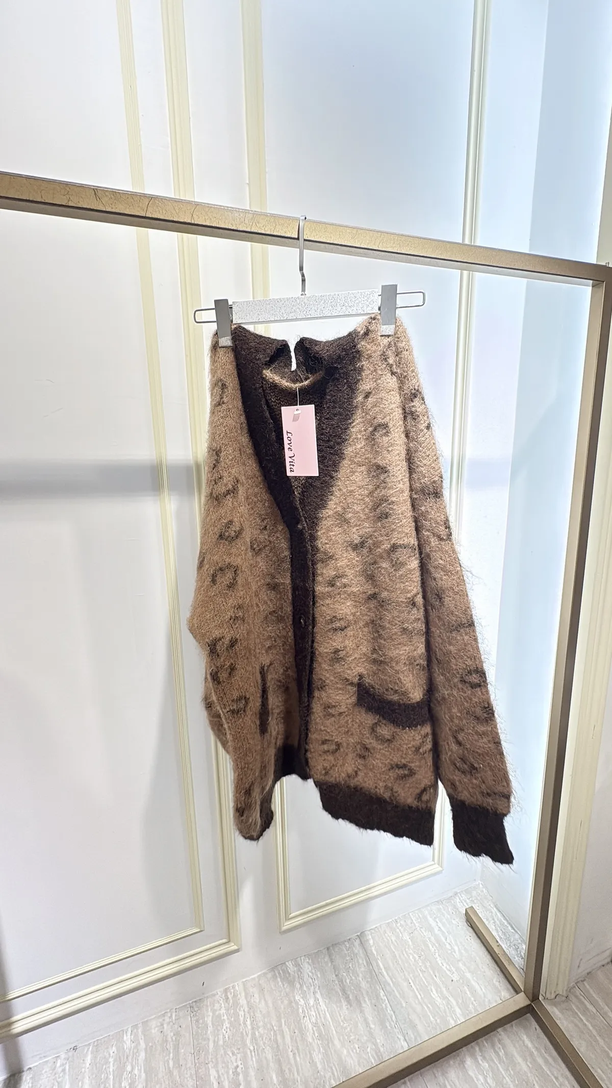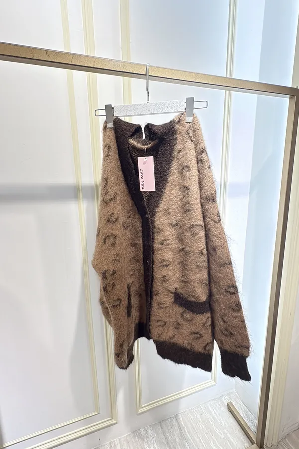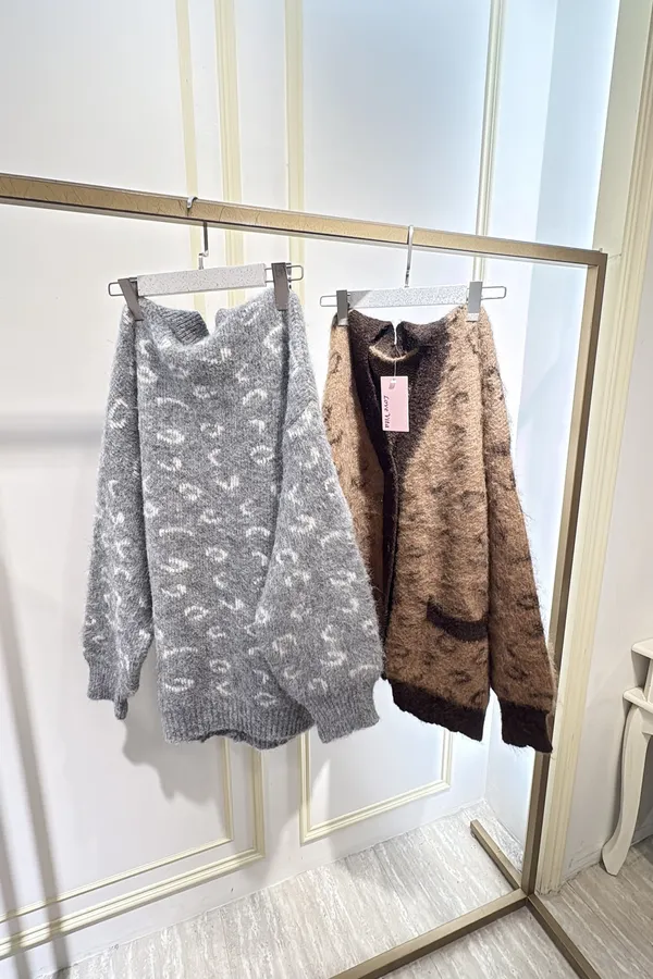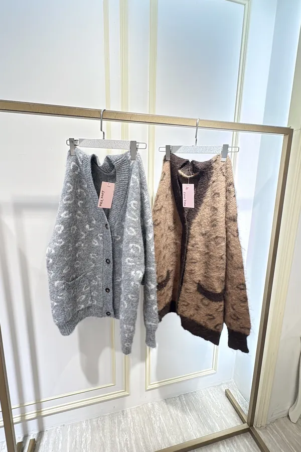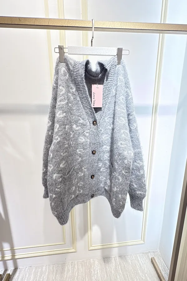 S691豹紋學院風毛線外套