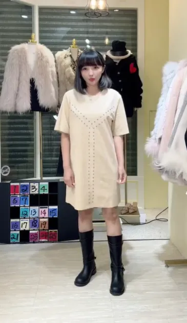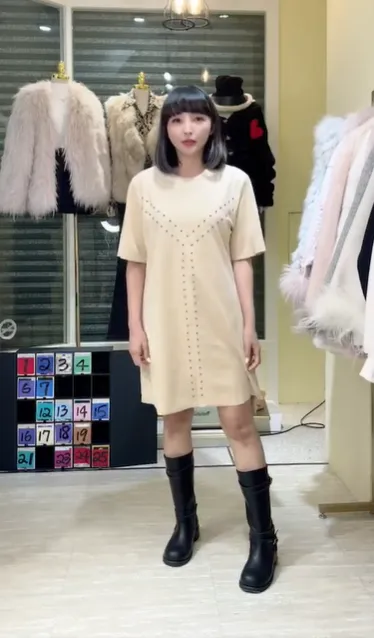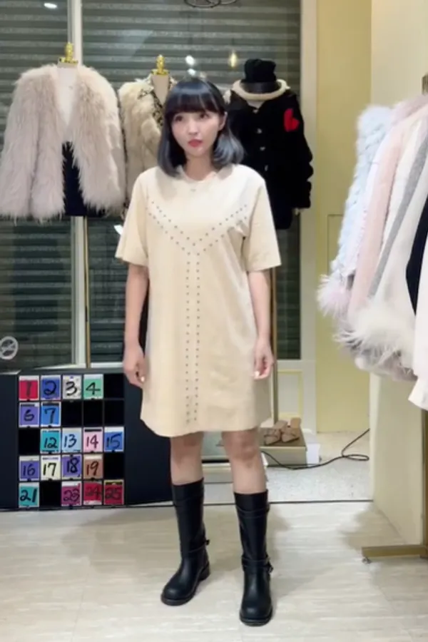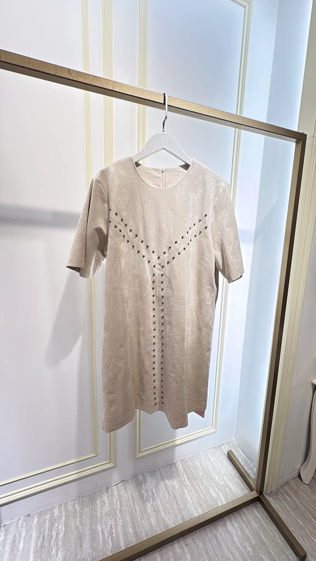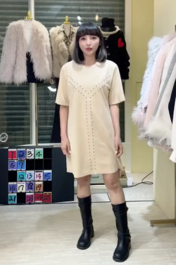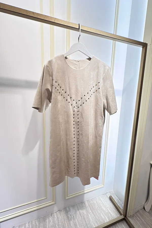 S708卯釘麂皮短洋裝