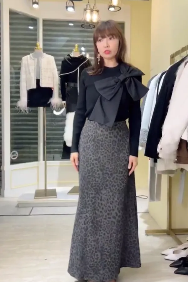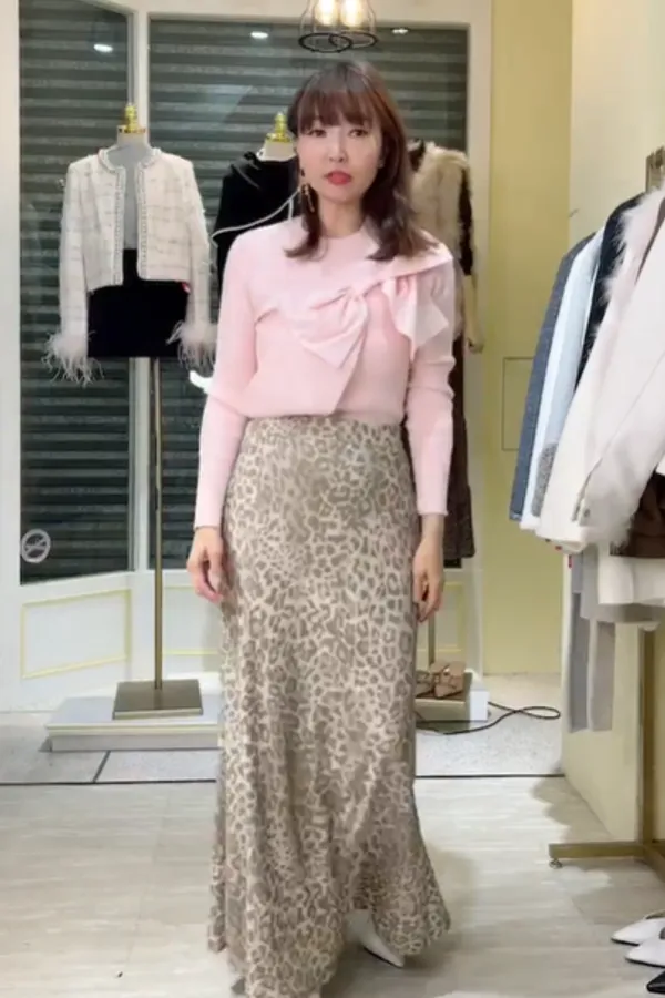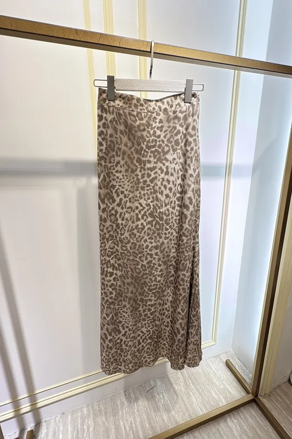 S749豹紋彈性長裙