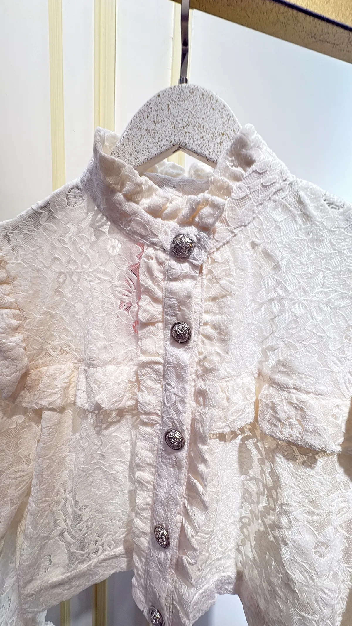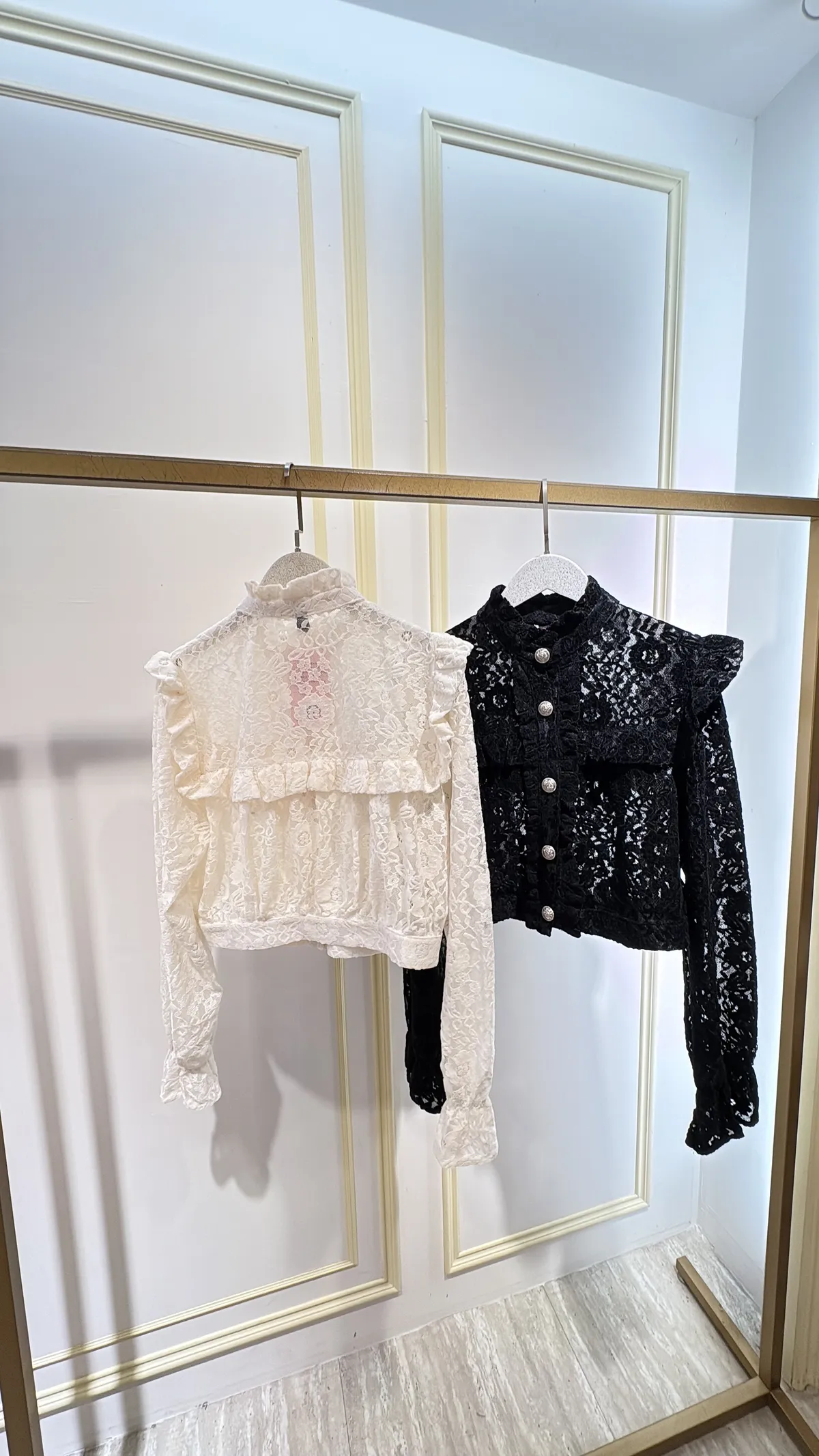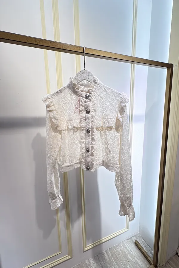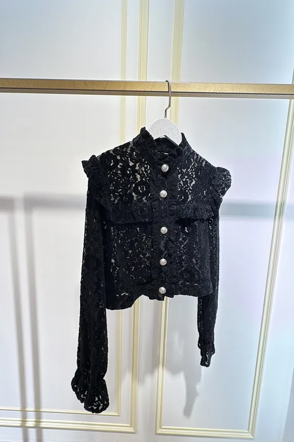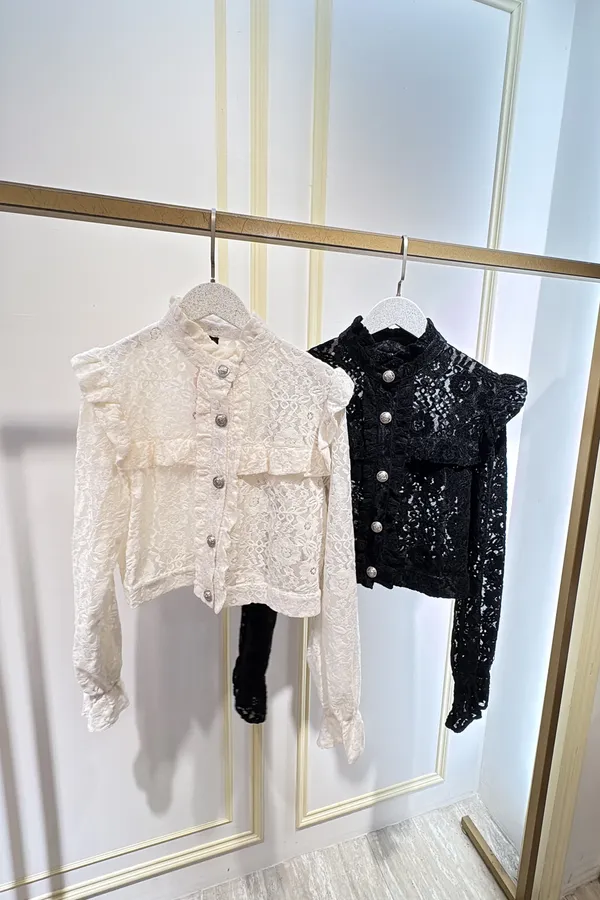 S765古典雕花蕾絲金釦衫
