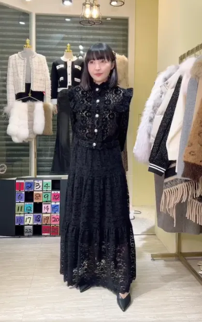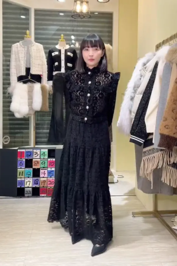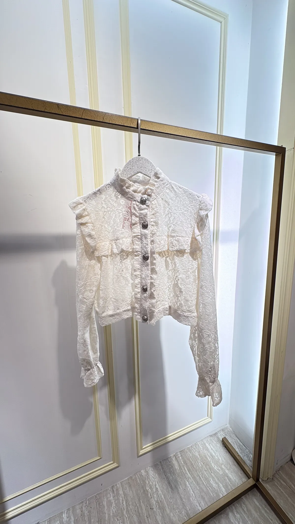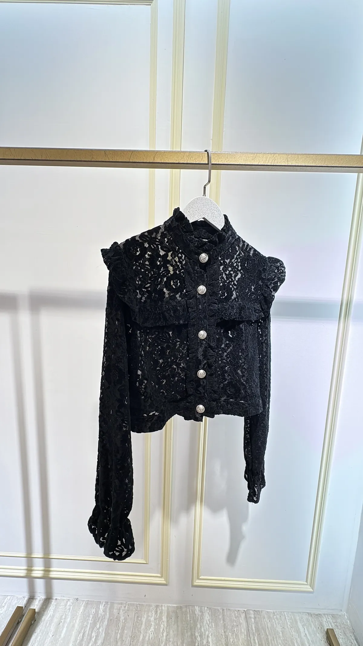 S765古典雕花蕾絲金釦衫
