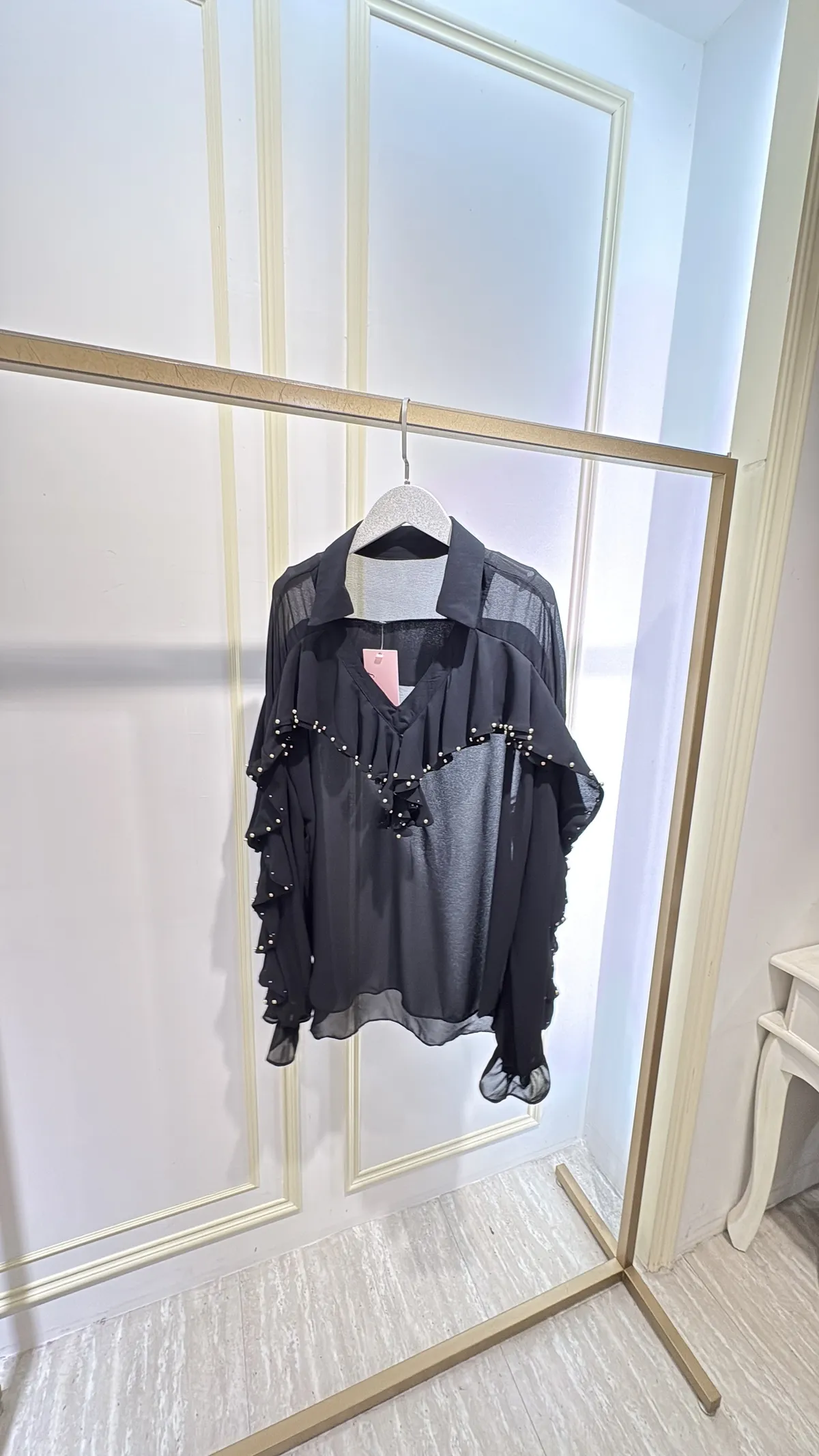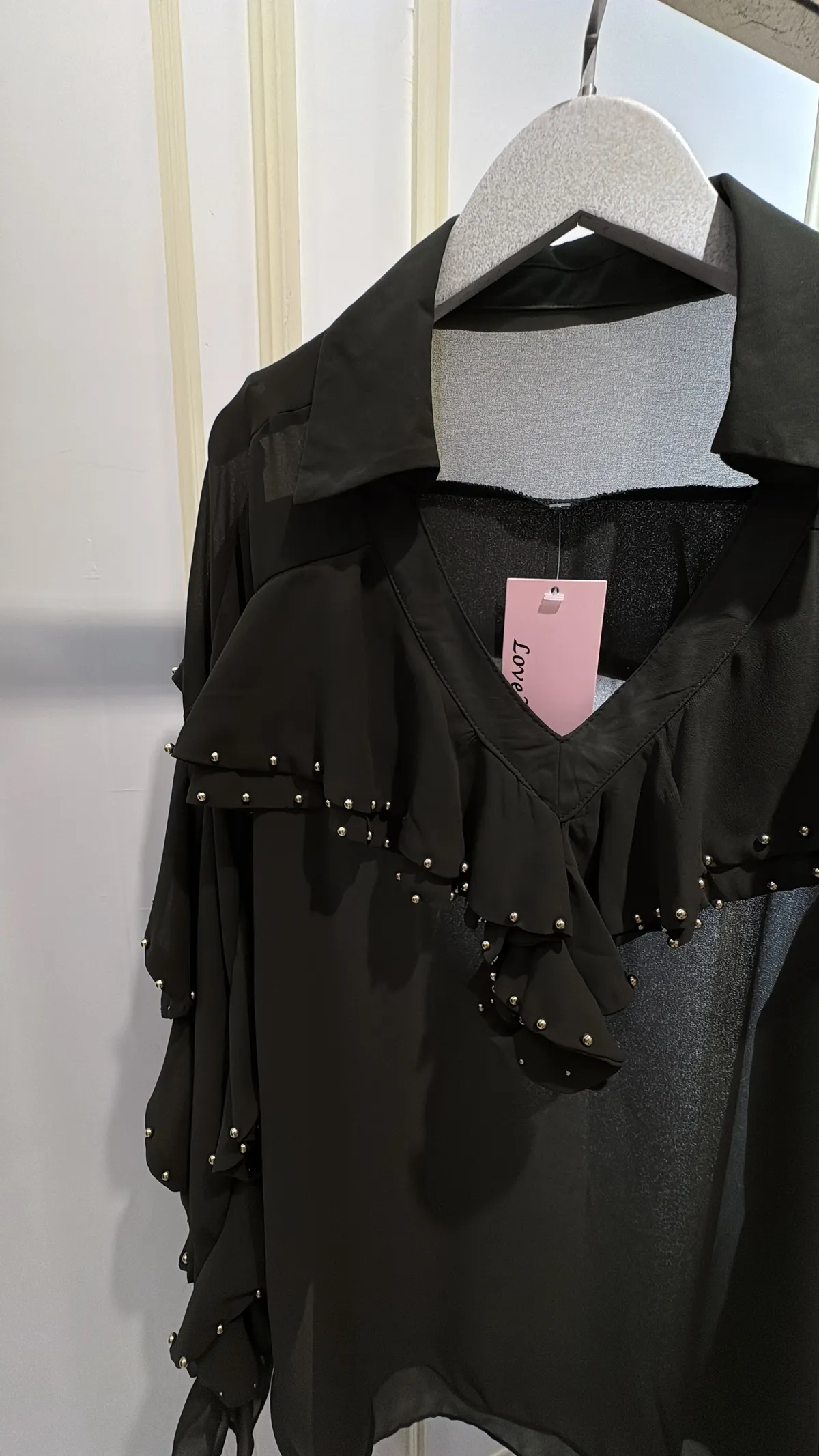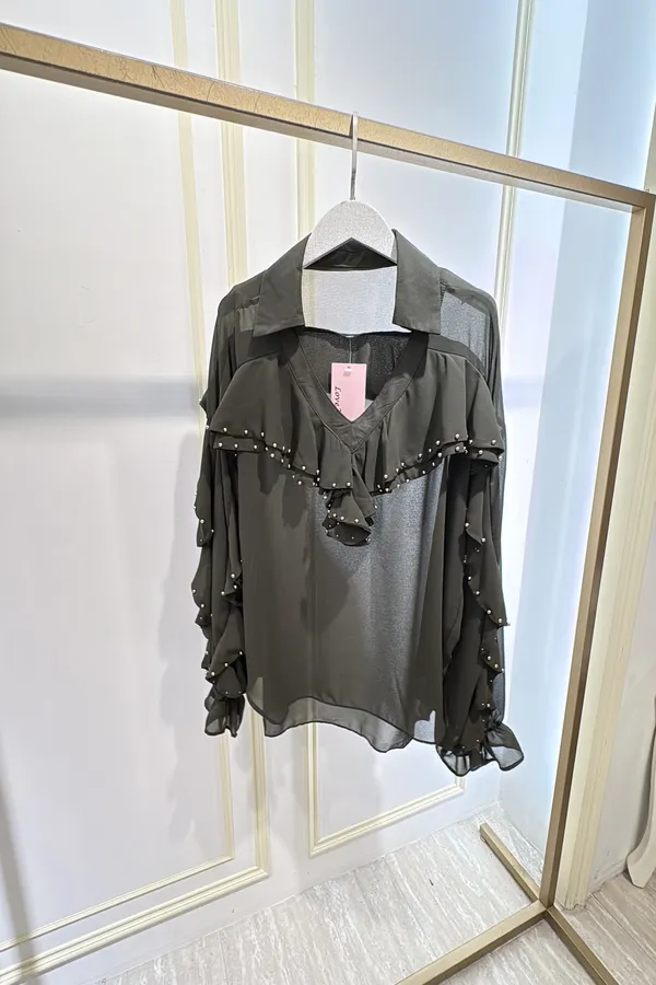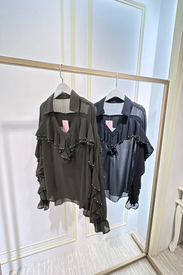 S805垂綴釘珠荷葉雪紡衣