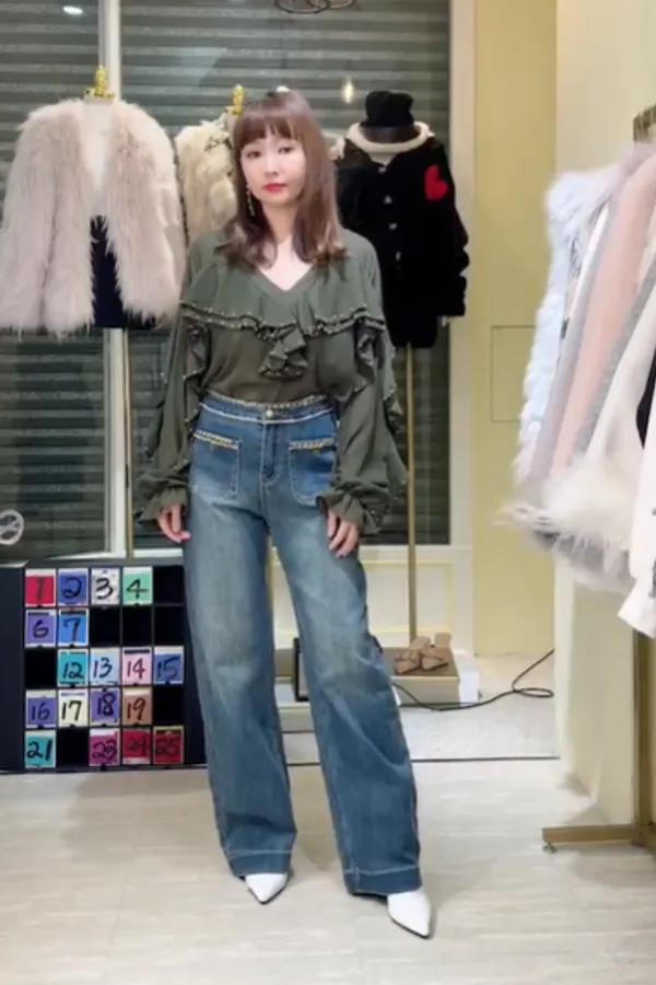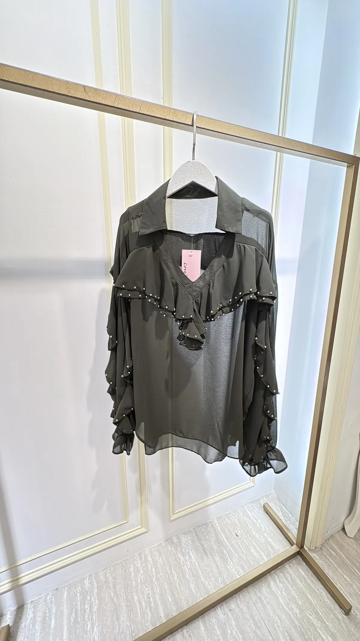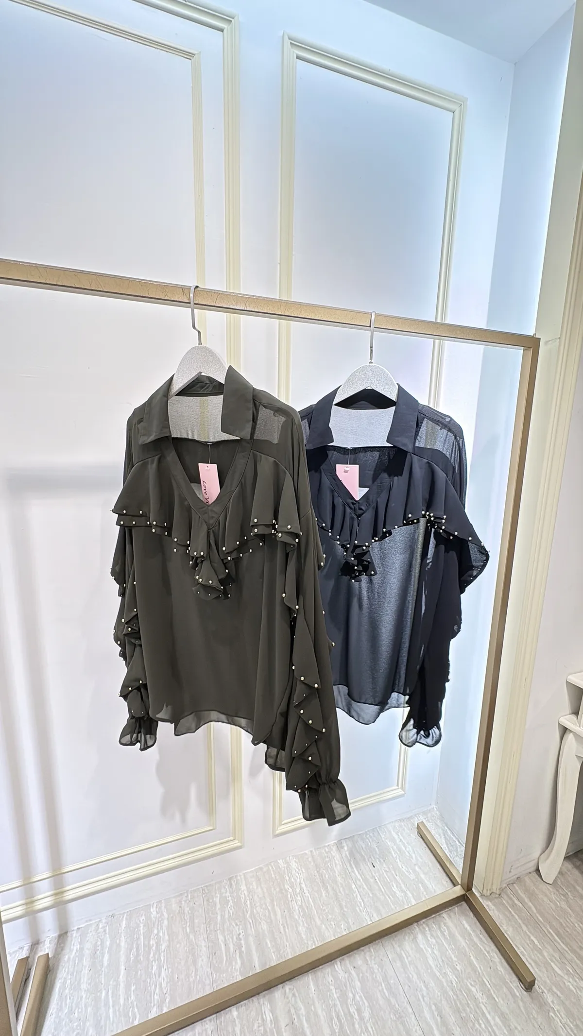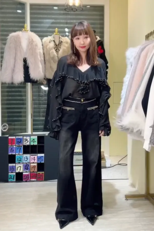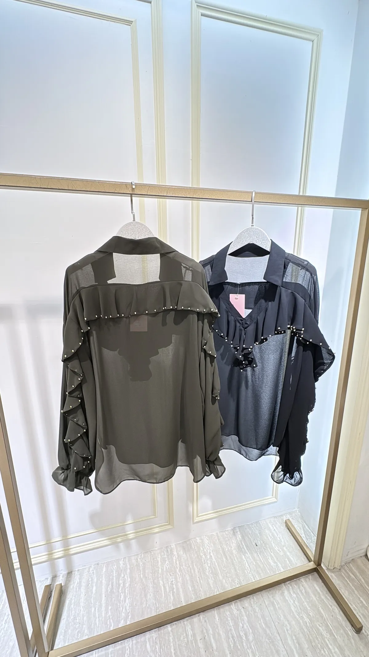 S805垂綴釘珠荷葉雪紡衣