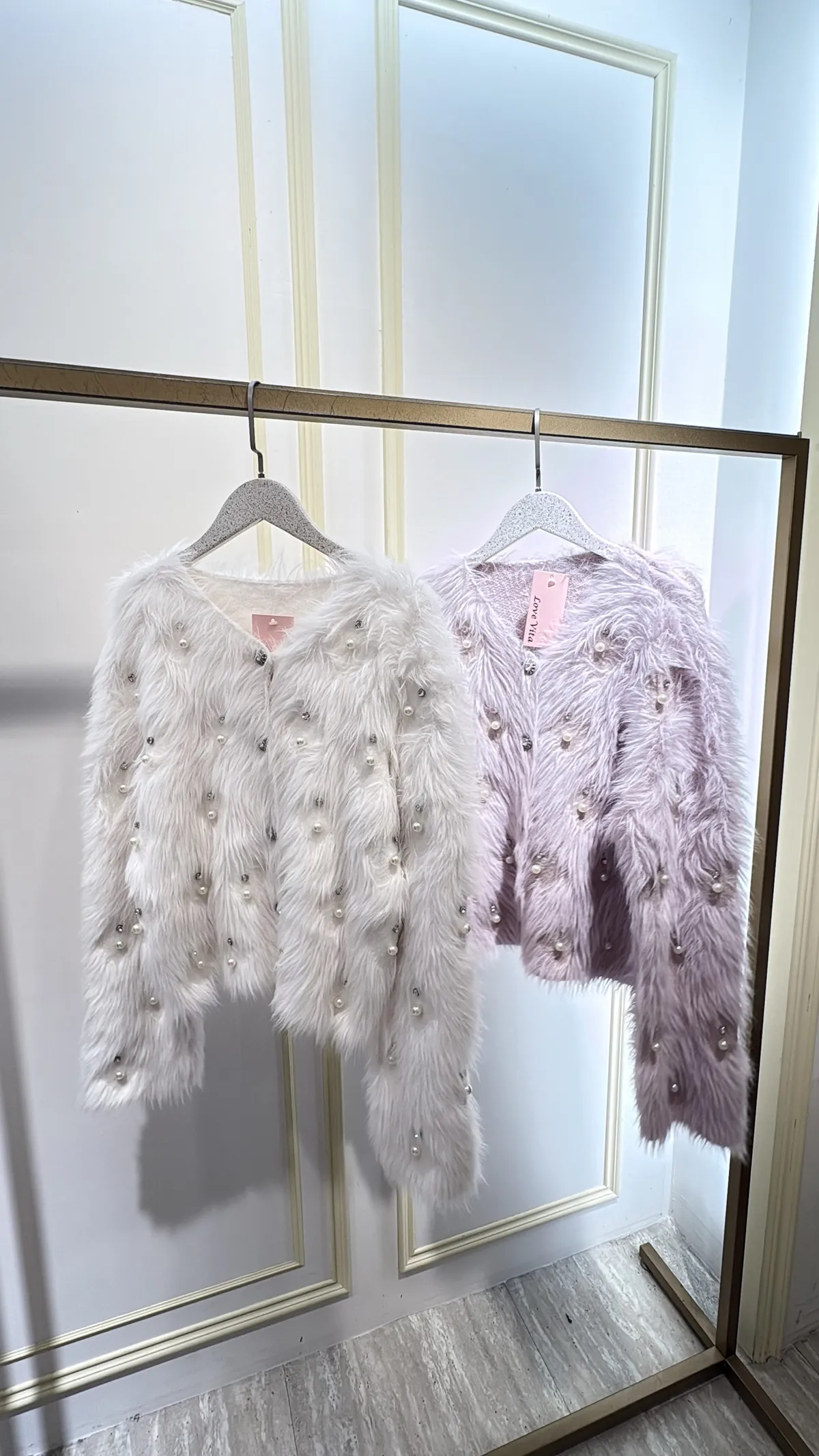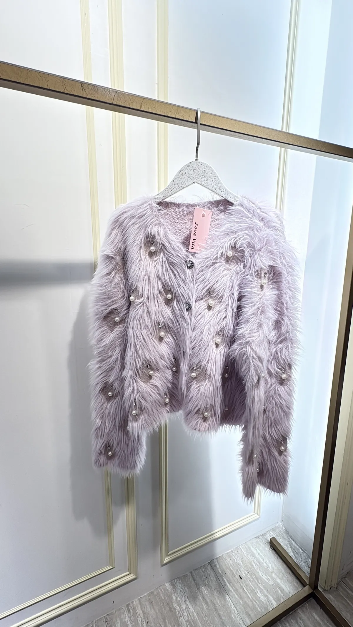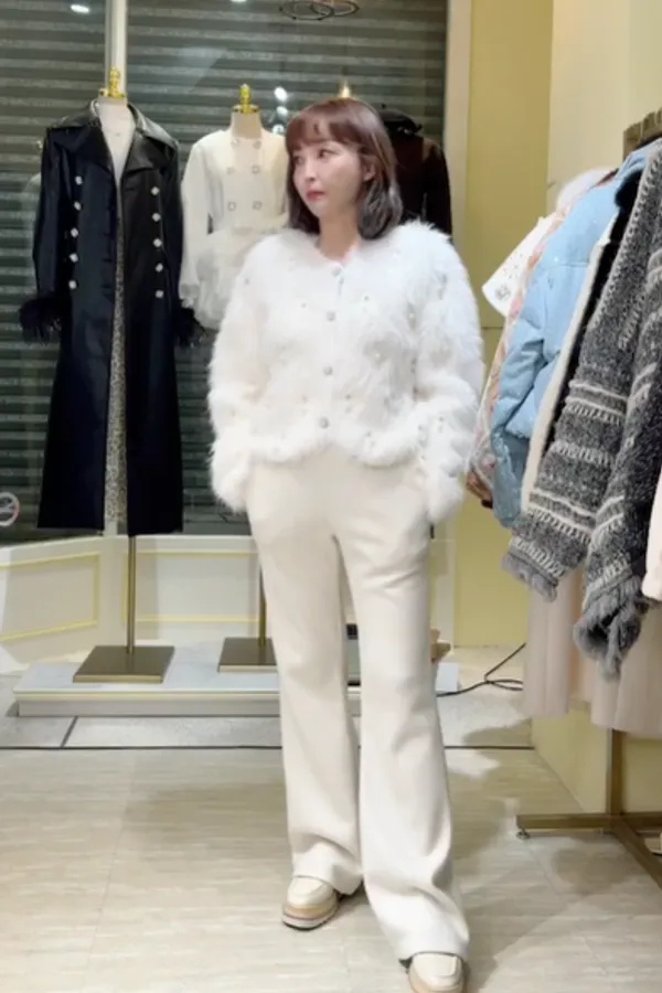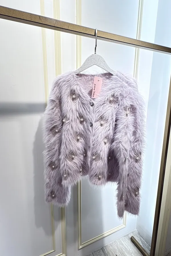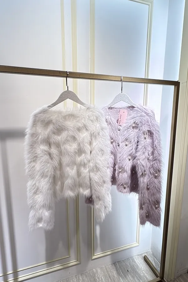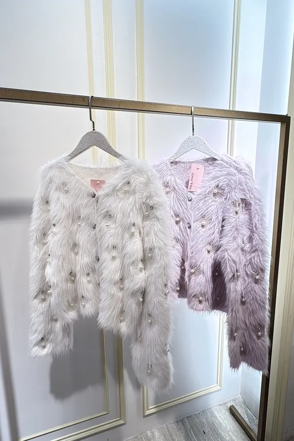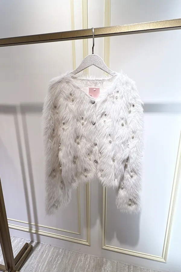 S812珍珠長絨針織外套
