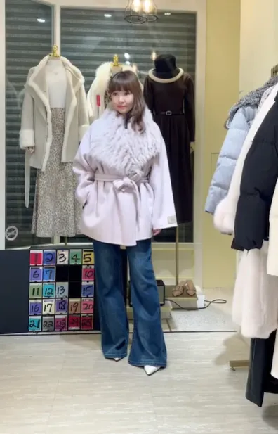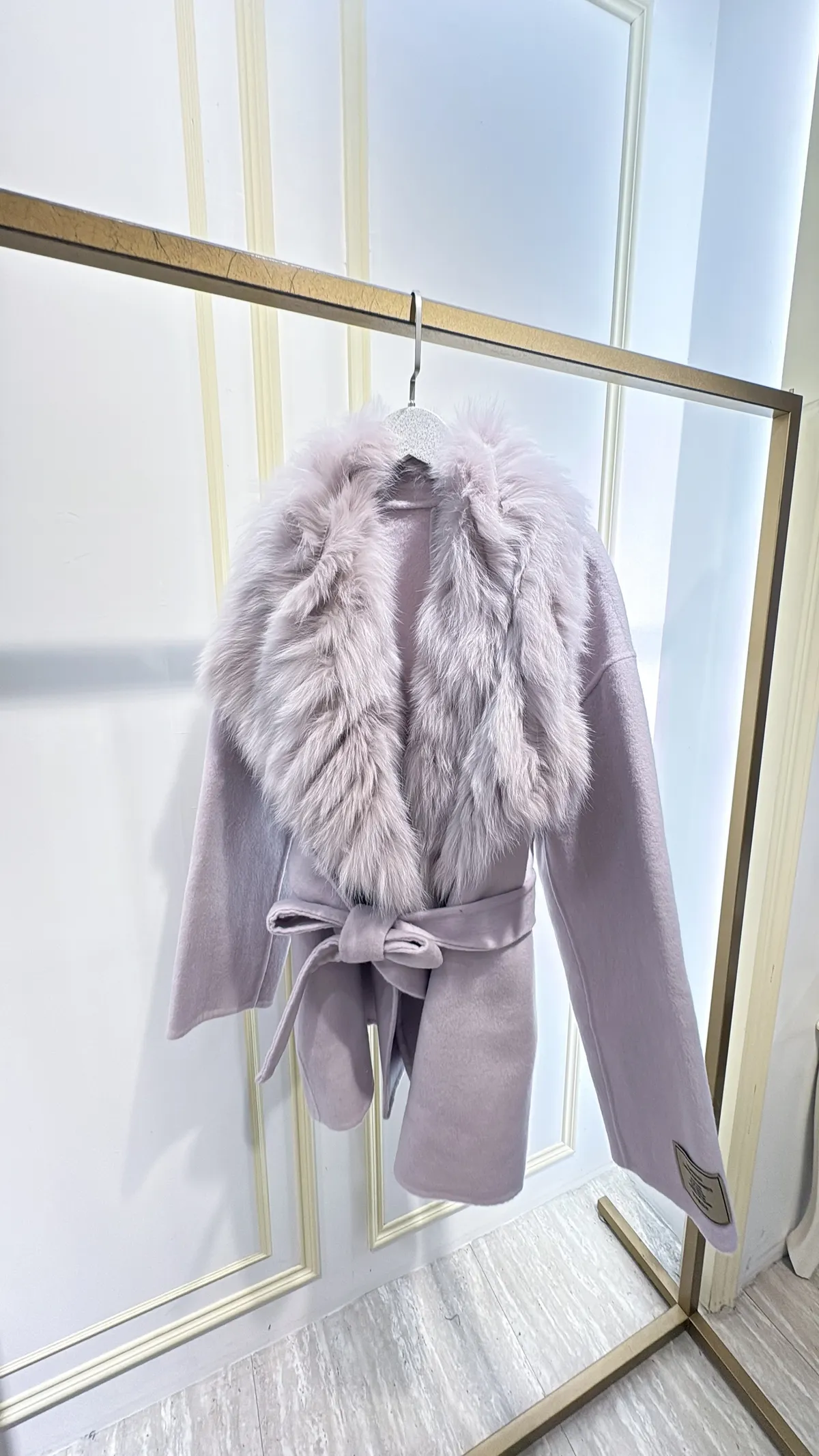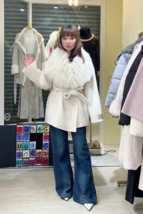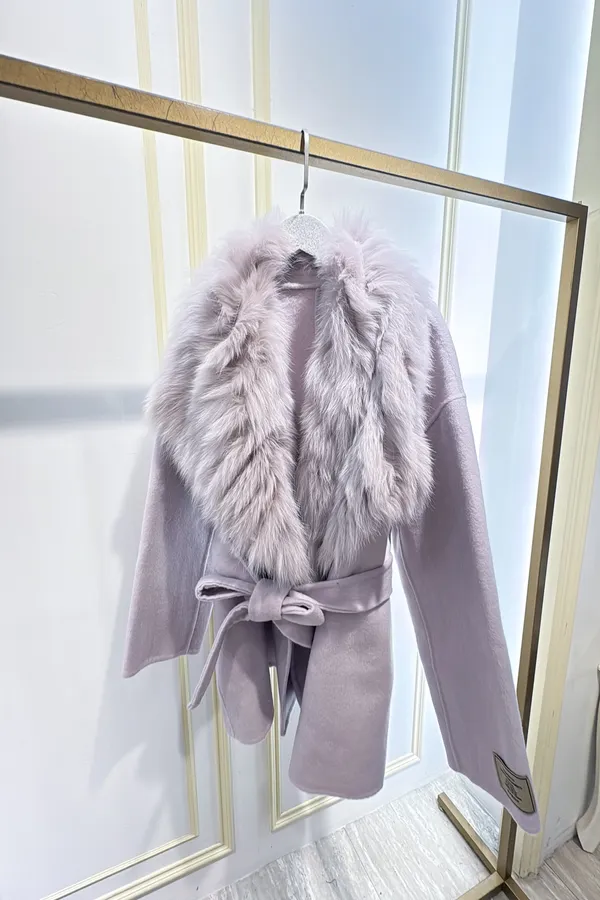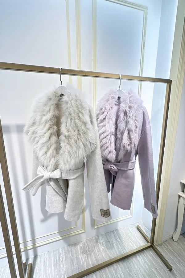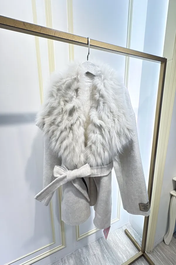S856雲霧狐狸領綁帶大衣