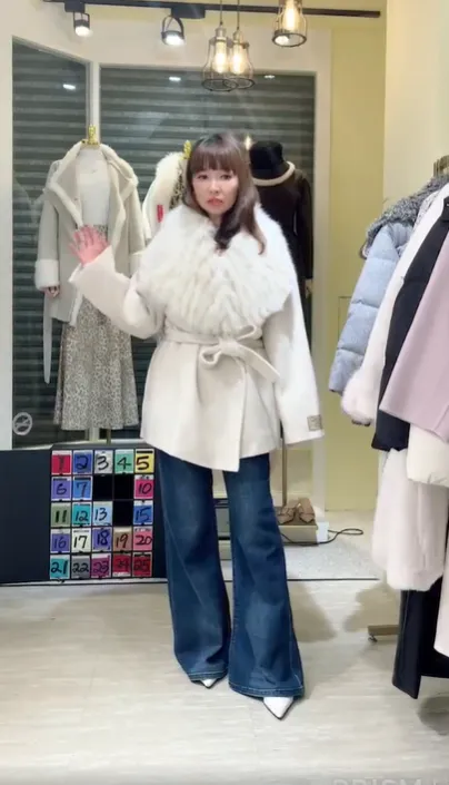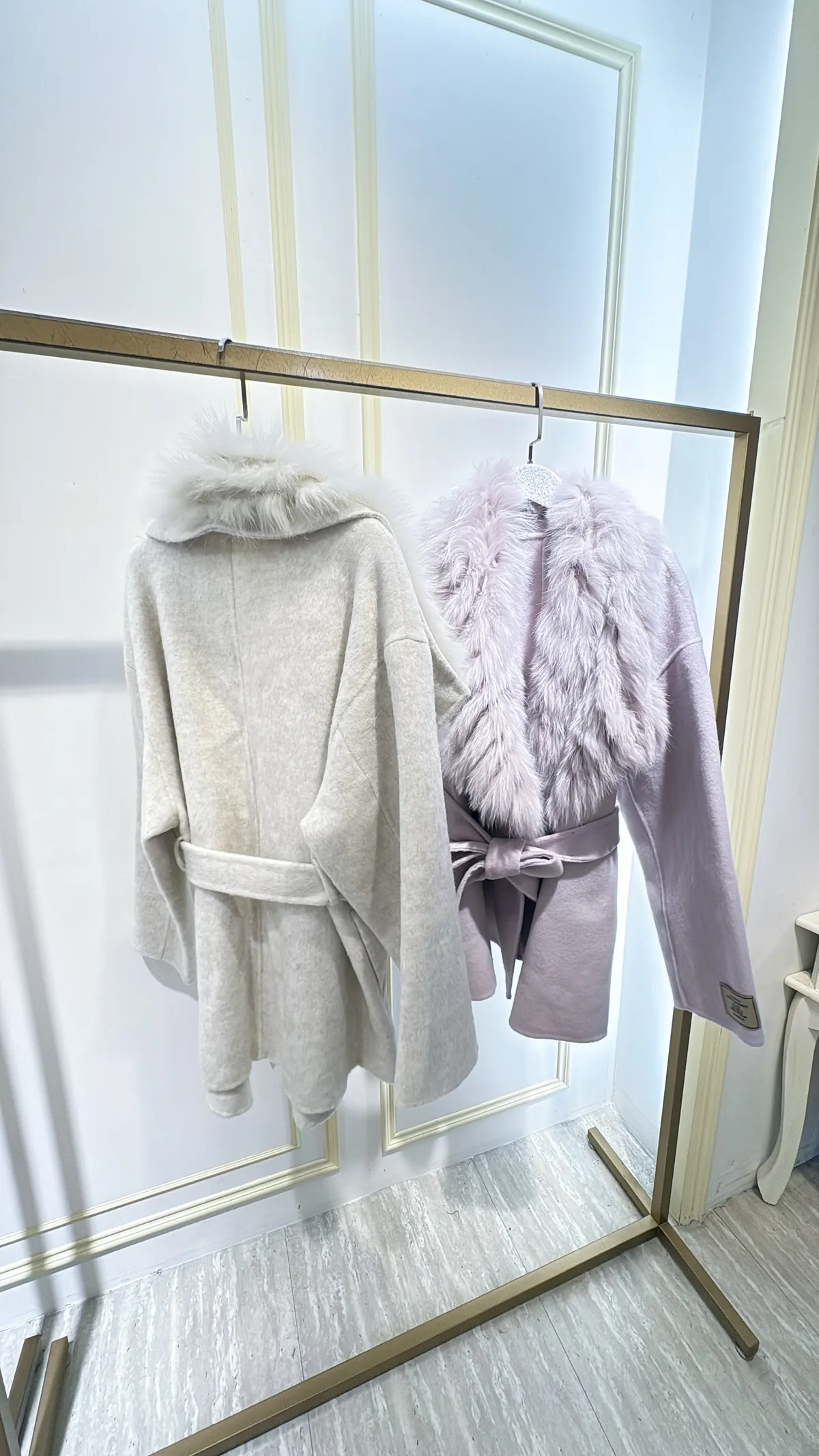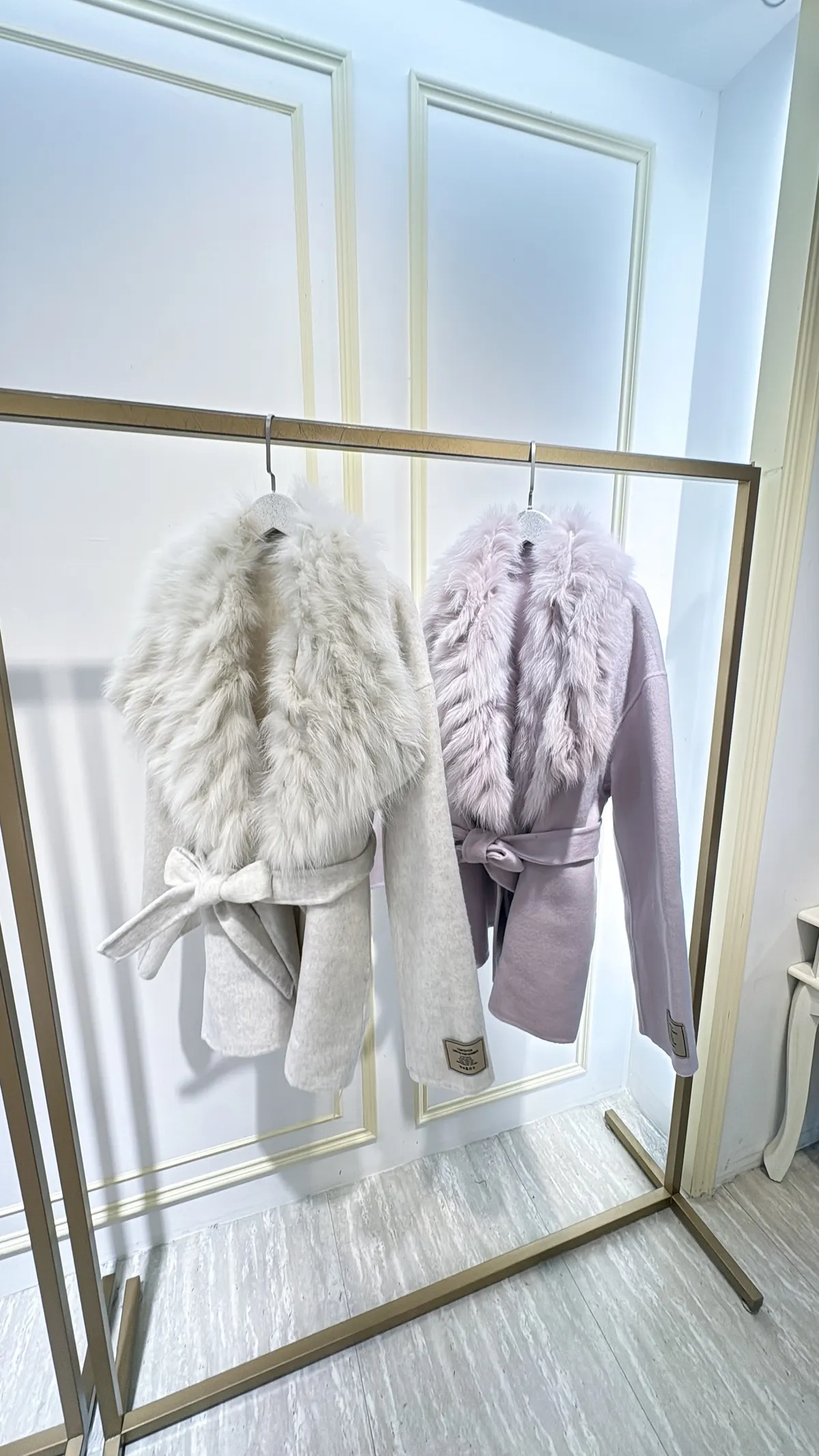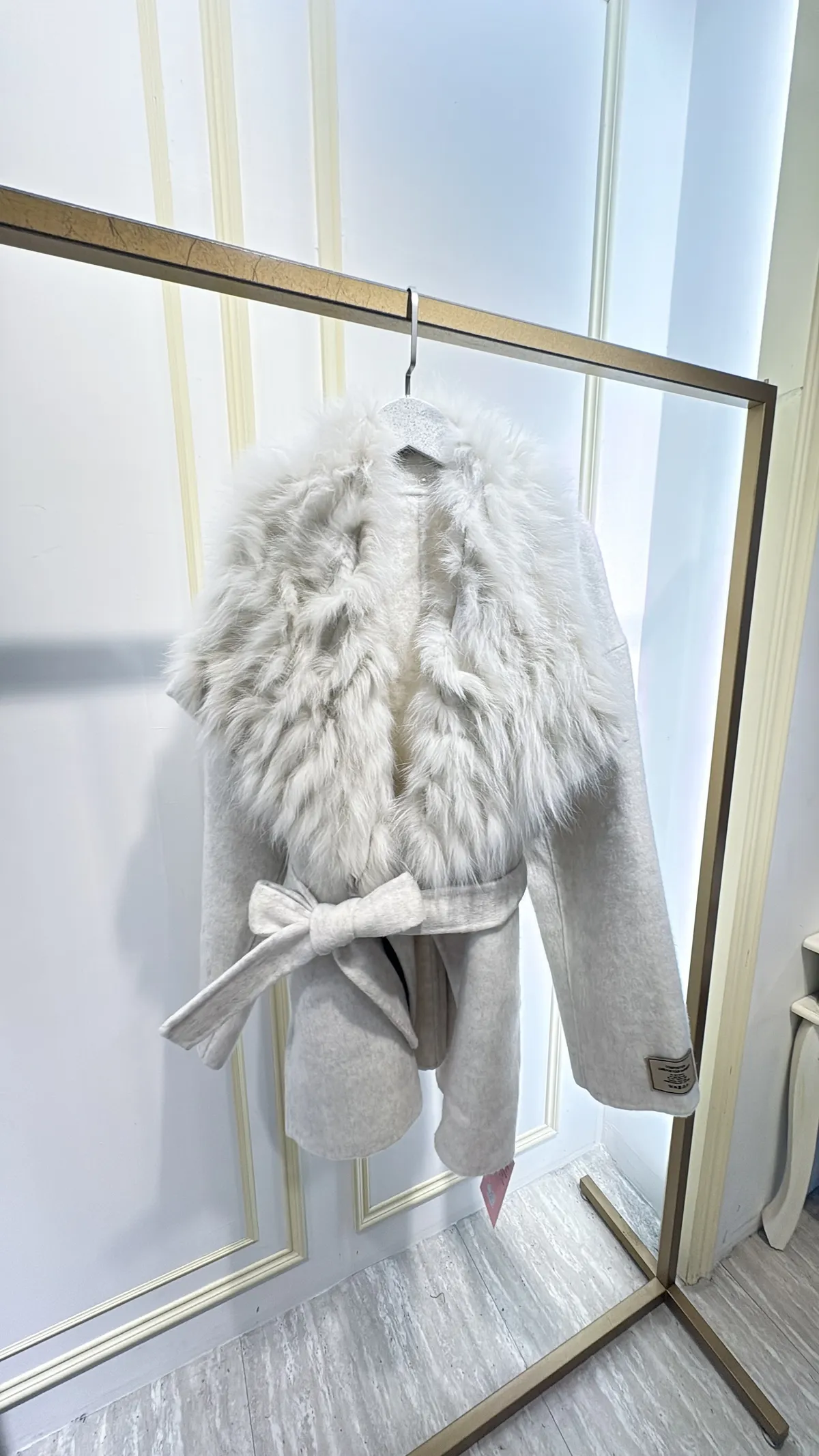 S856雲霧狐狸領綁帶大衣