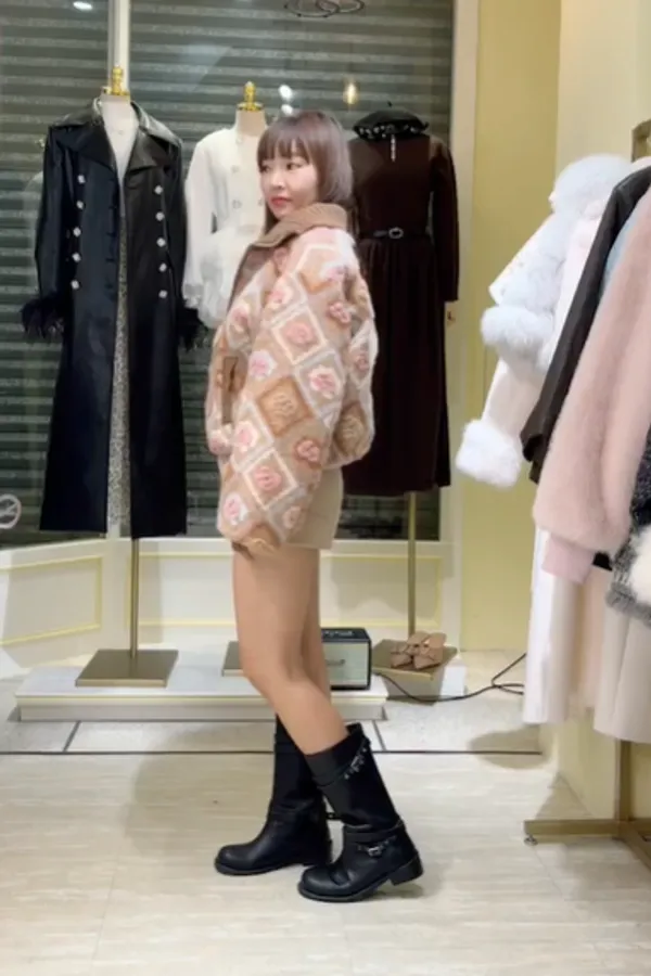 S858玫瑰格紋暖柔外套