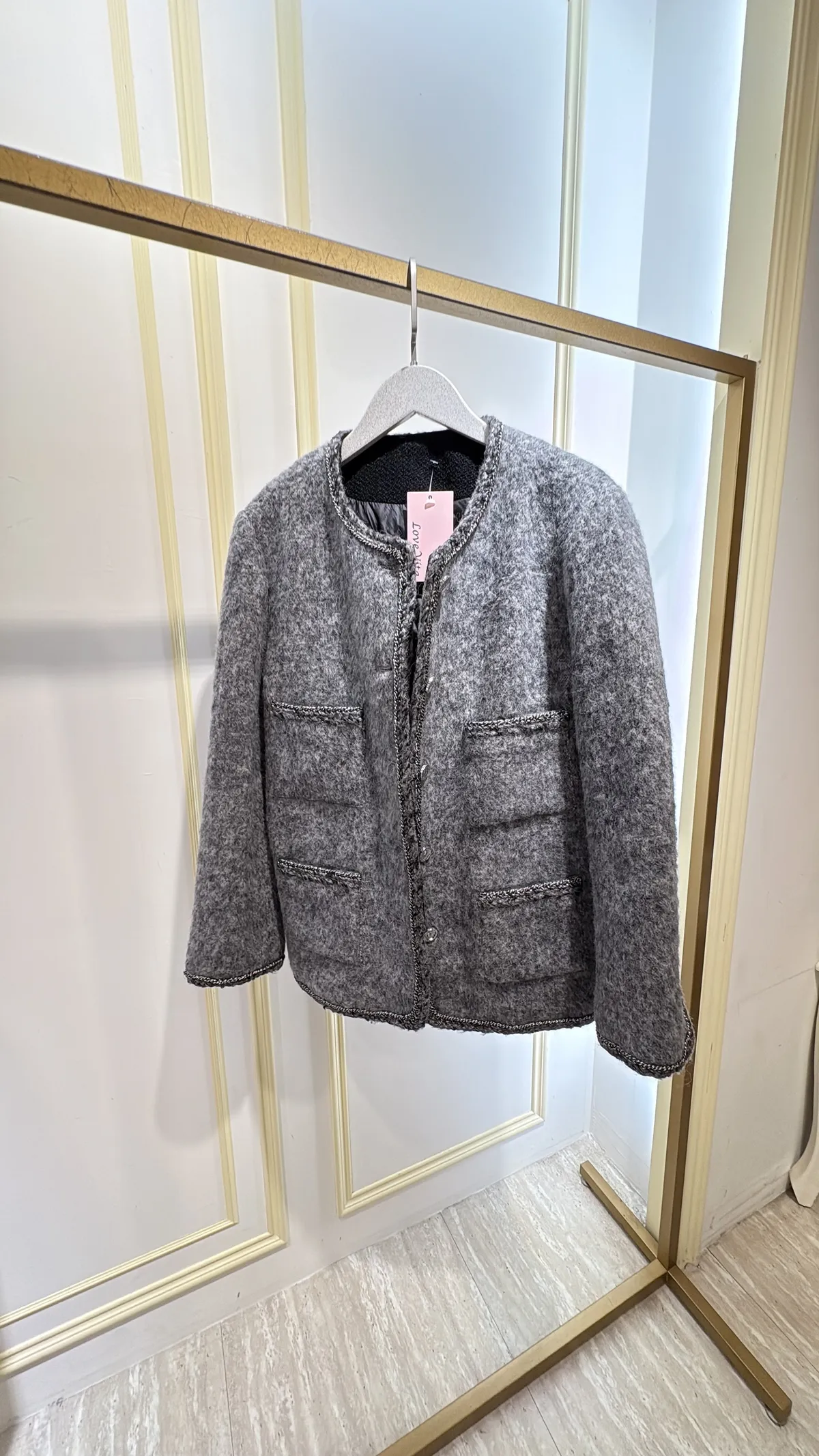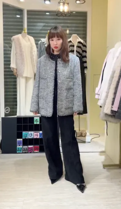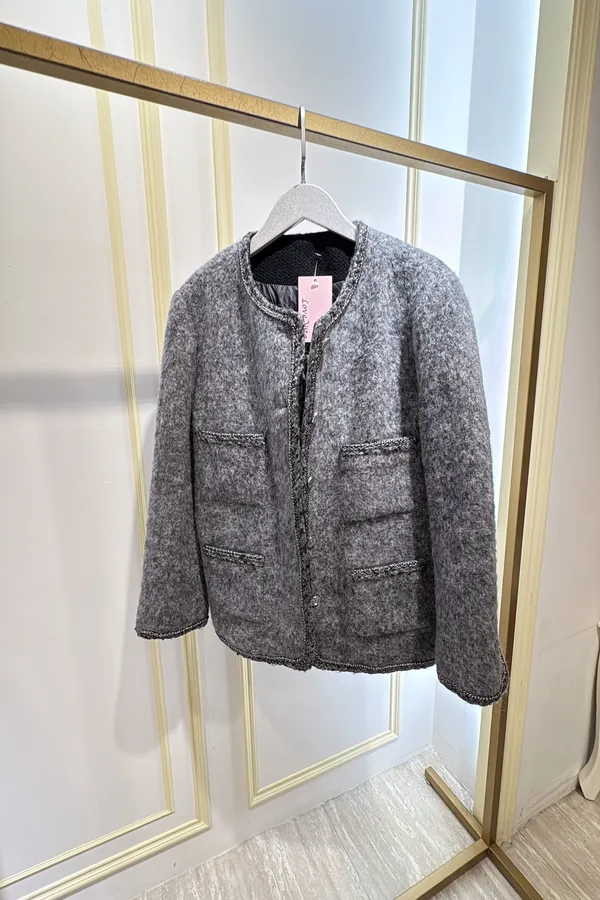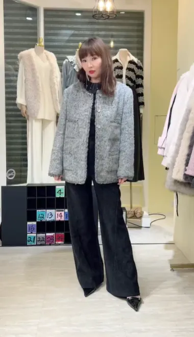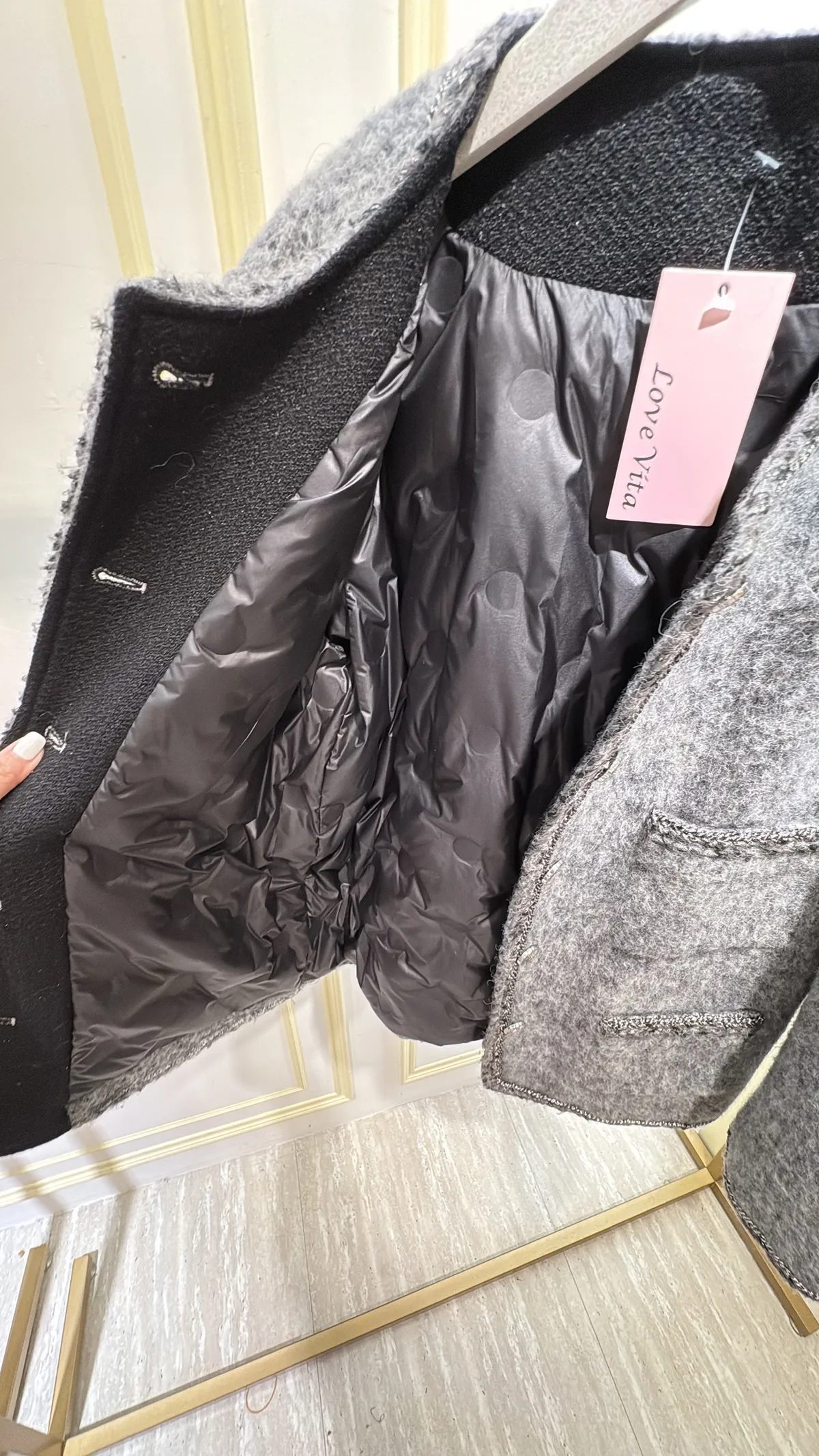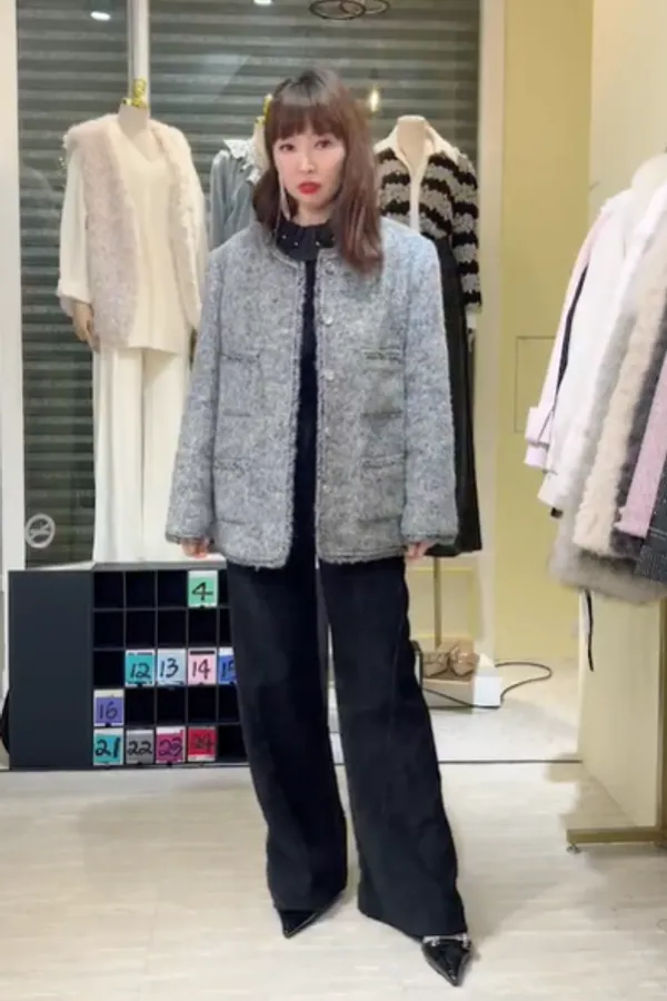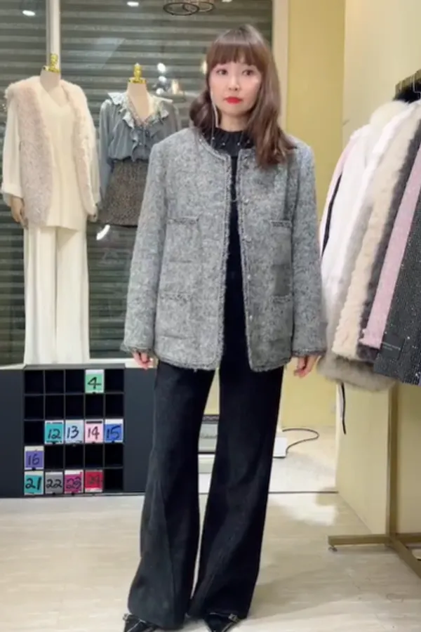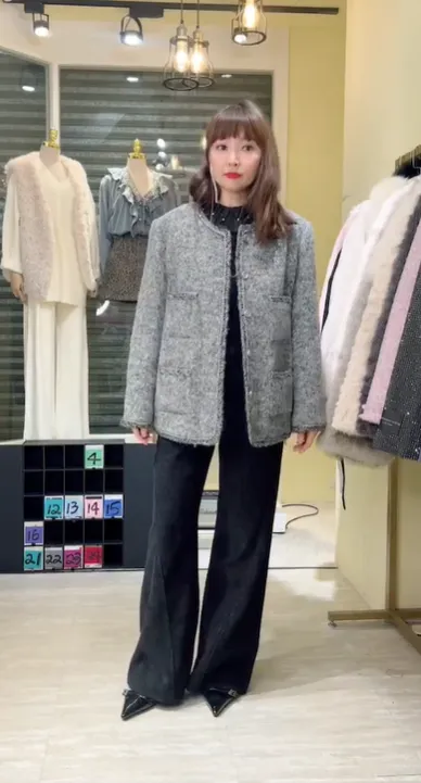 S887灰調精品毛呢羽絨外套