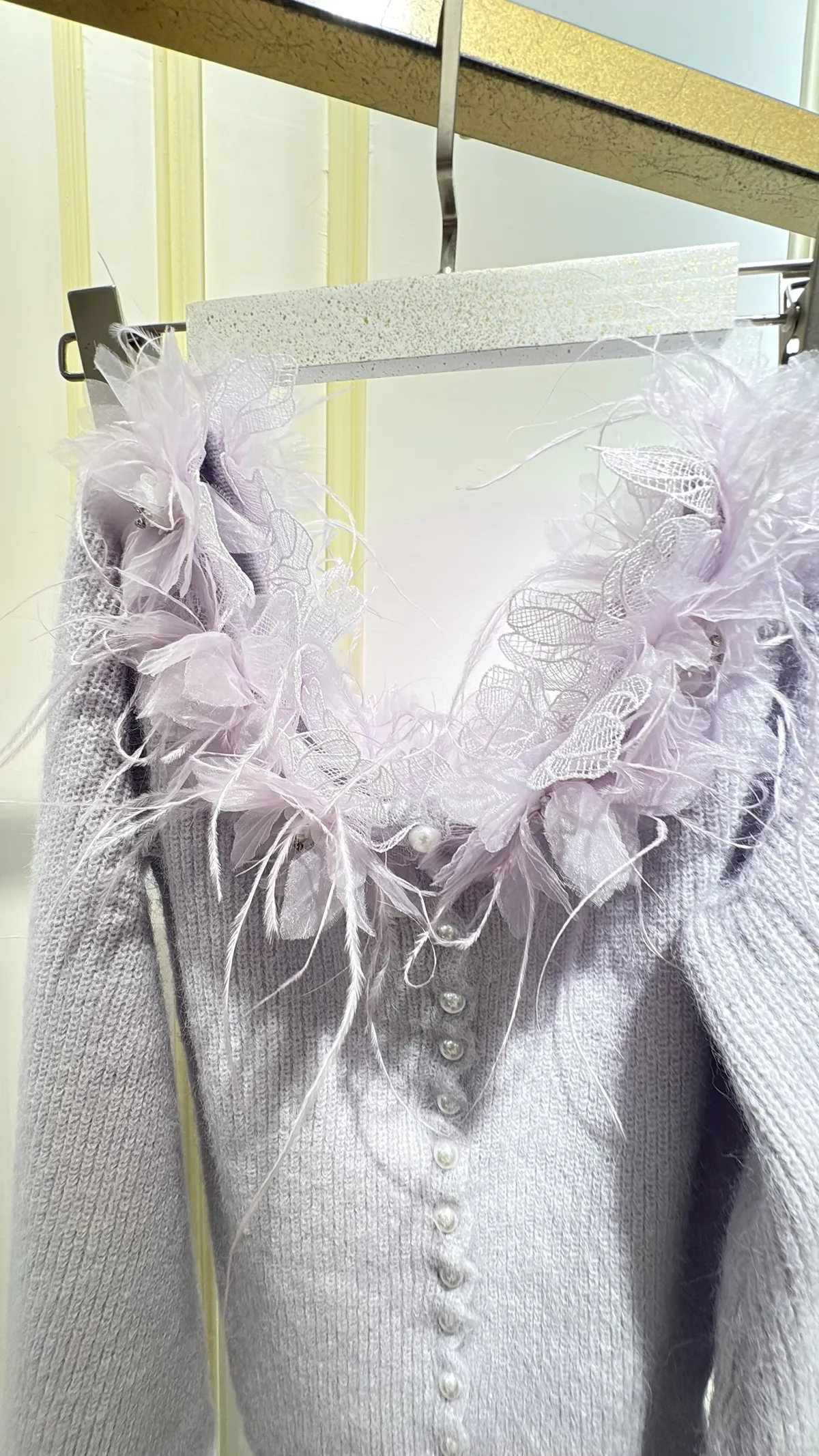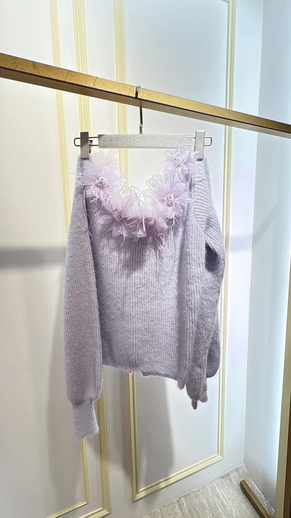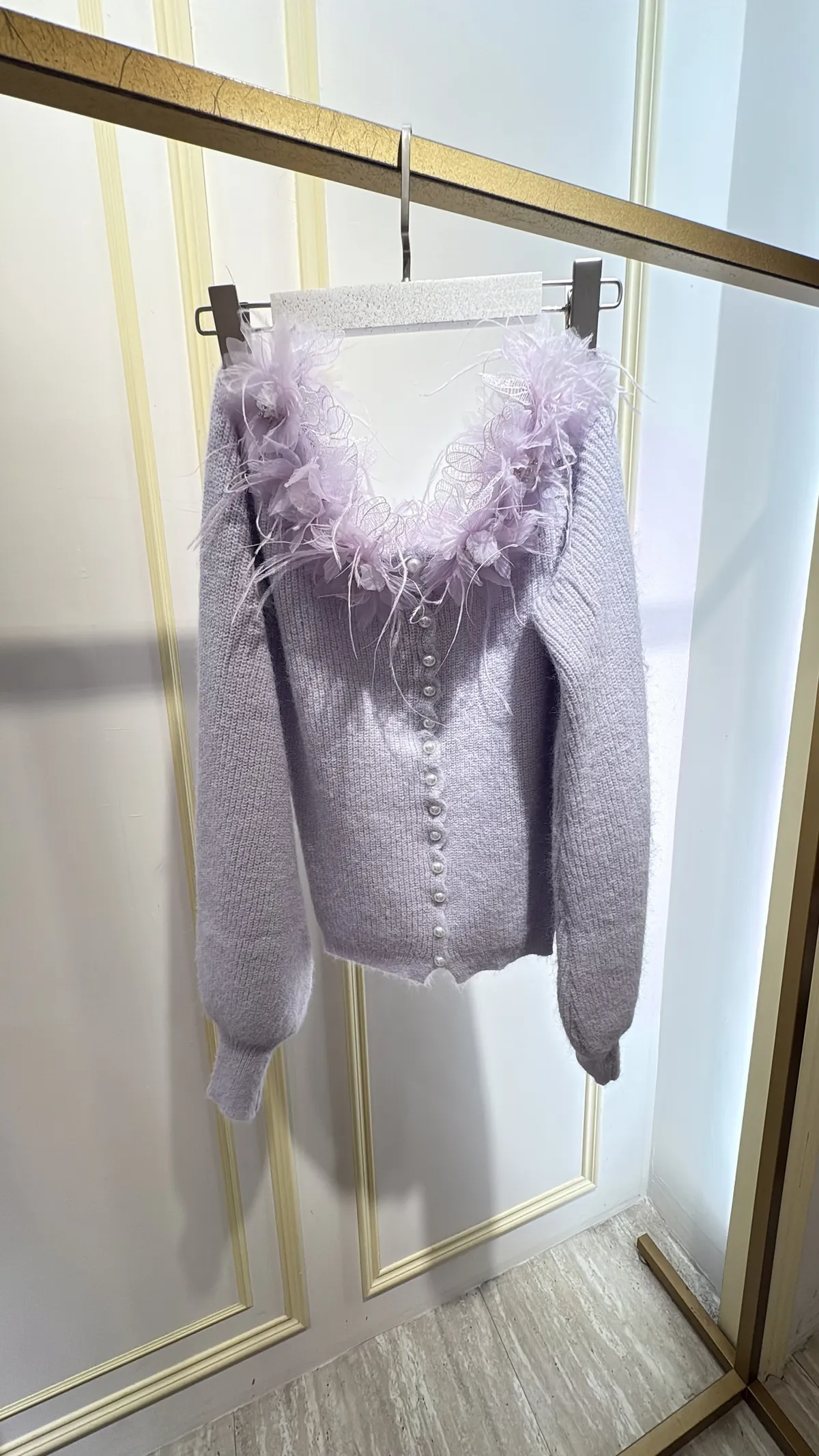 S904薰紫花羽珍珠針織衣