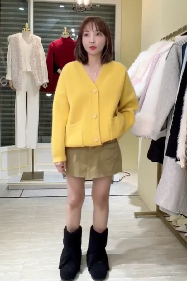 S909柔感v領針織開襟外套