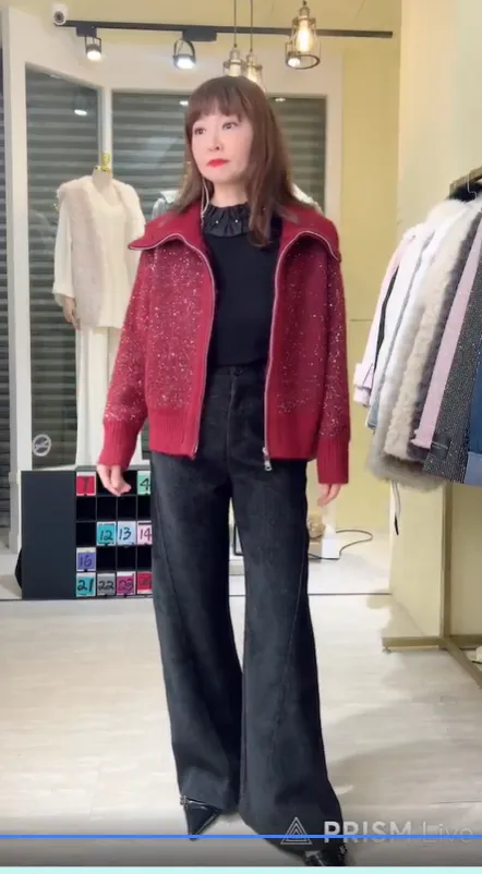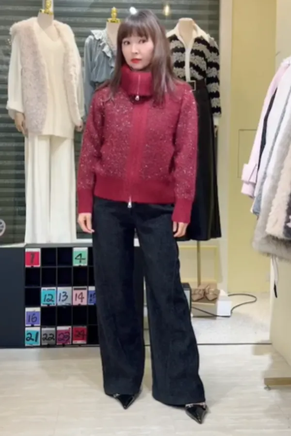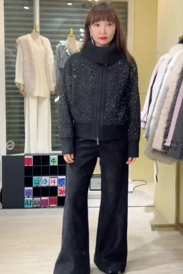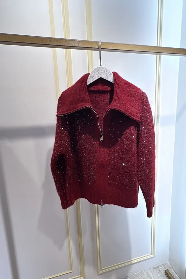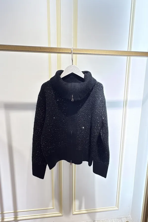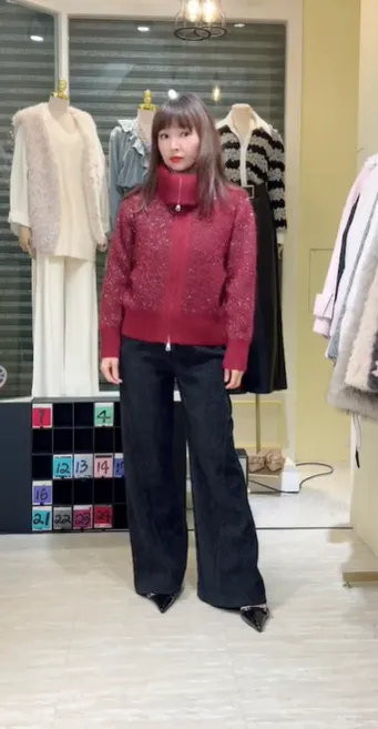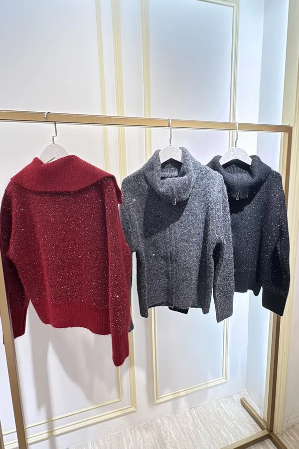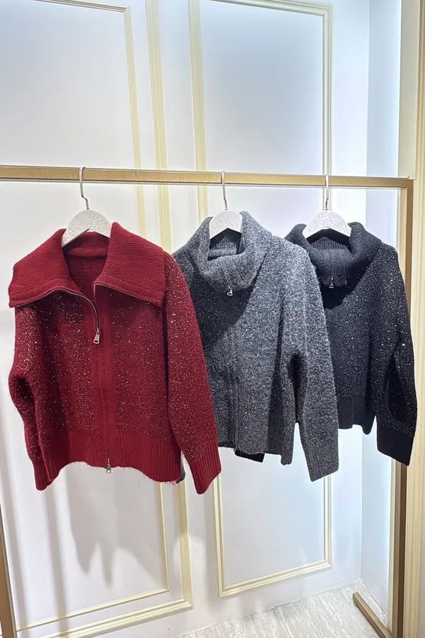 S910微光毛呢立領拉鍊針織外套