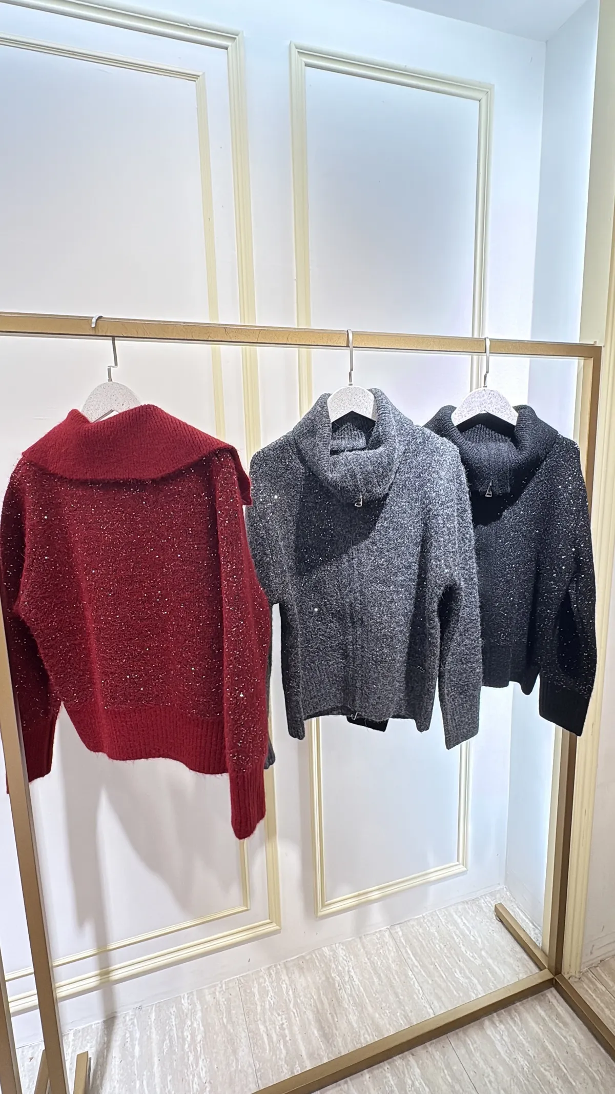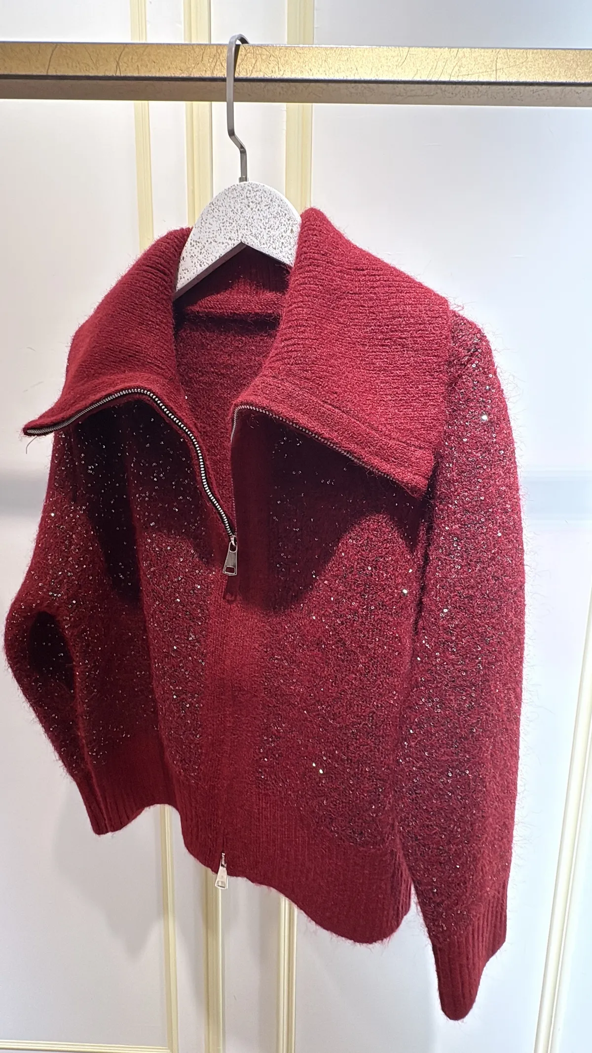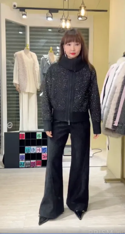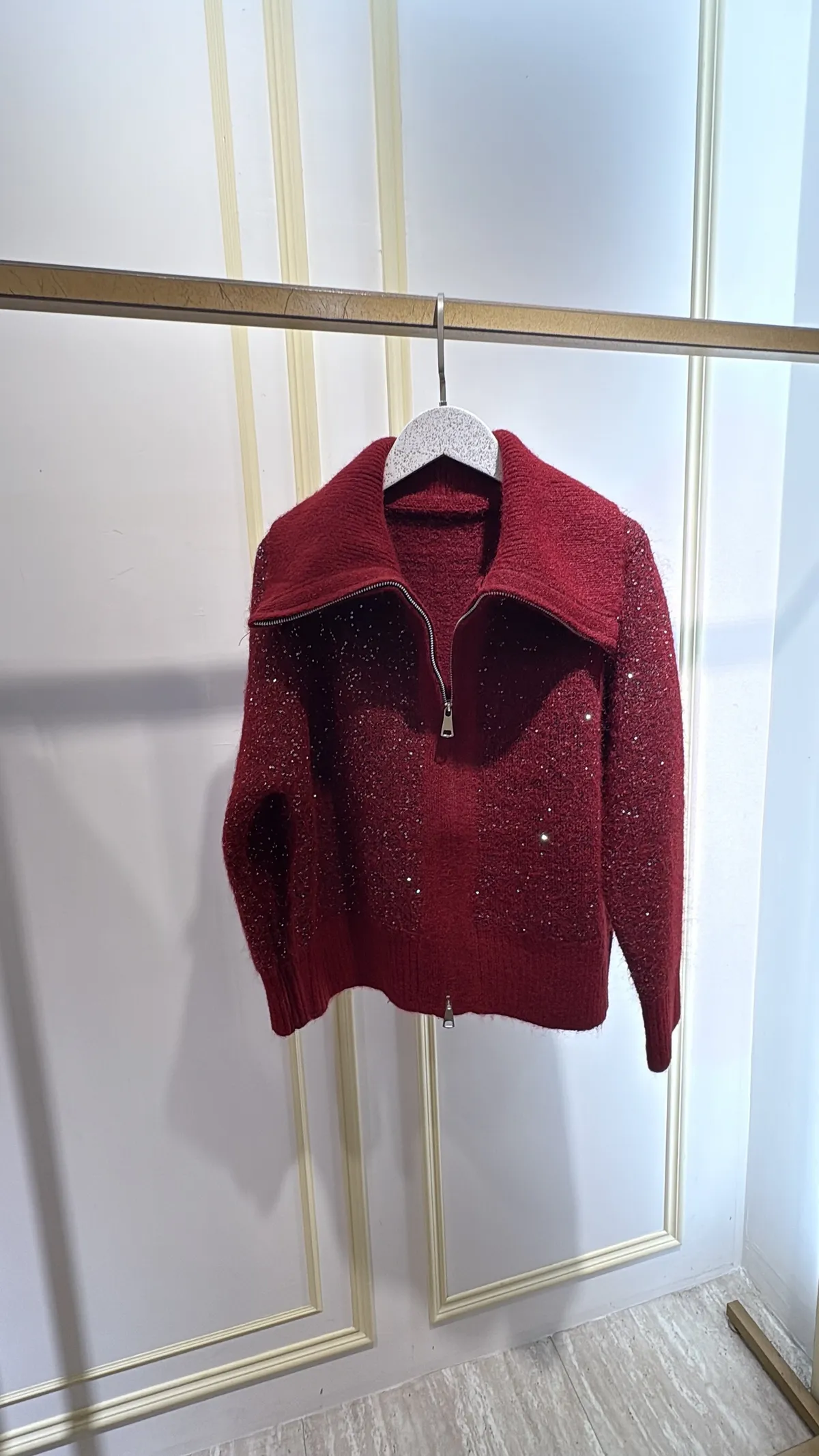 S910微光毛呢立領拉鍊針織外套