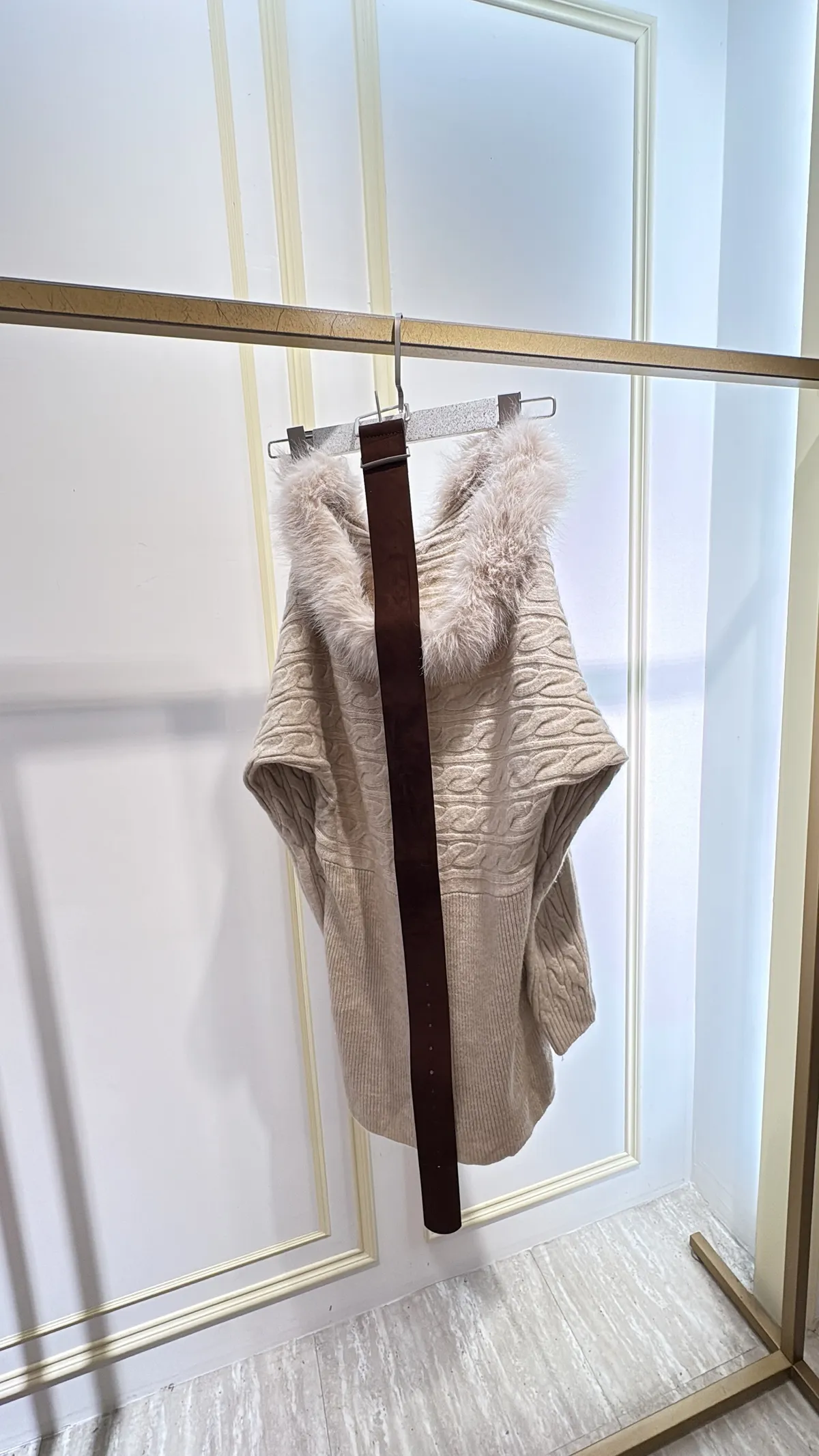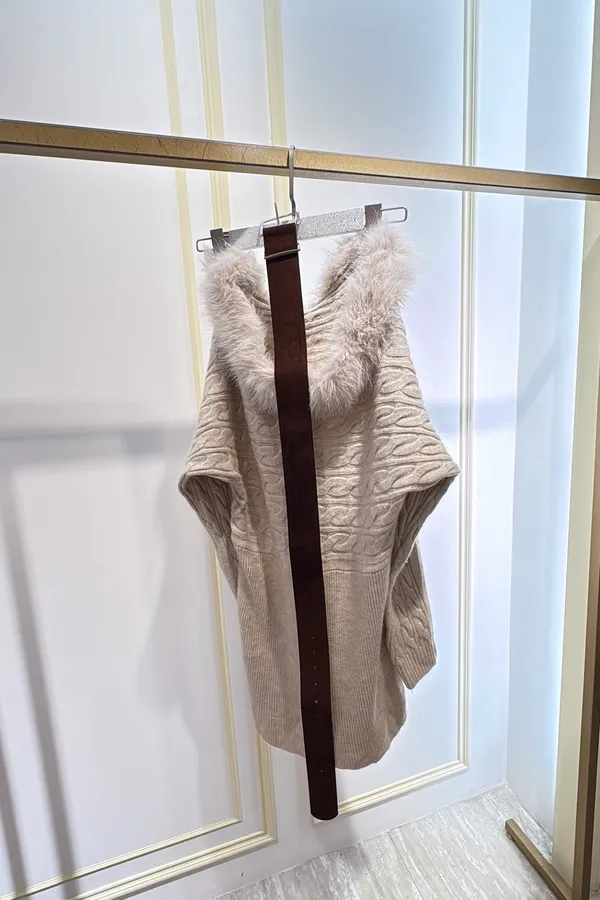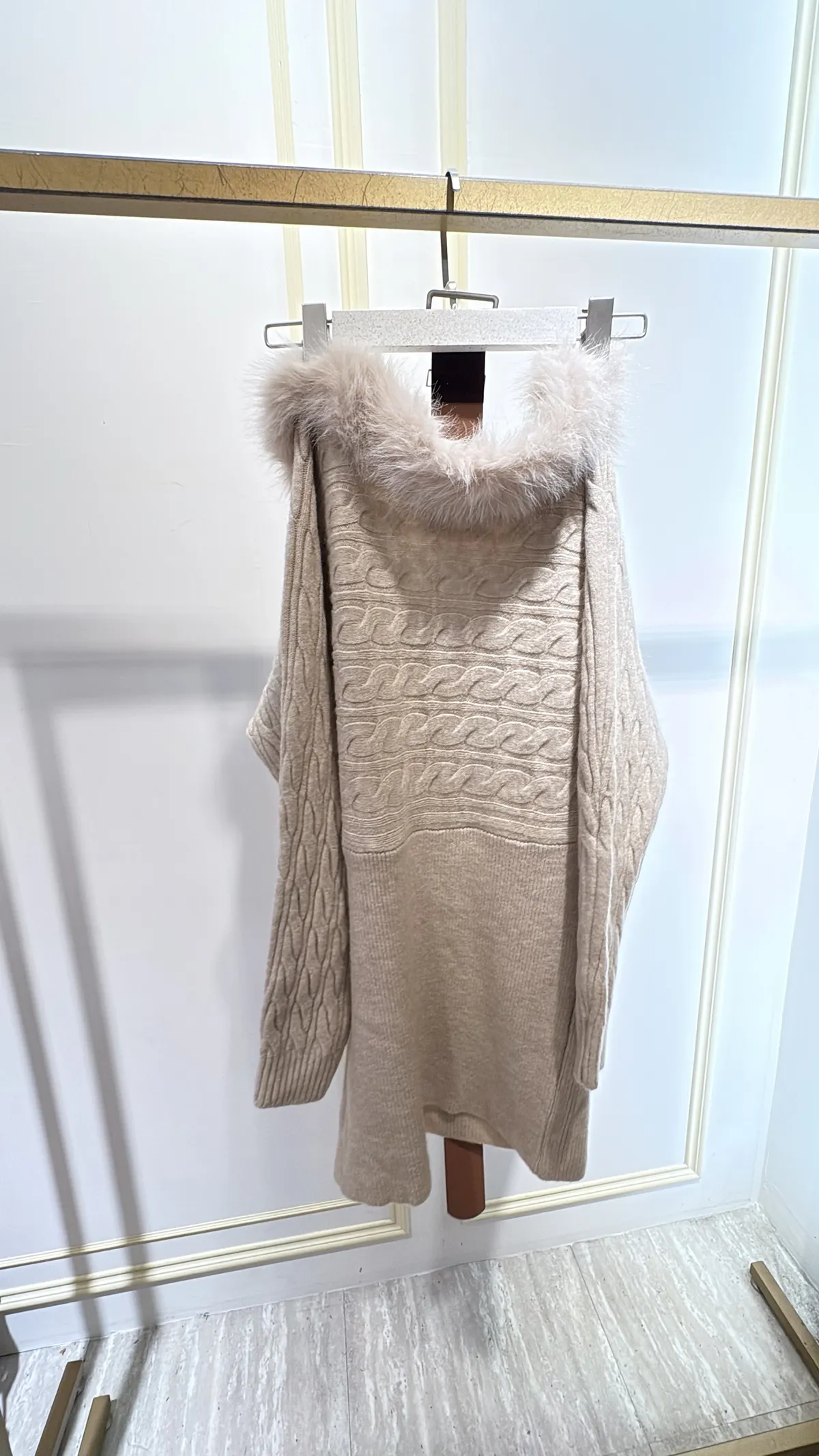 S983毛領麻花針織短洋裝