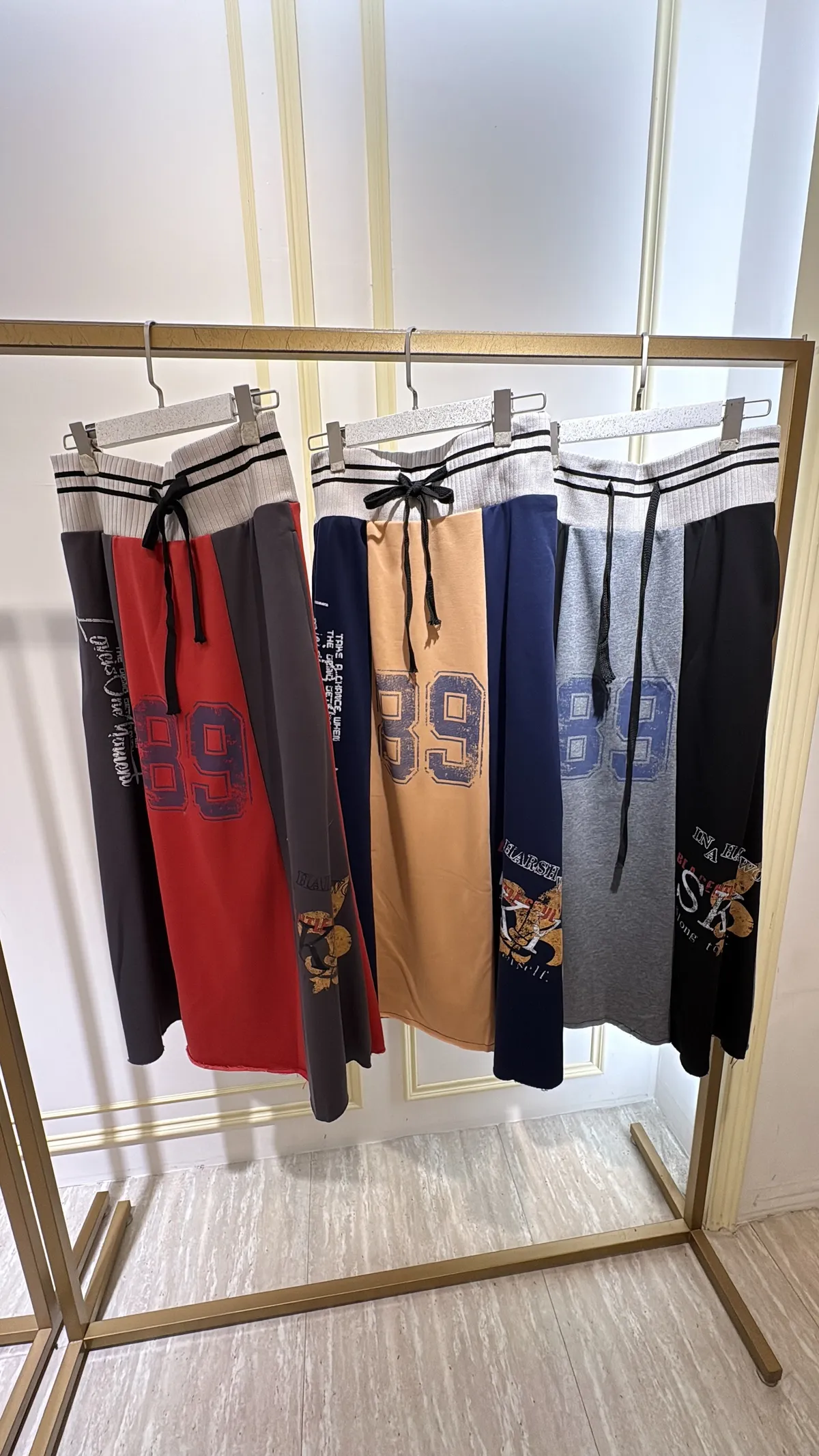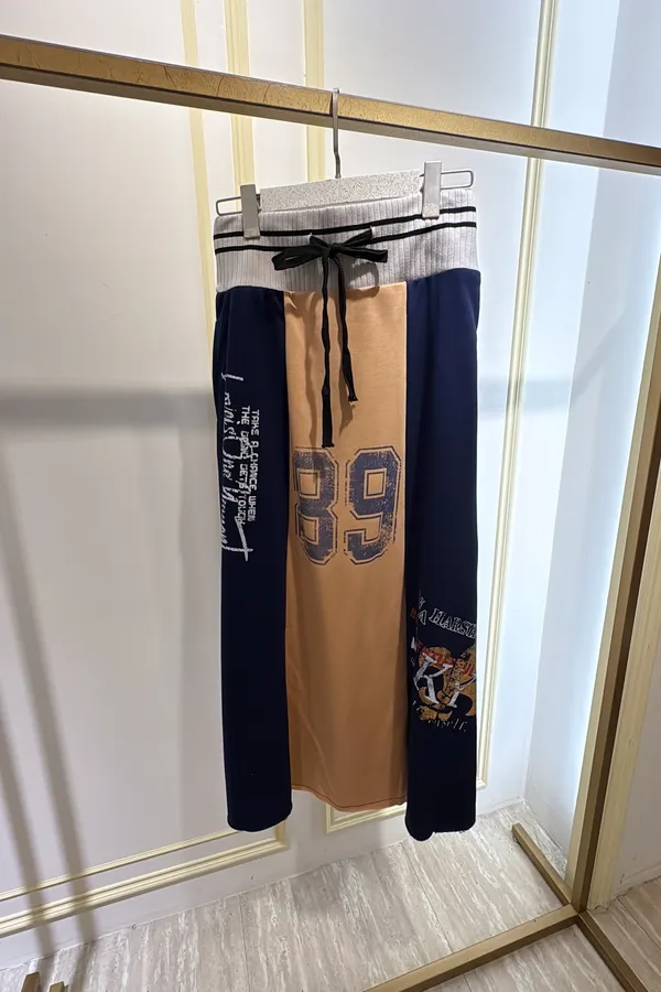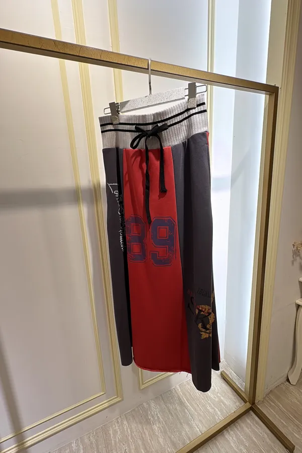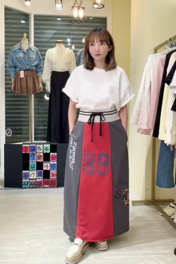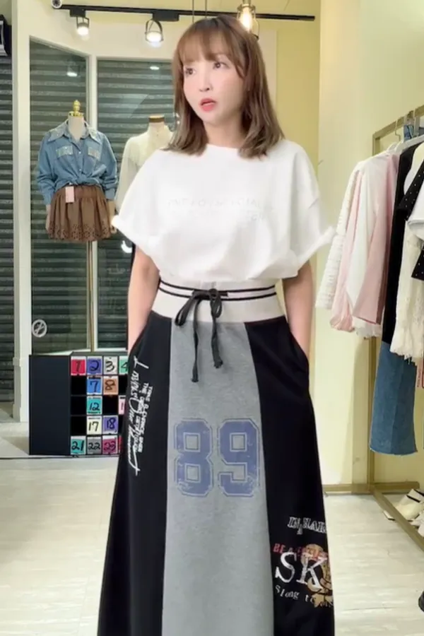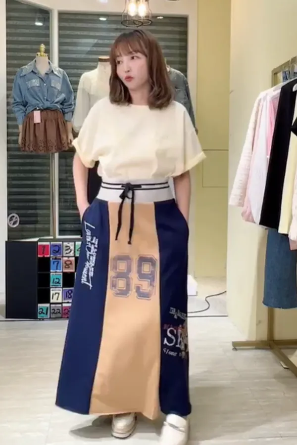 T056復古89撞色休閒長裙