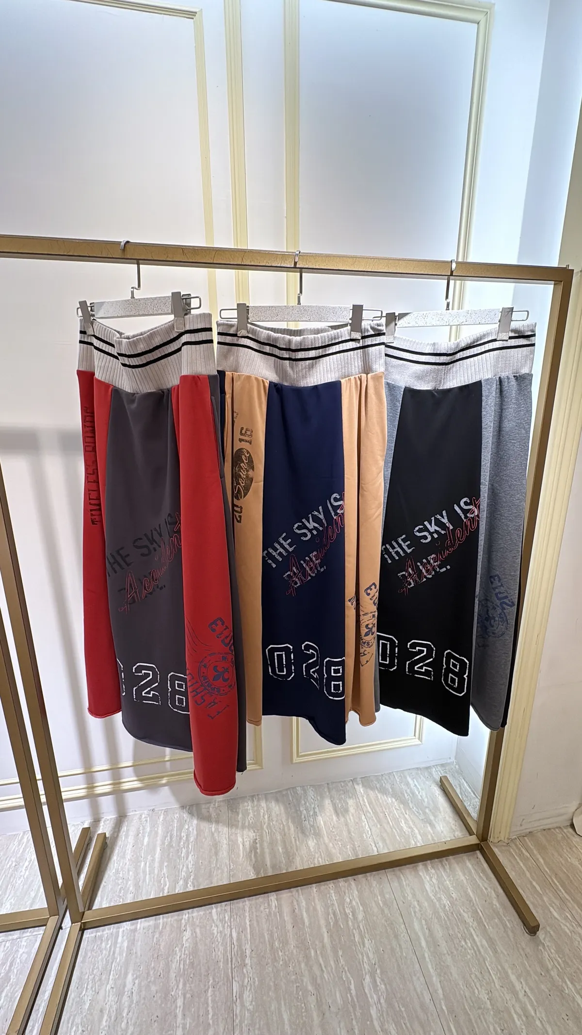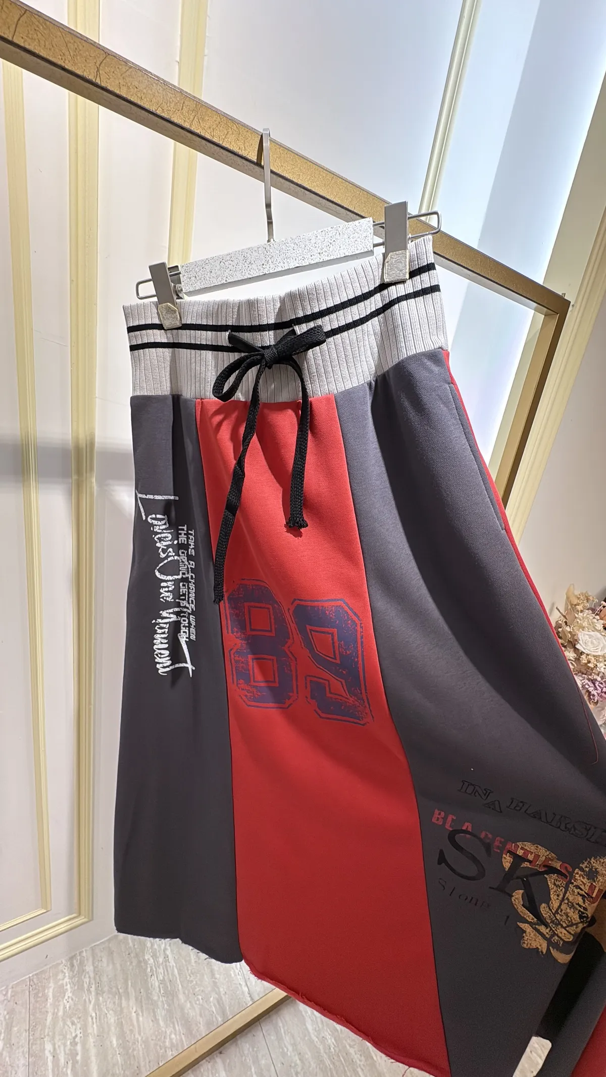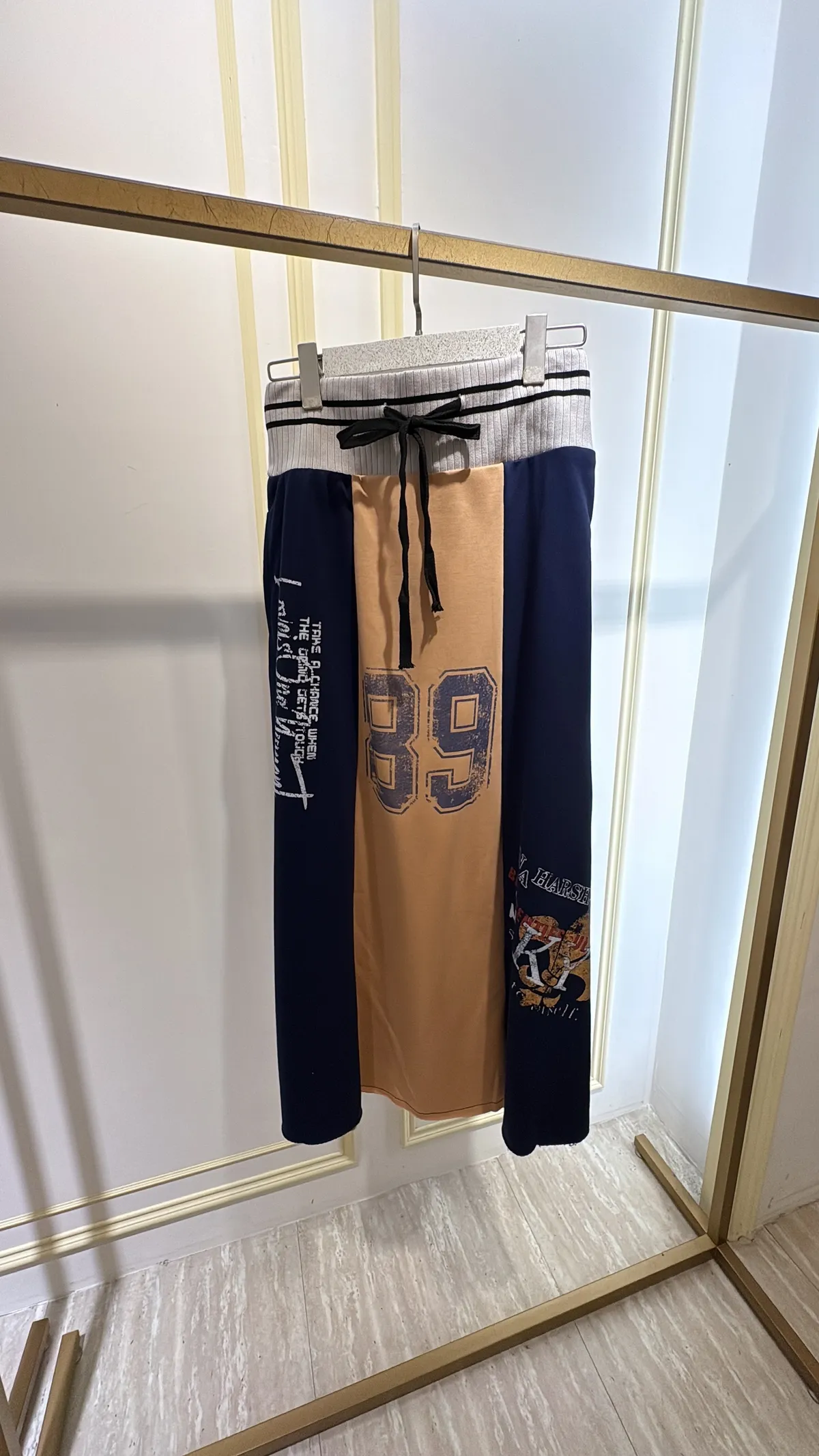 T056復古89撞色休閒長裙