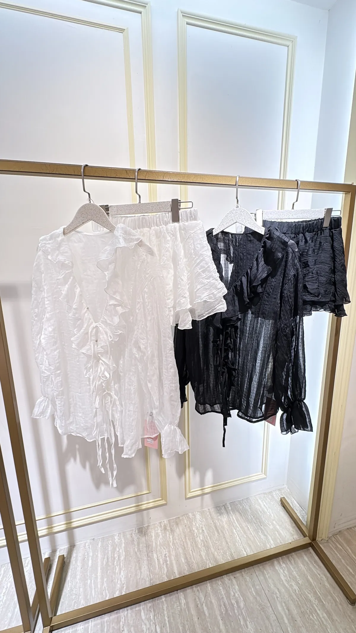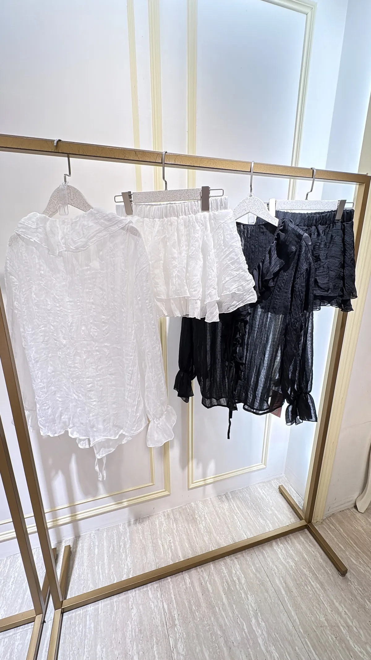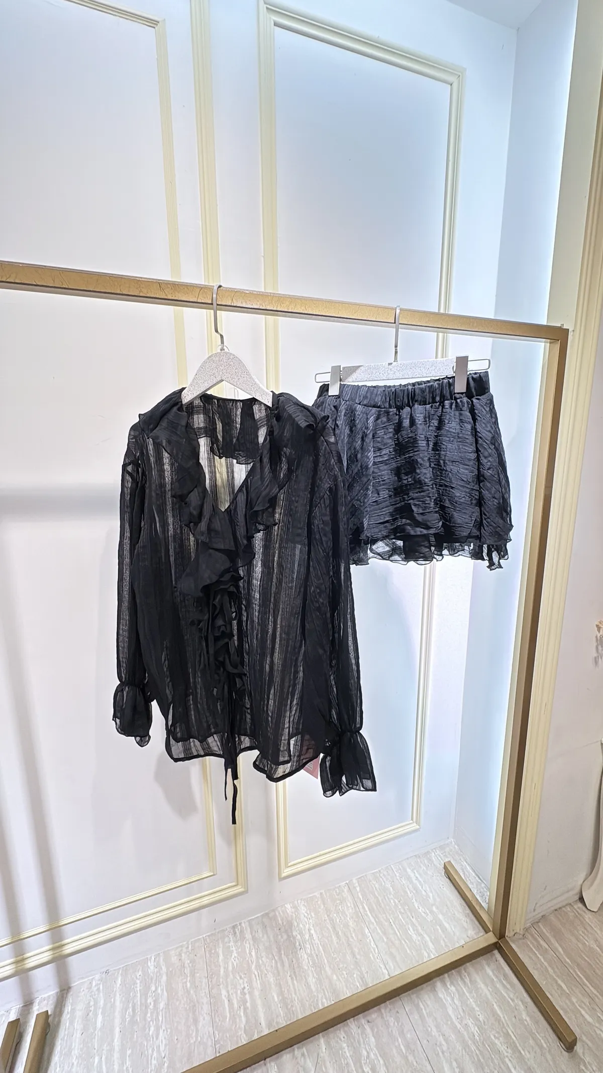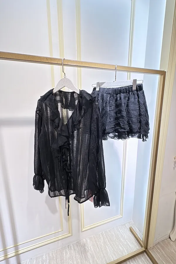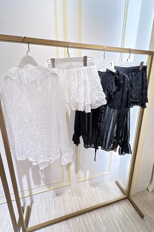 T073 法式抓皺荷葉綁褲裙裝
