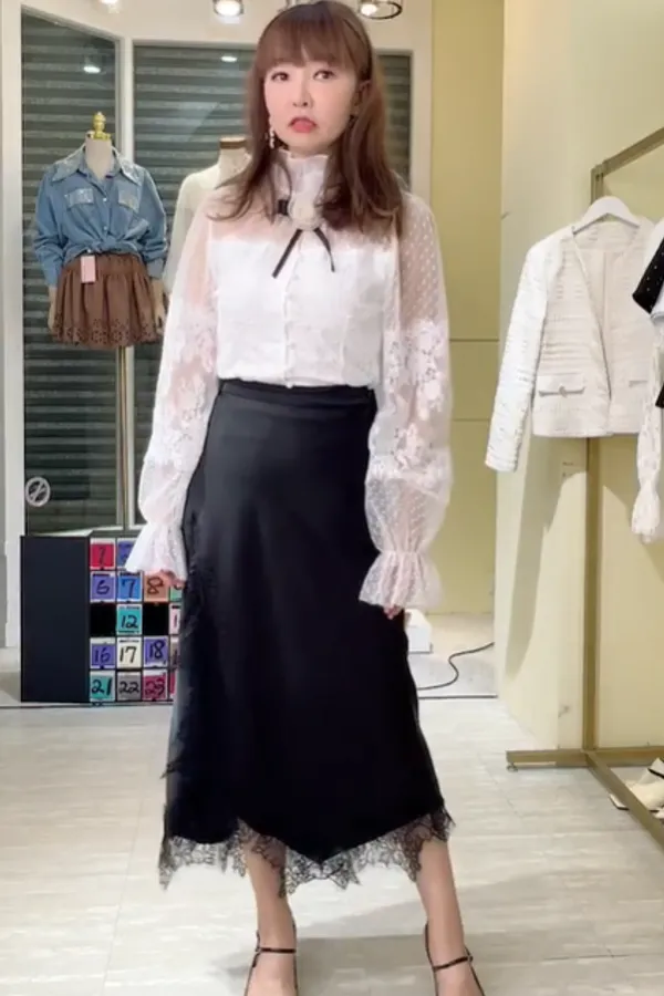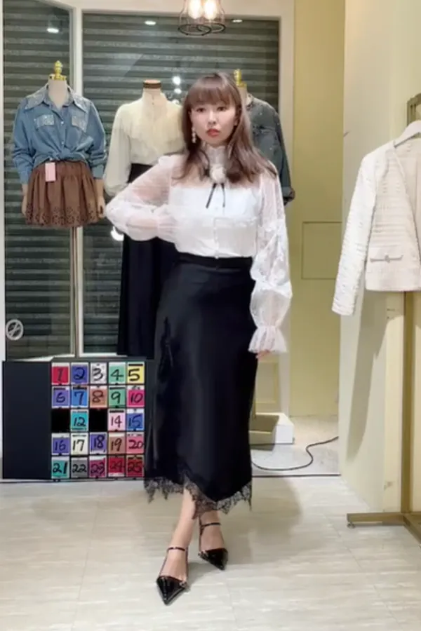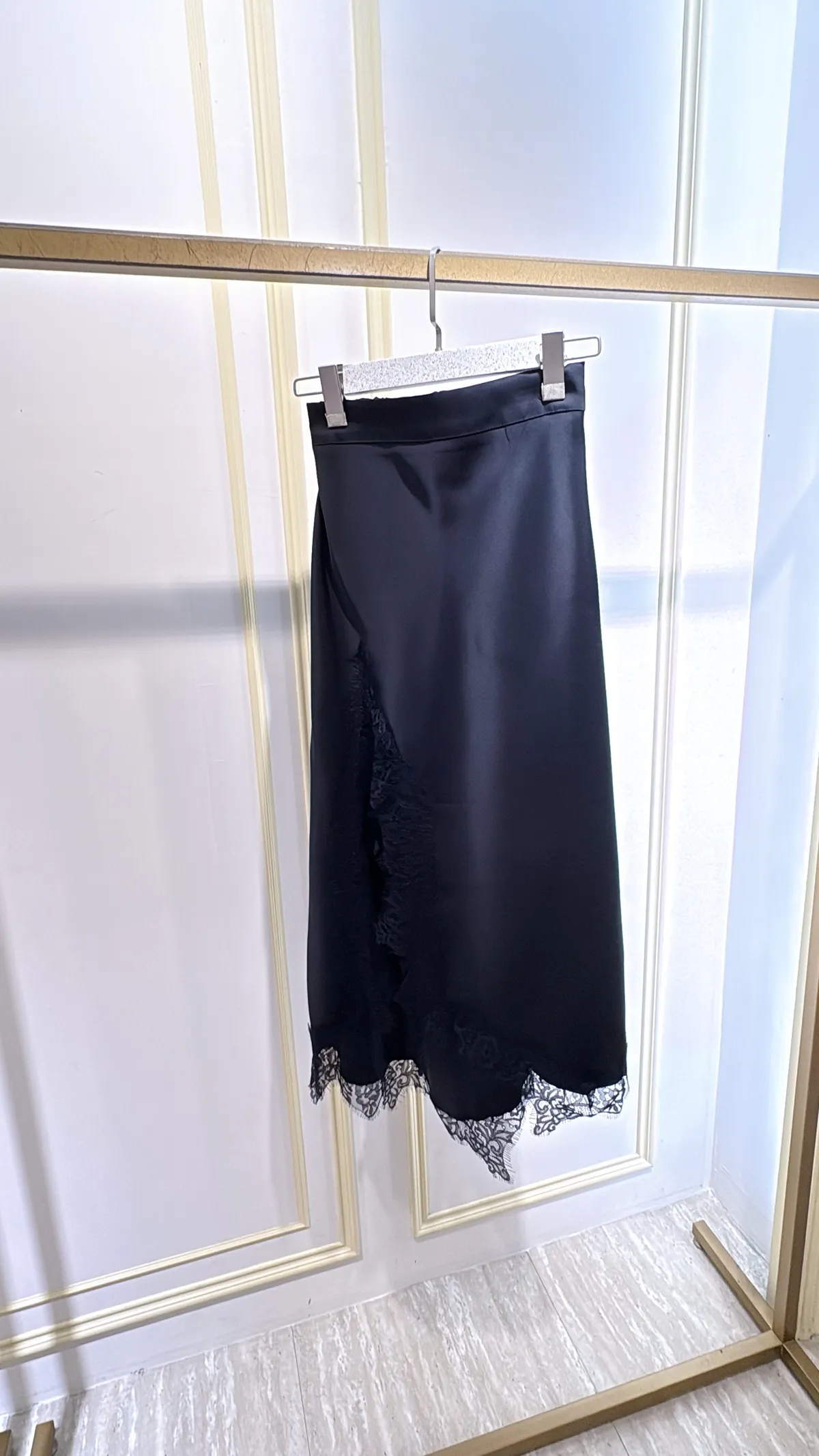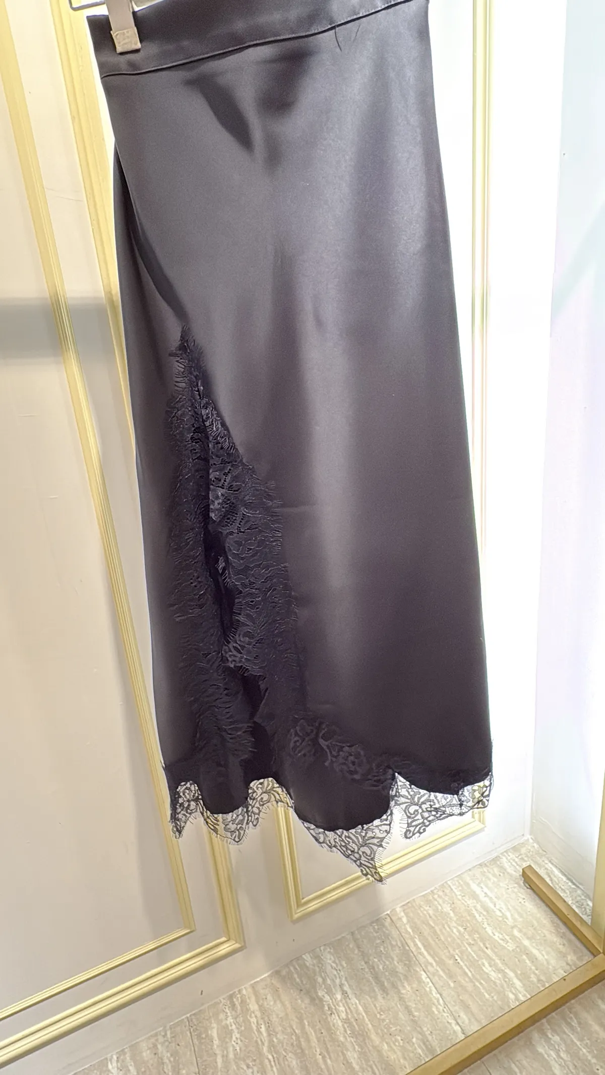 T080緞面蕾絲側衩長裙