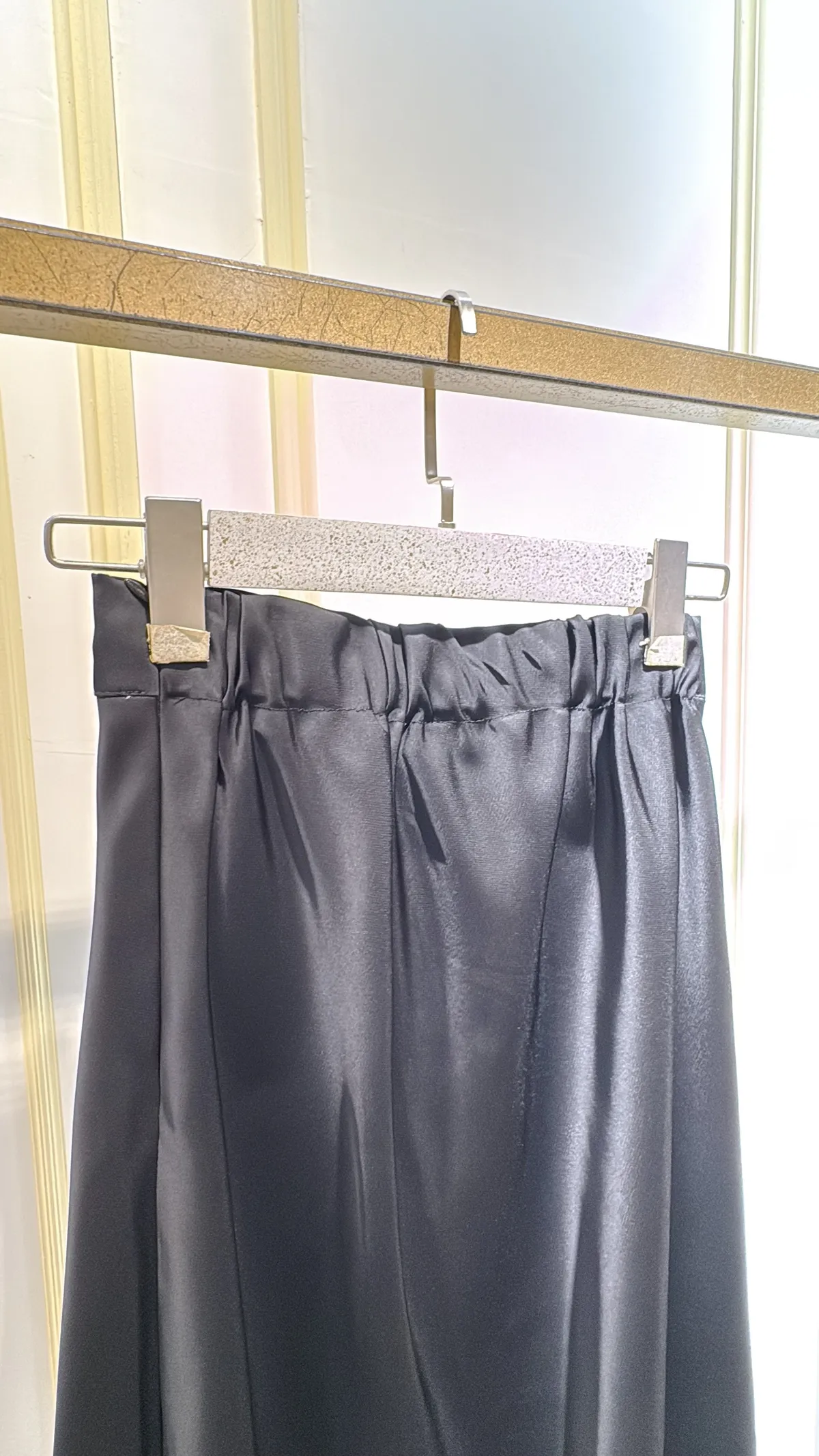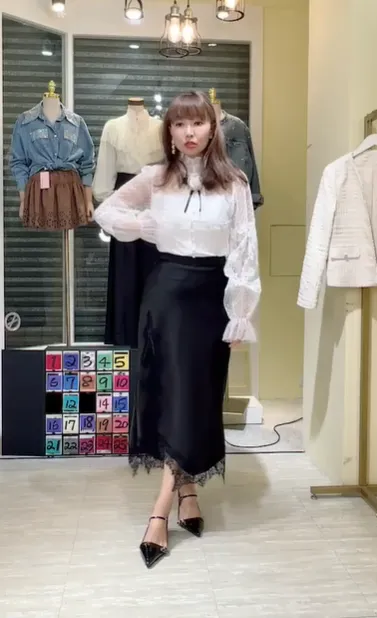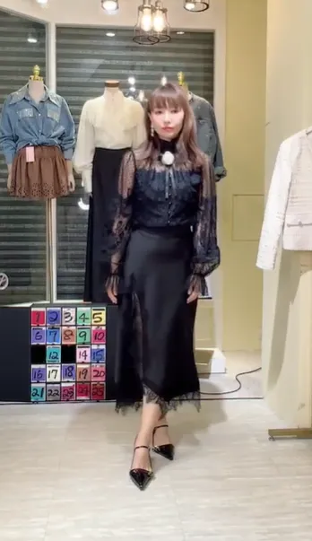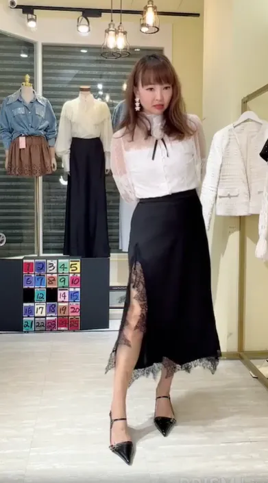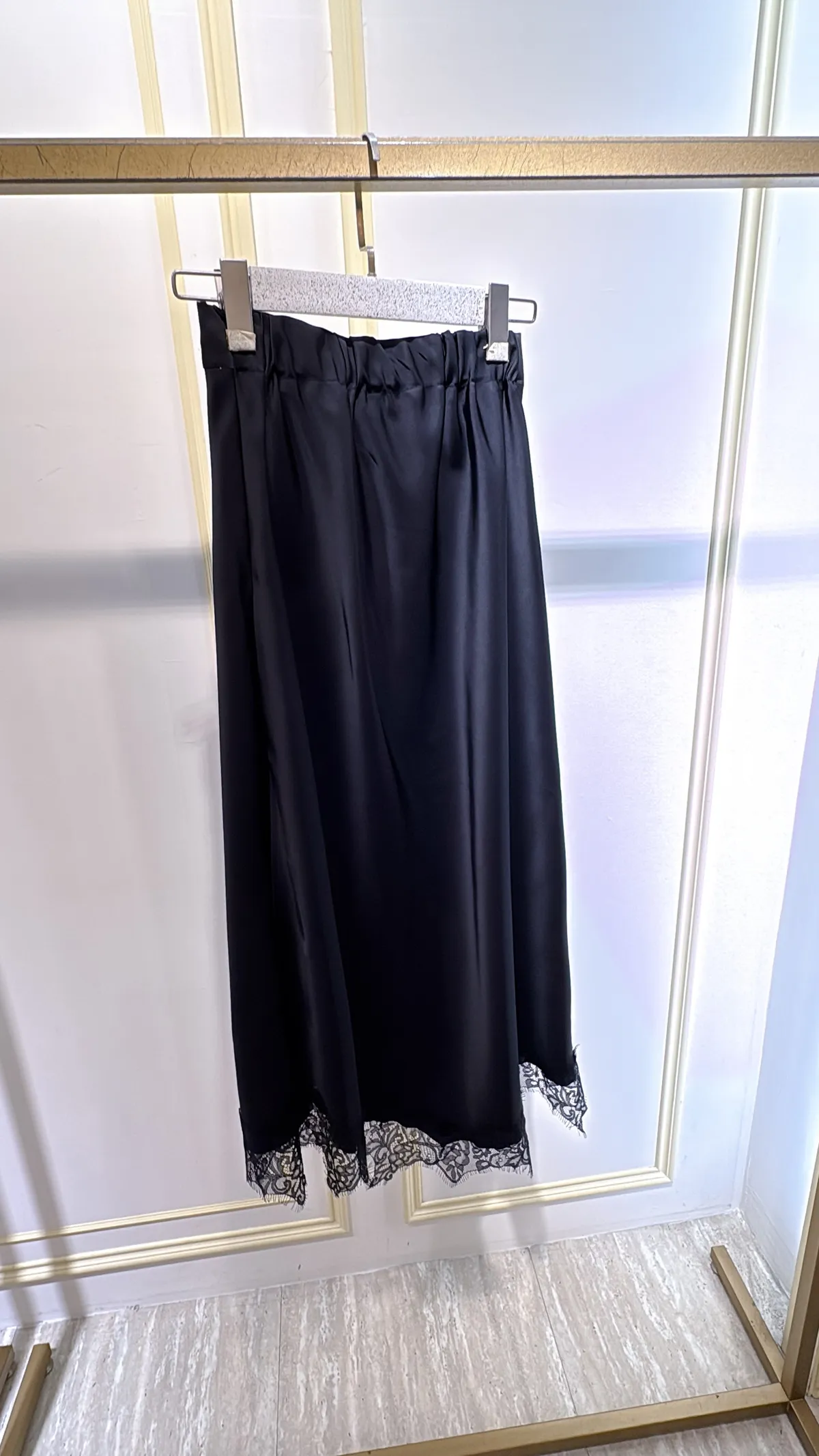 T080緞面蕾絲側衩長裙