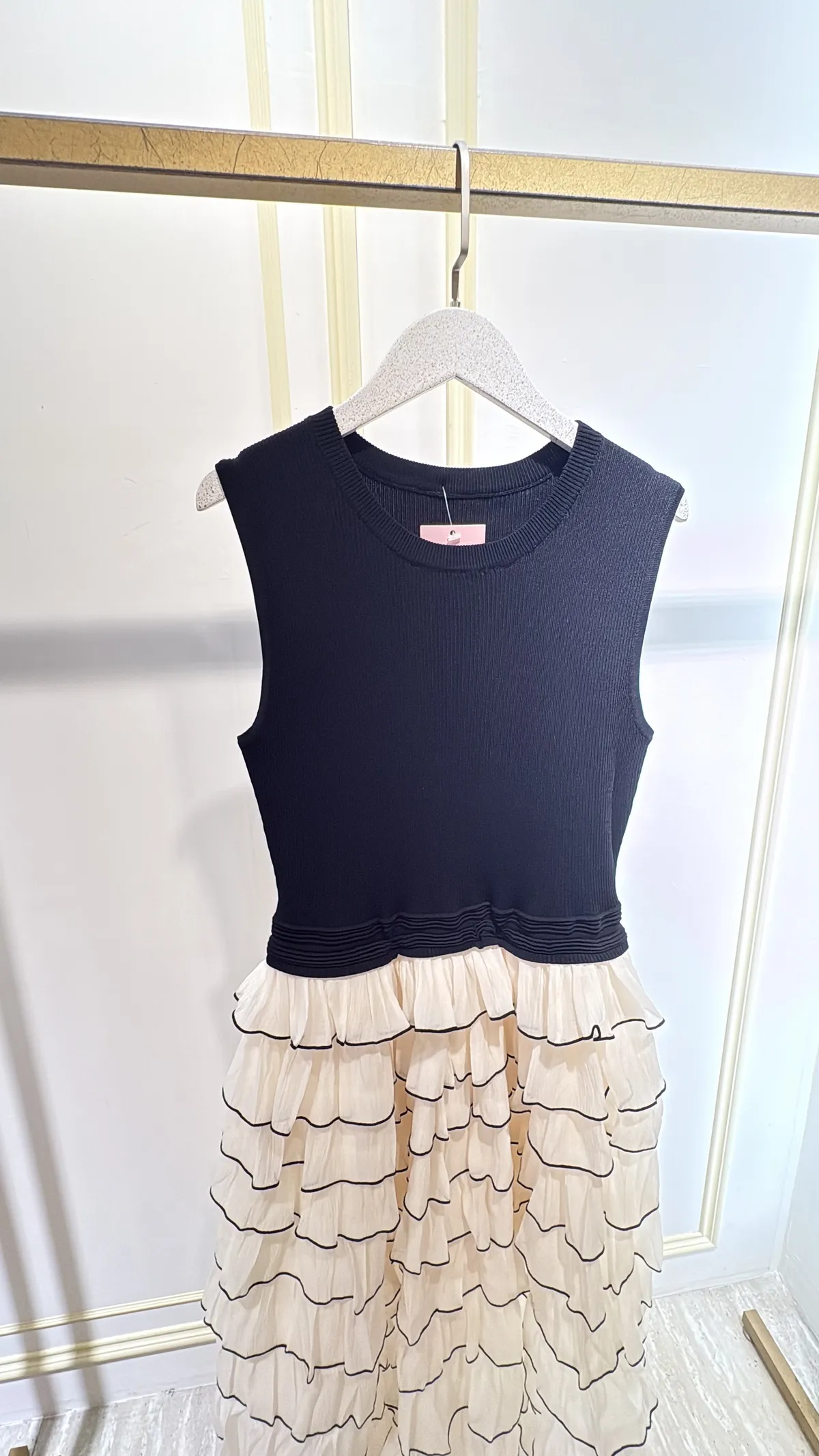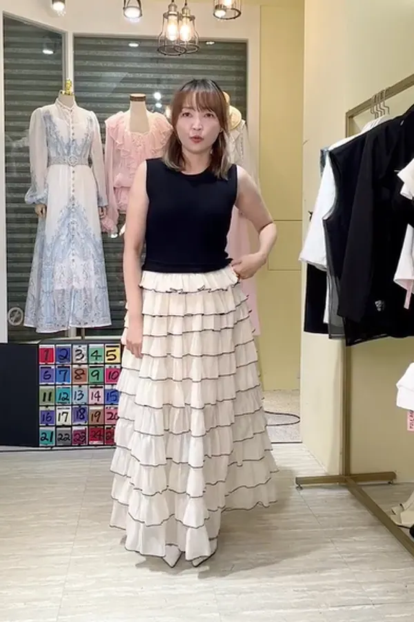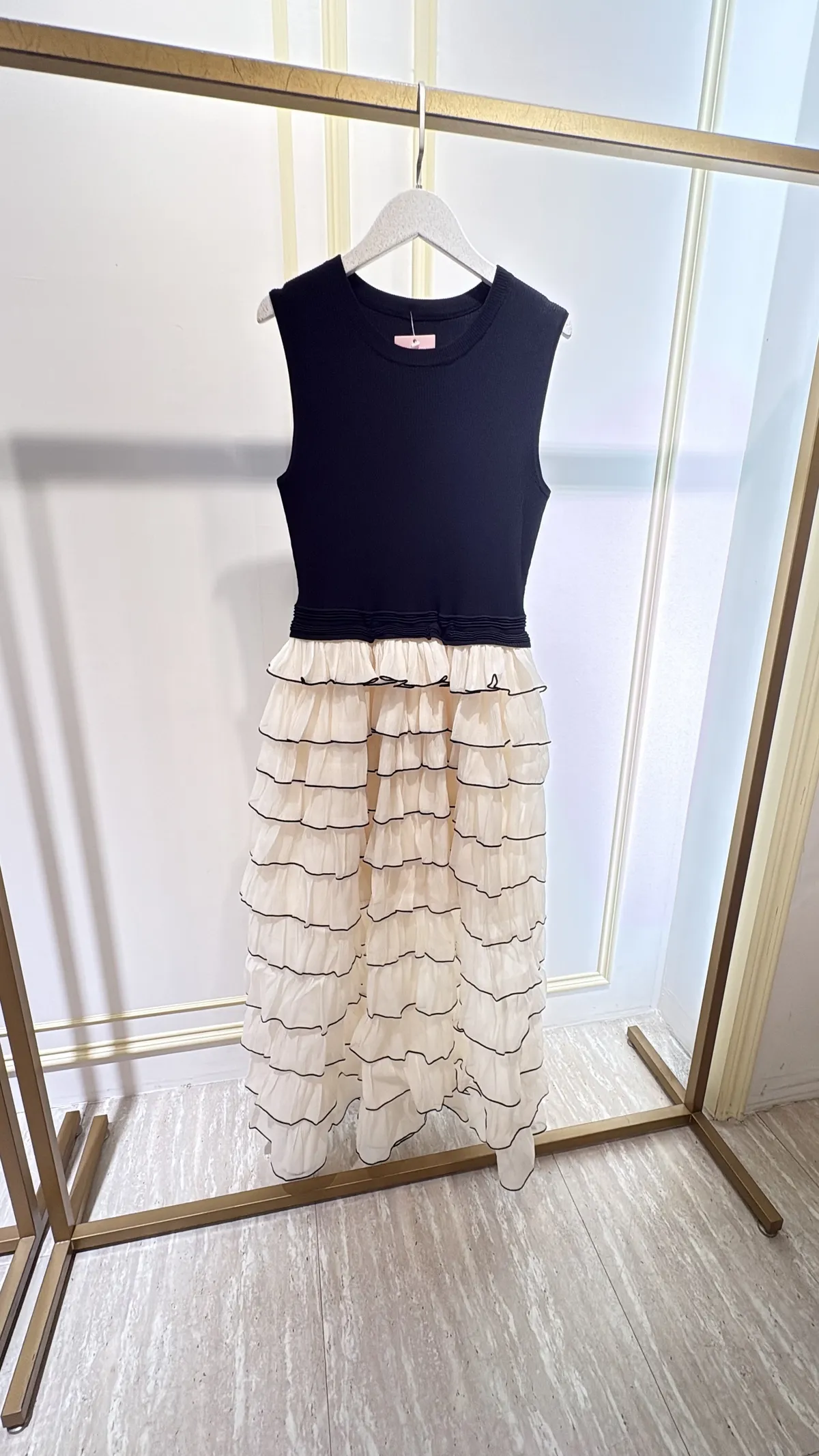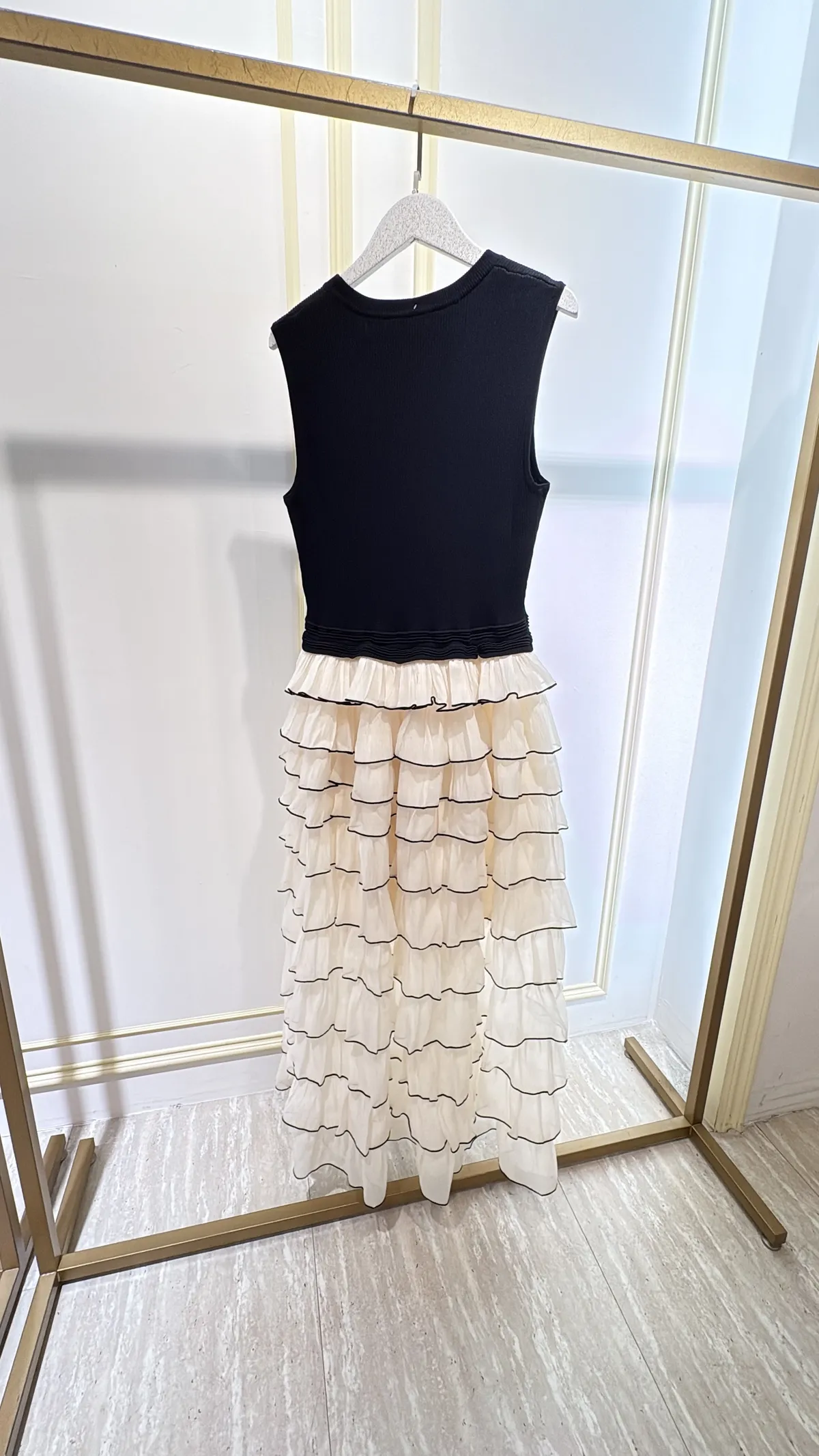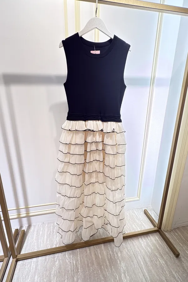 T084黑白蛋糕紗紗長洋裝