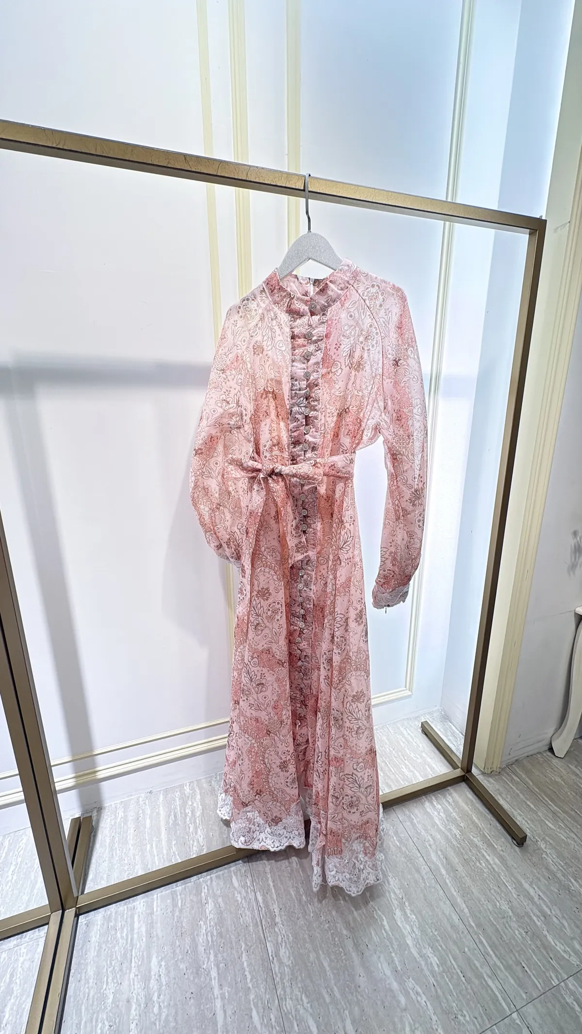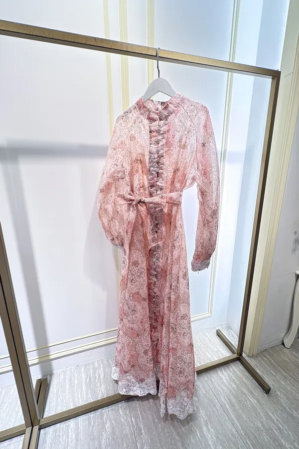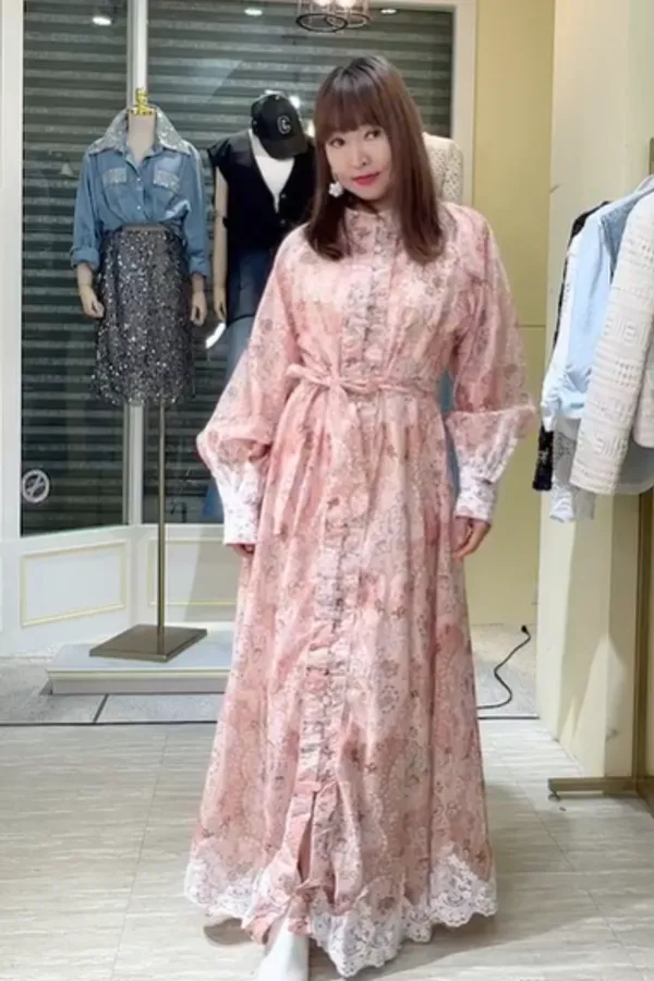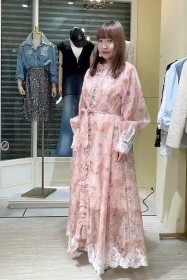 T111粉霧印花長洋裝