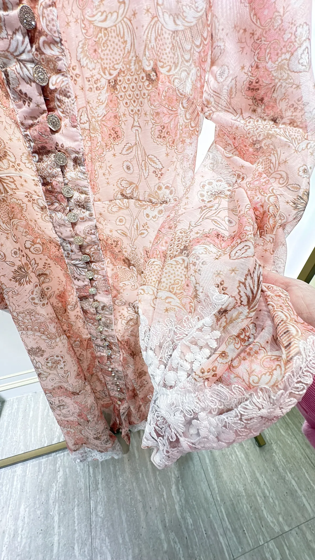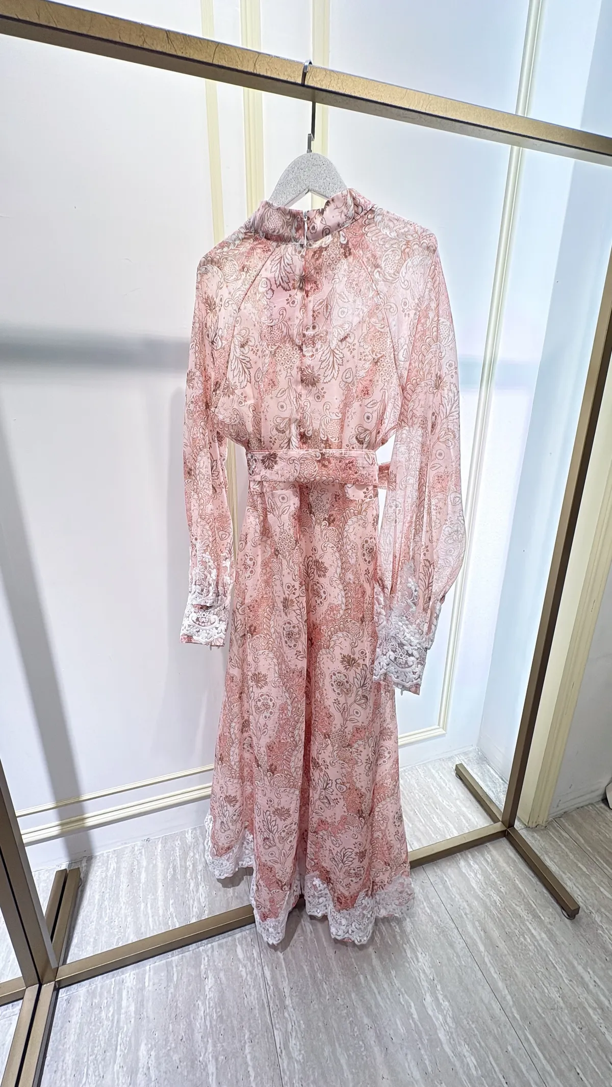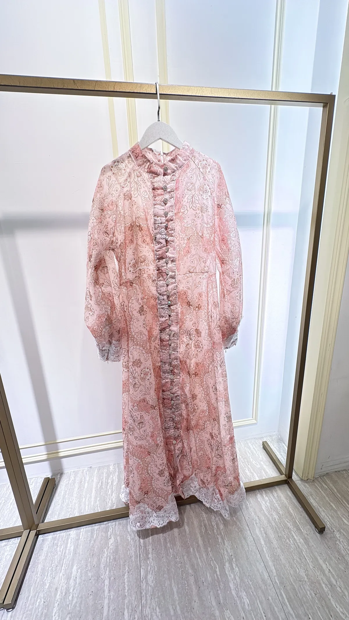 T111粉霧印花長洋裝