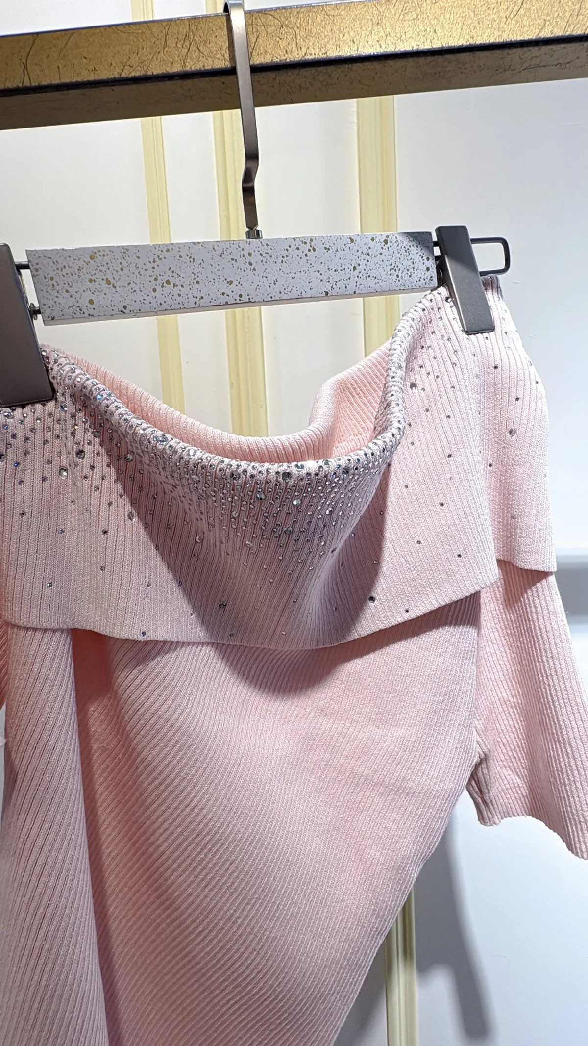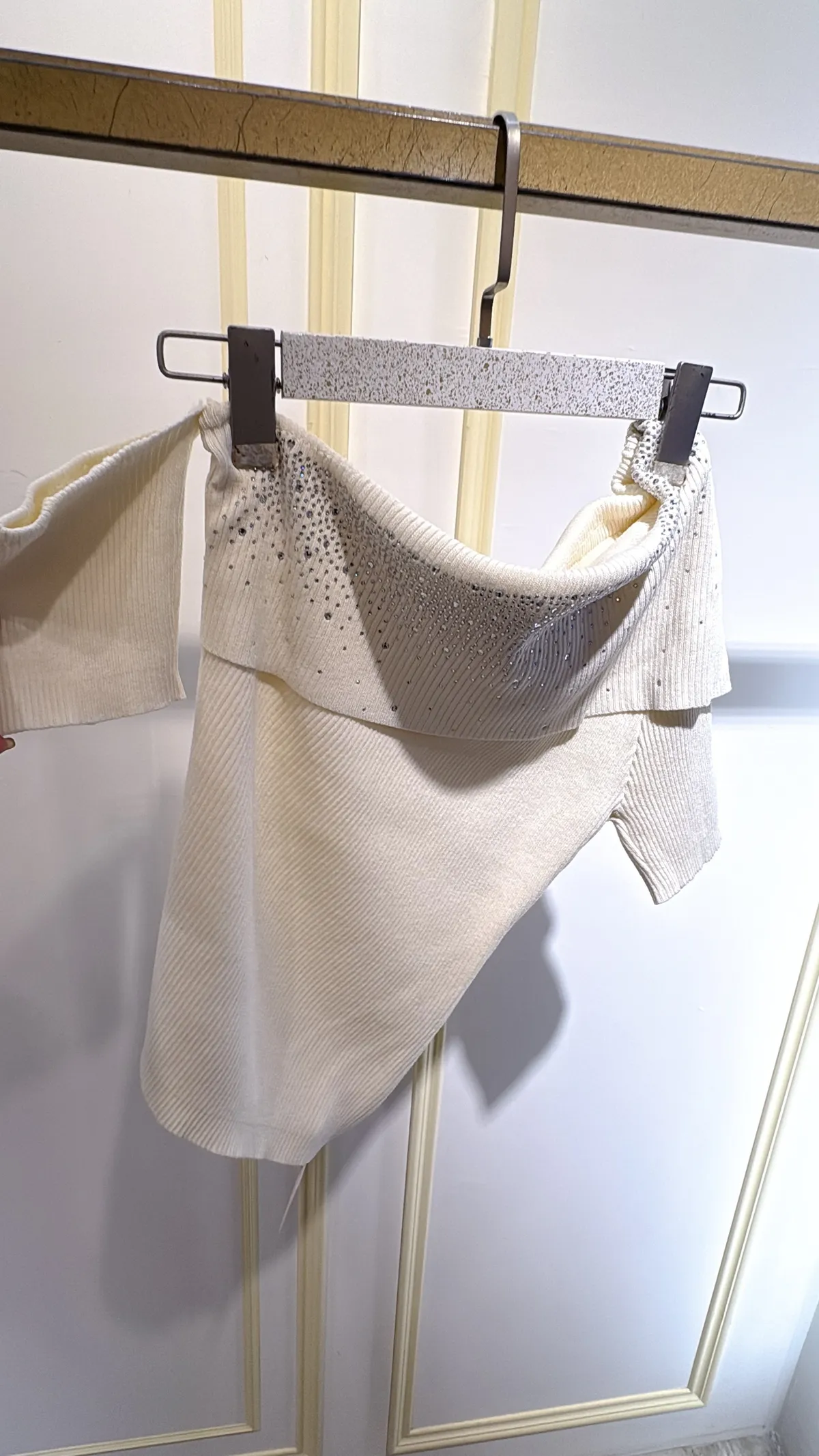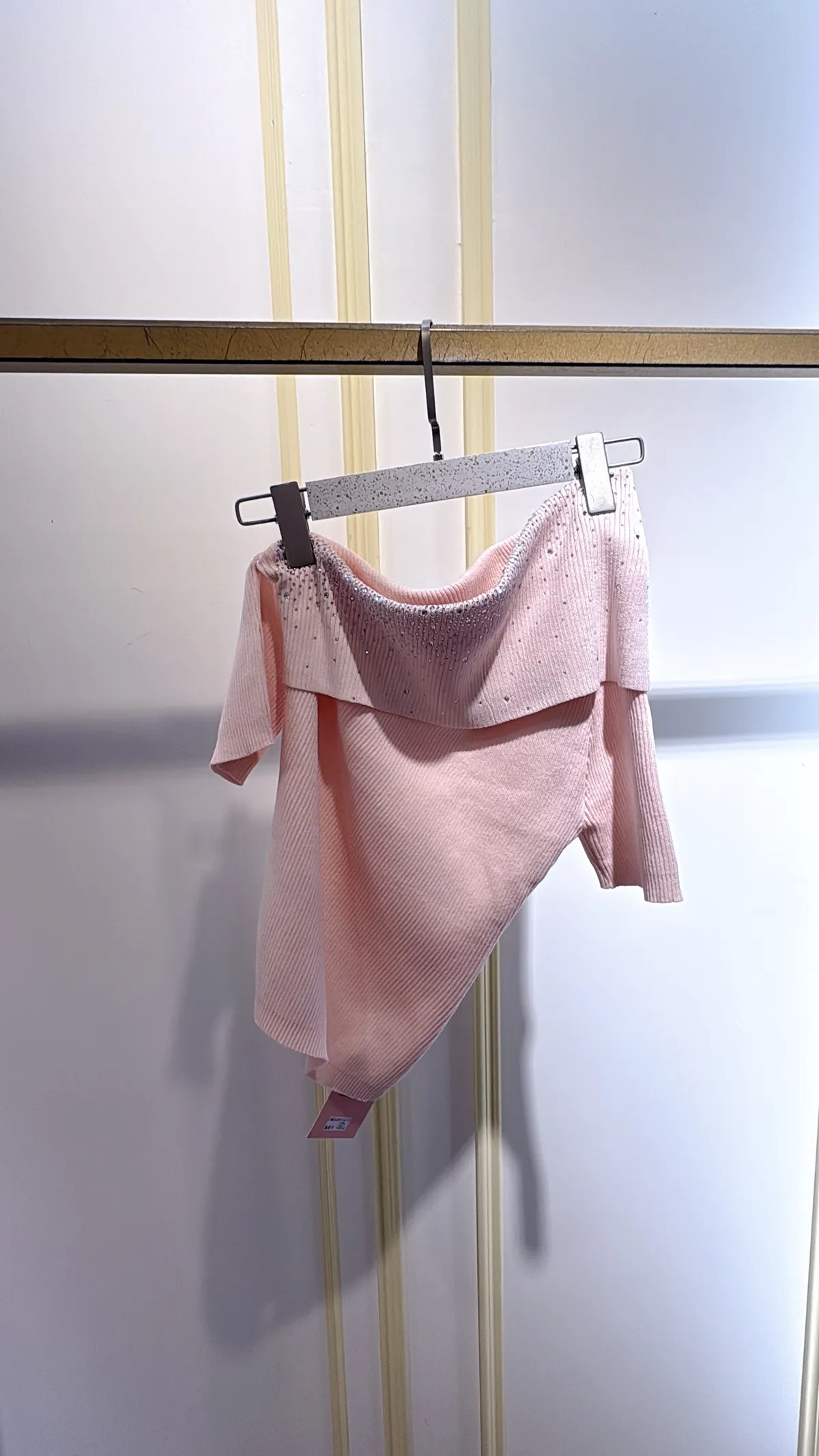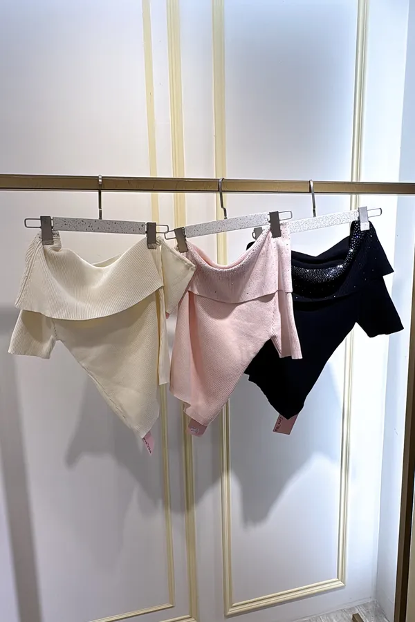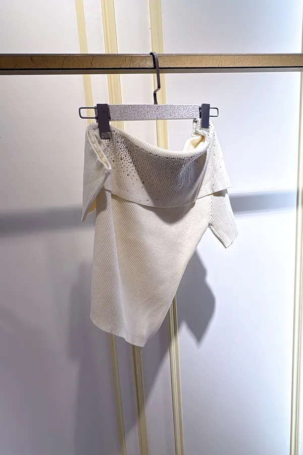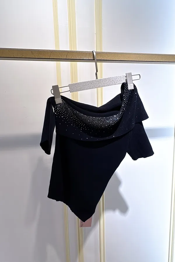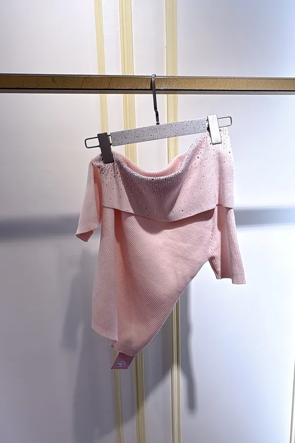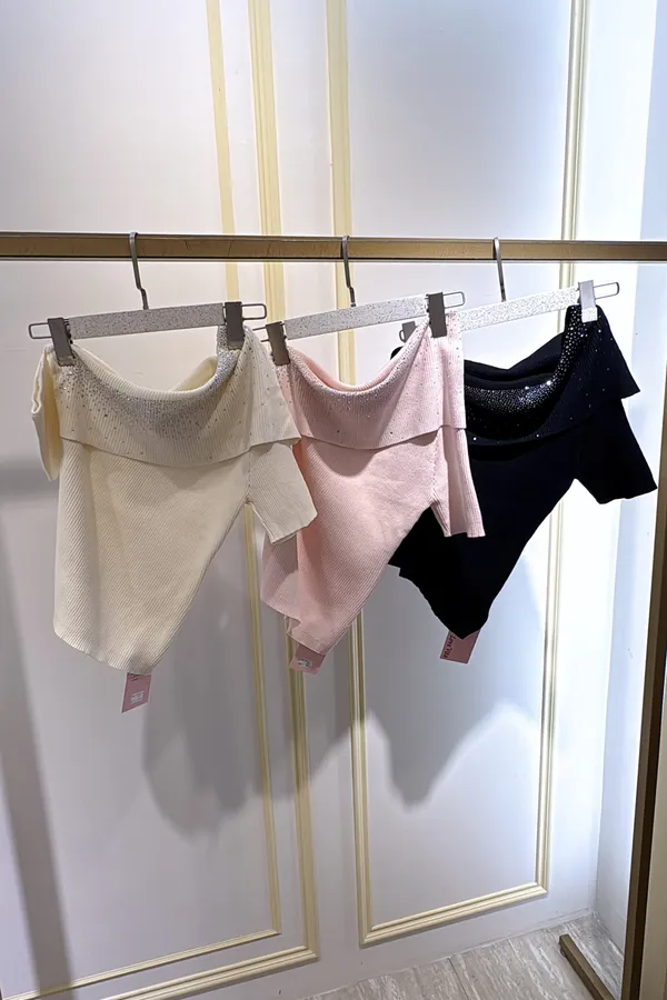 T132露肩燙鑽針織衣