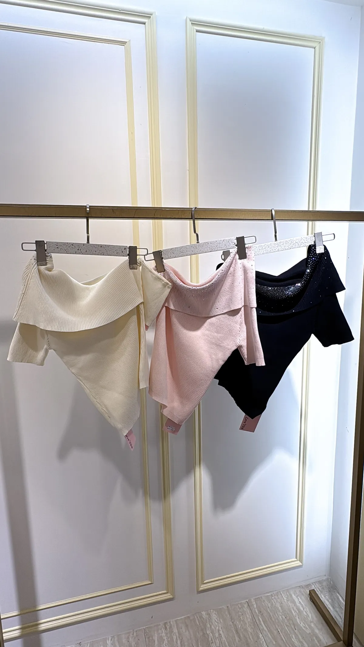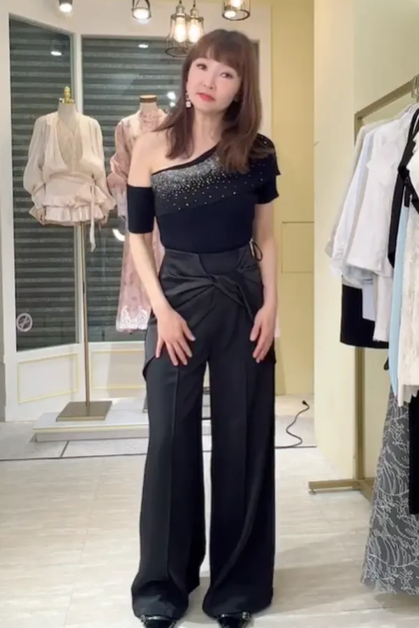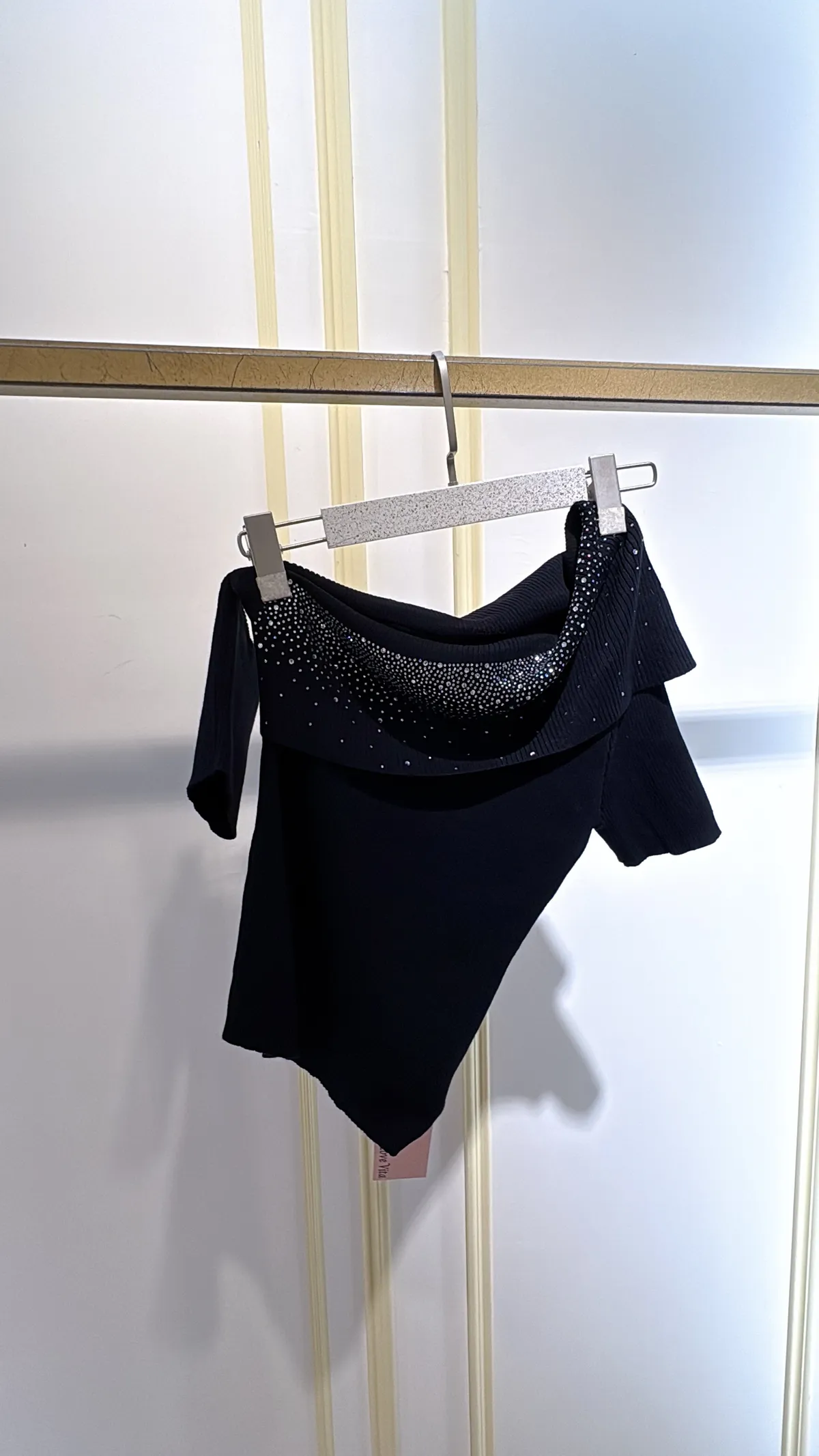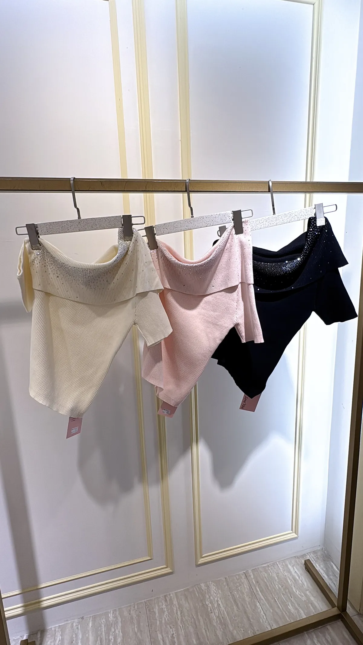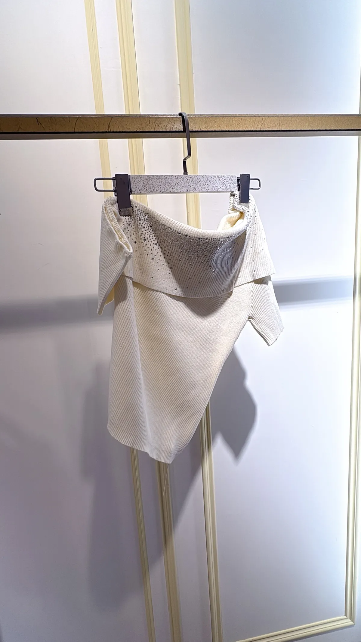 T132露肩燙鑽針織衣