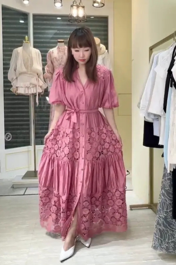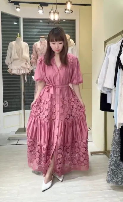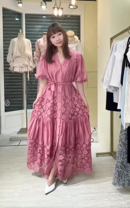 T149緹花長洋裝