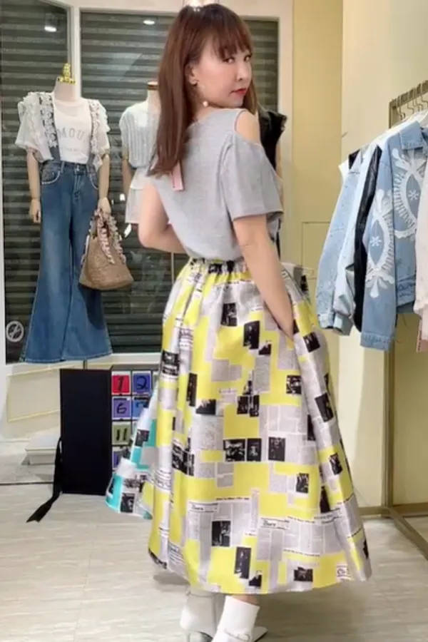 T254報紙刷色赫本裙