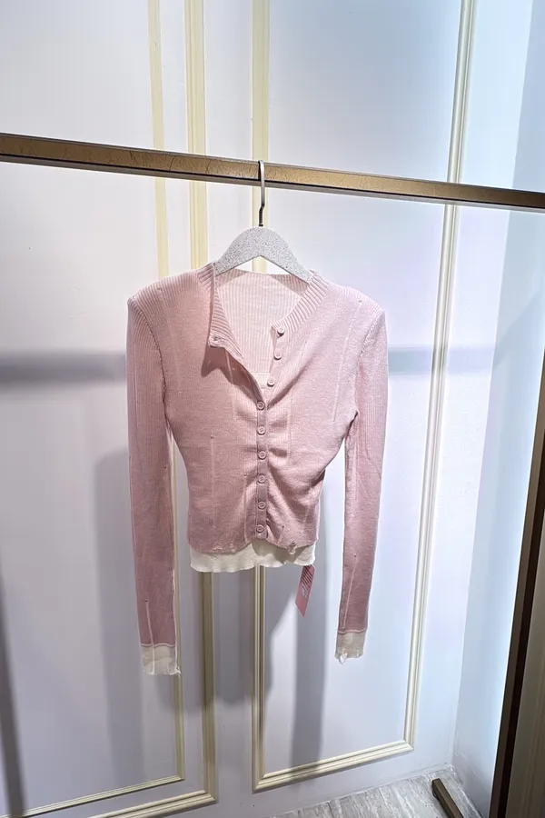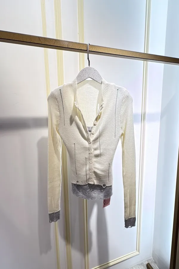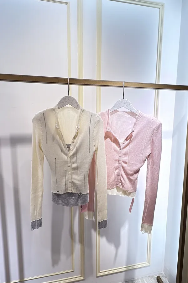 T261薄針織假二件式