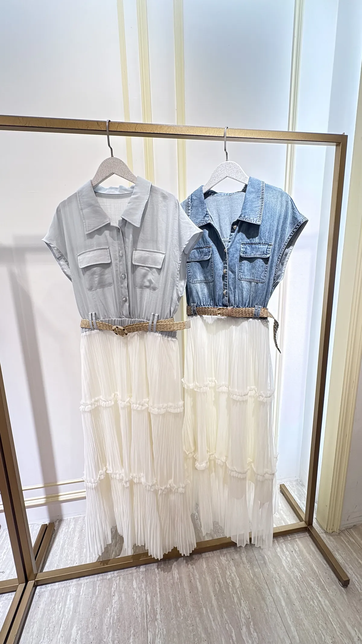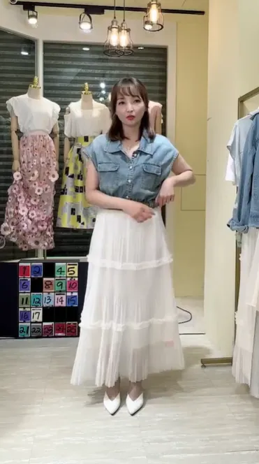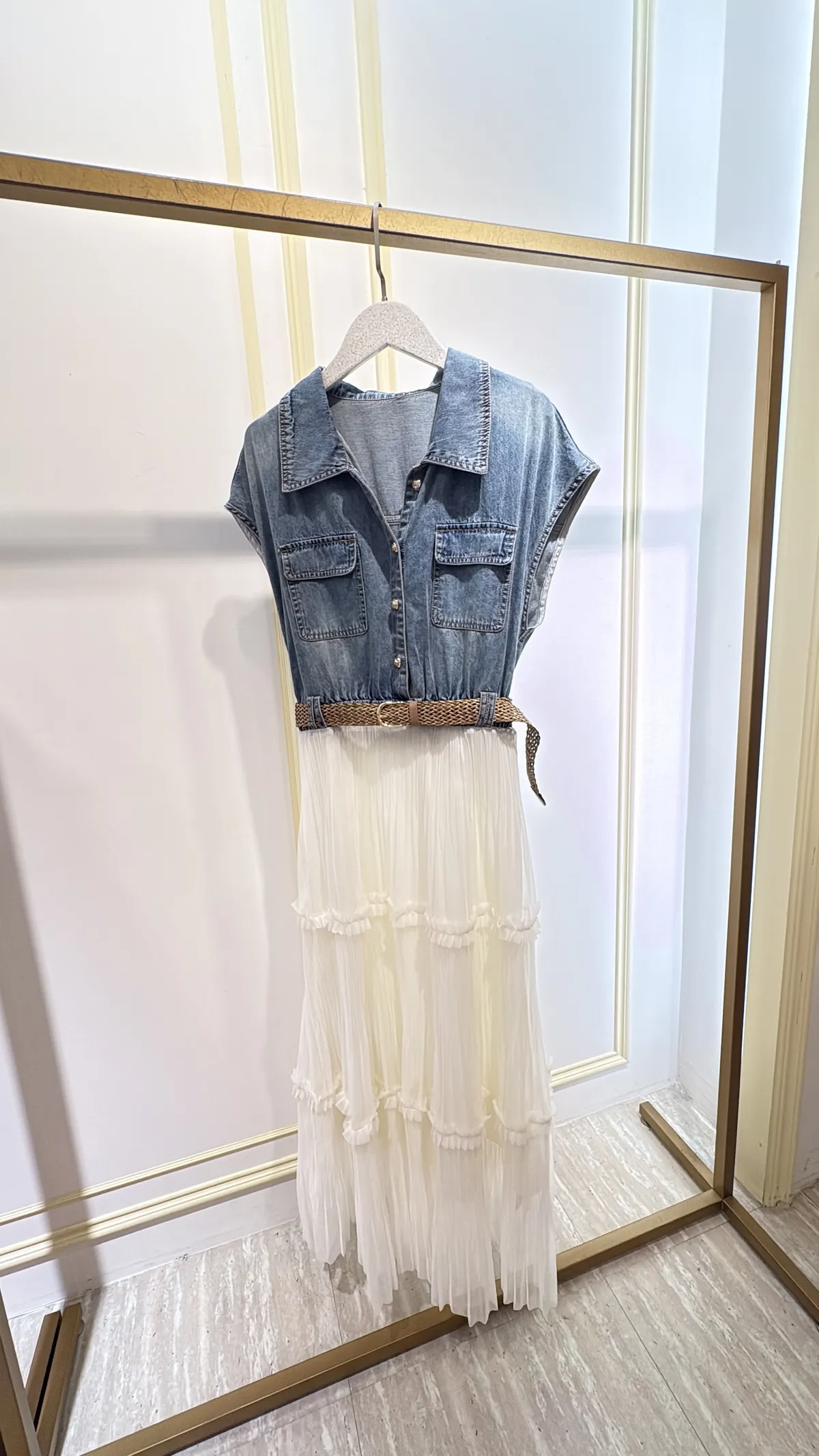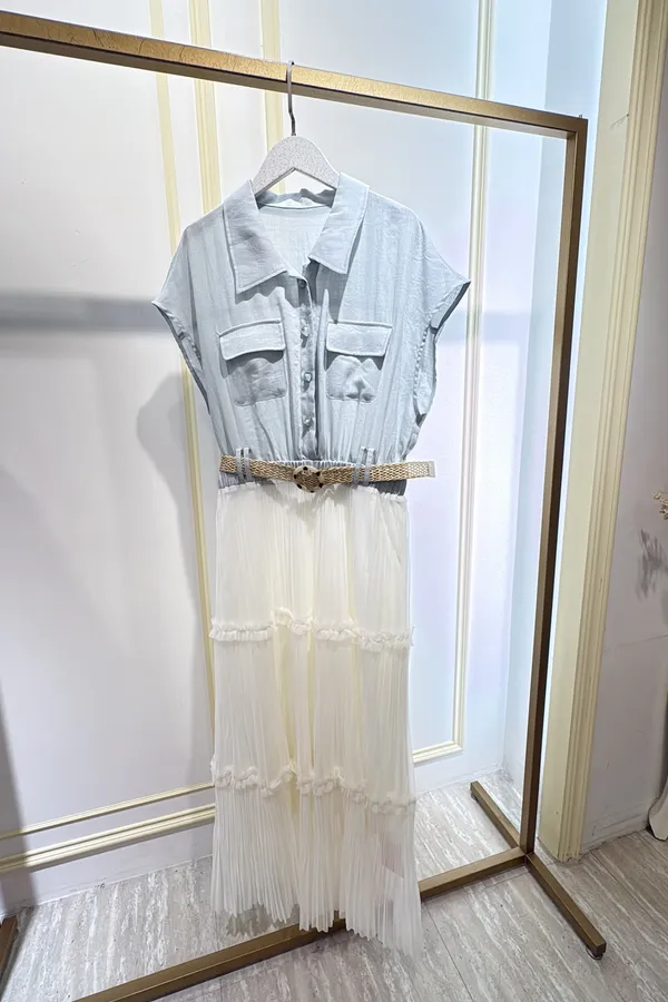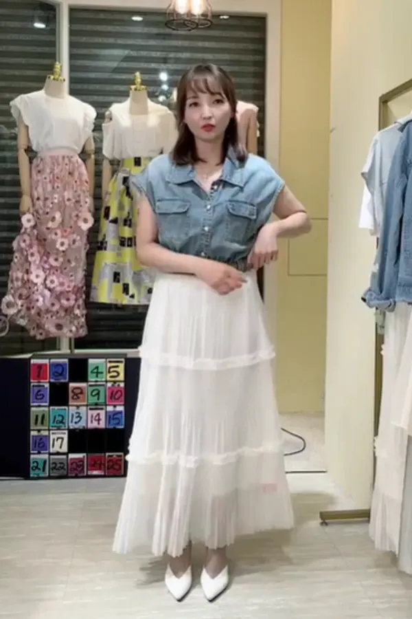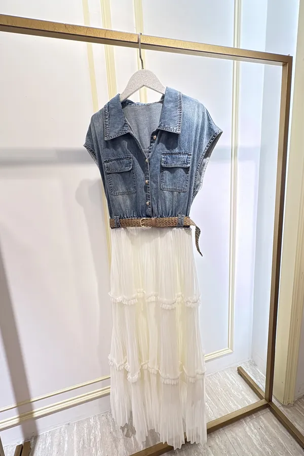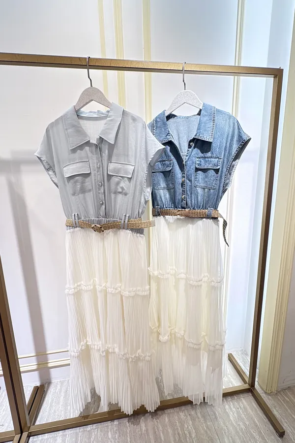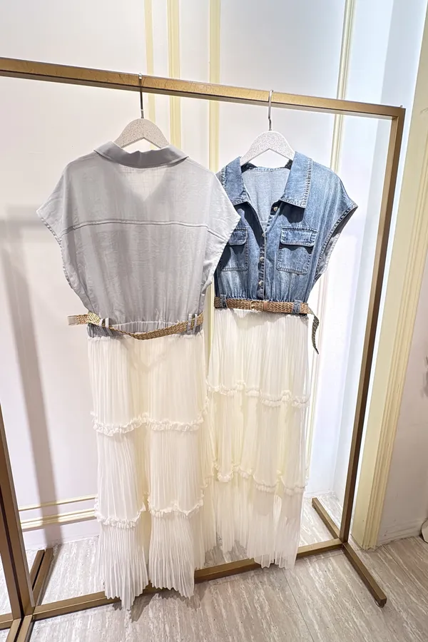 T267牛仔蛋糕紗長洋裝