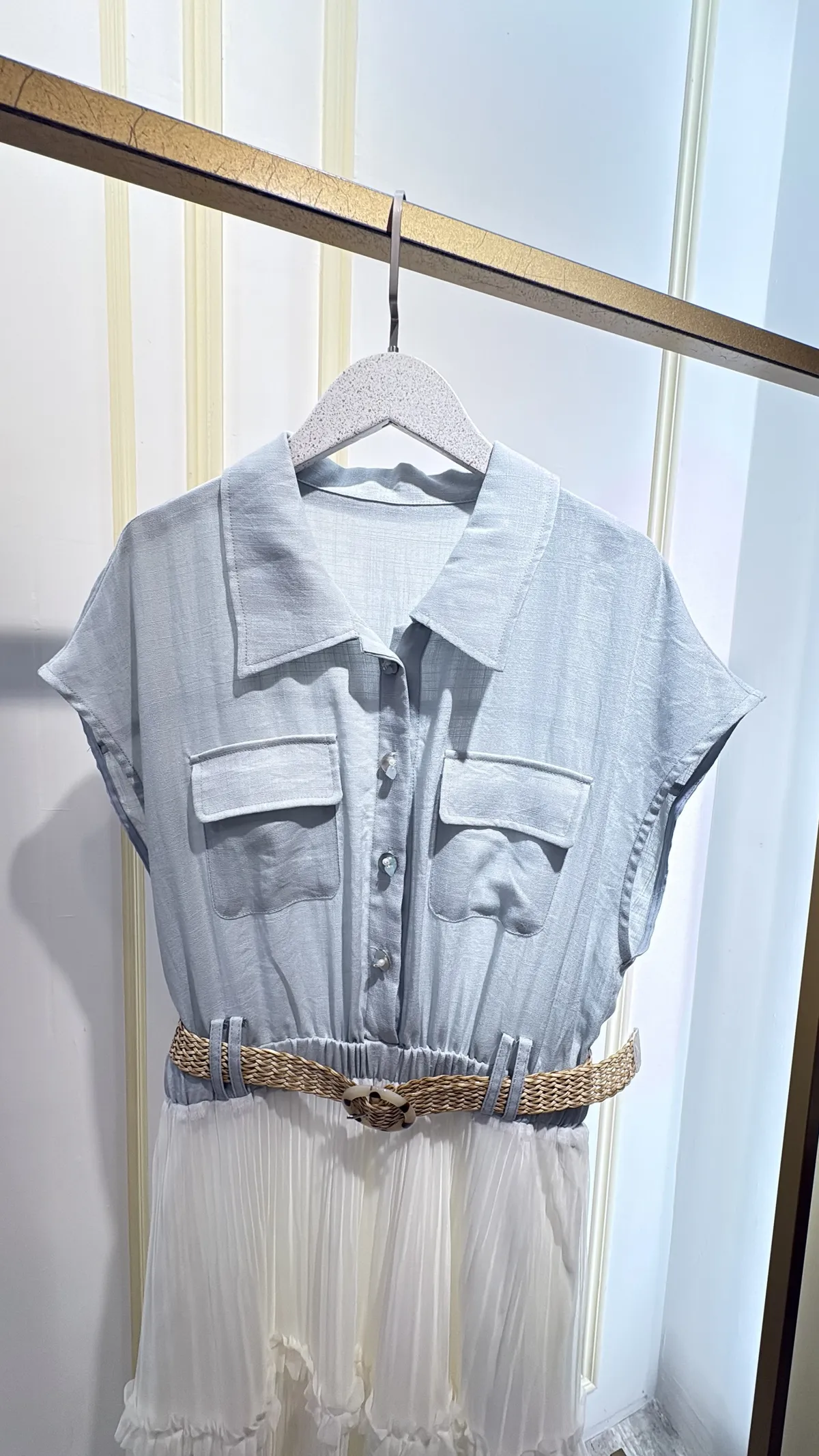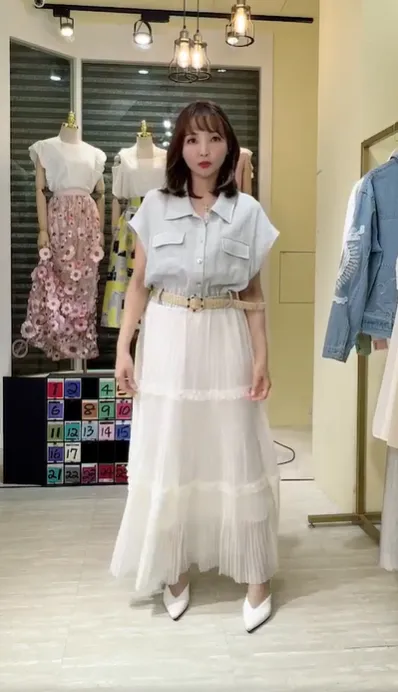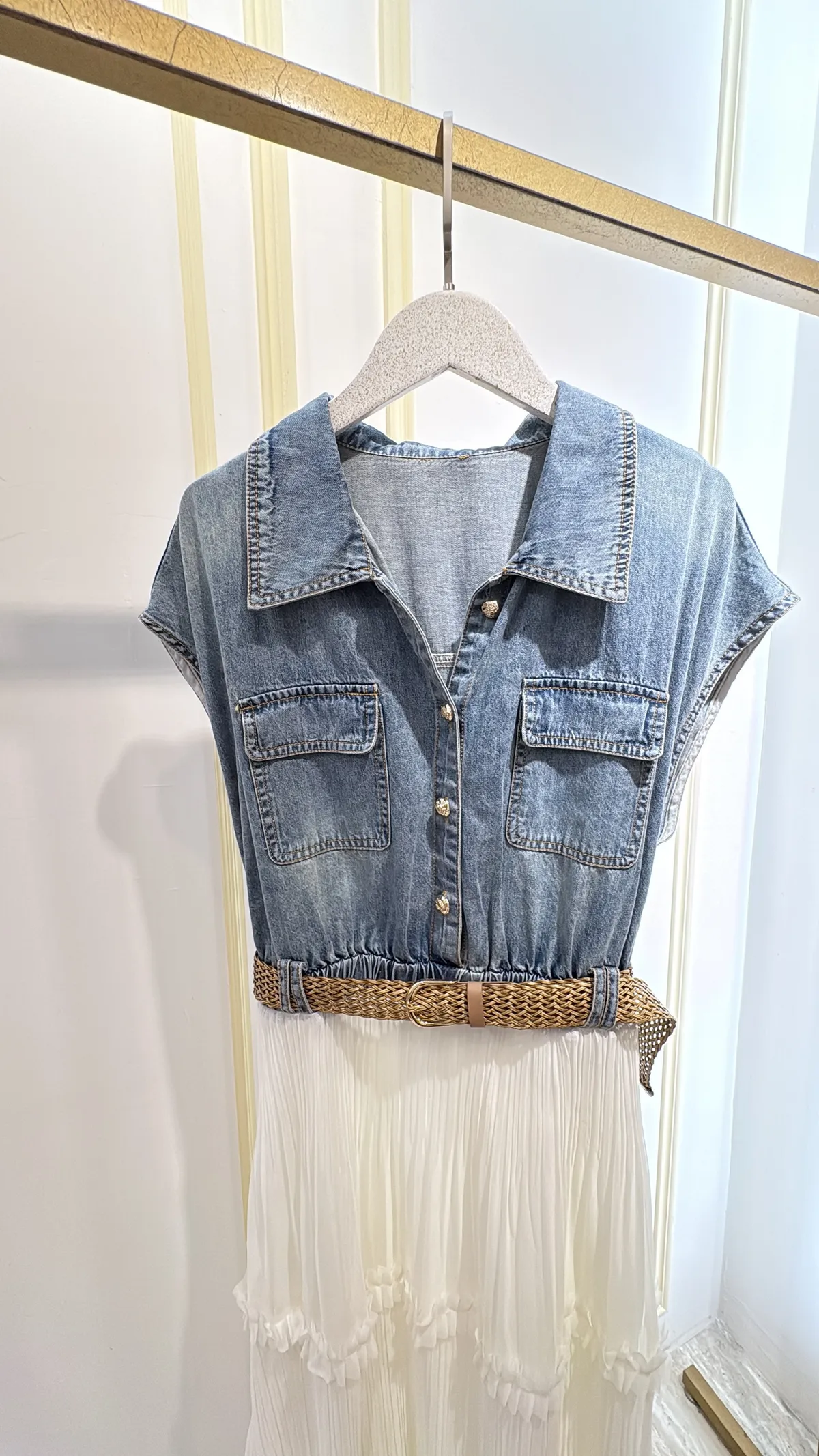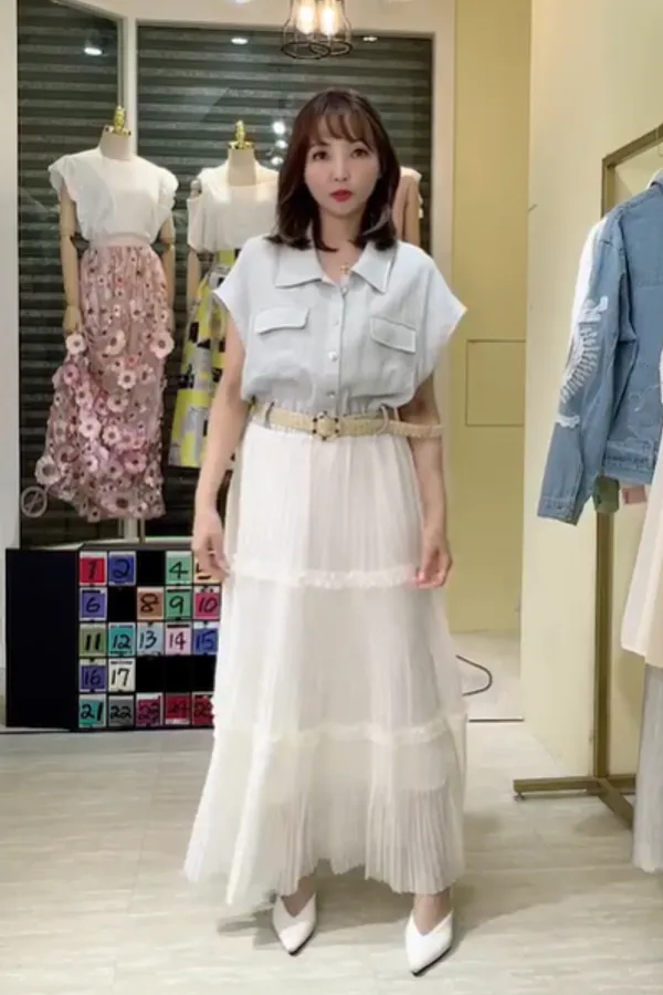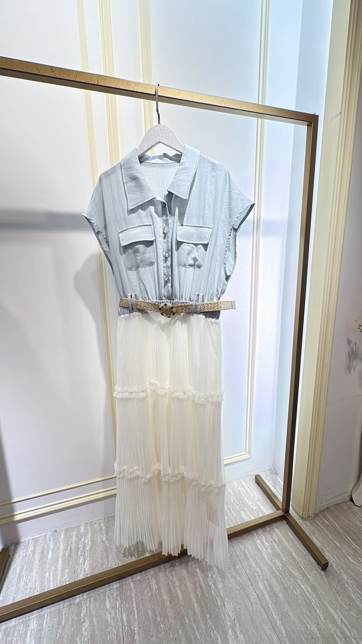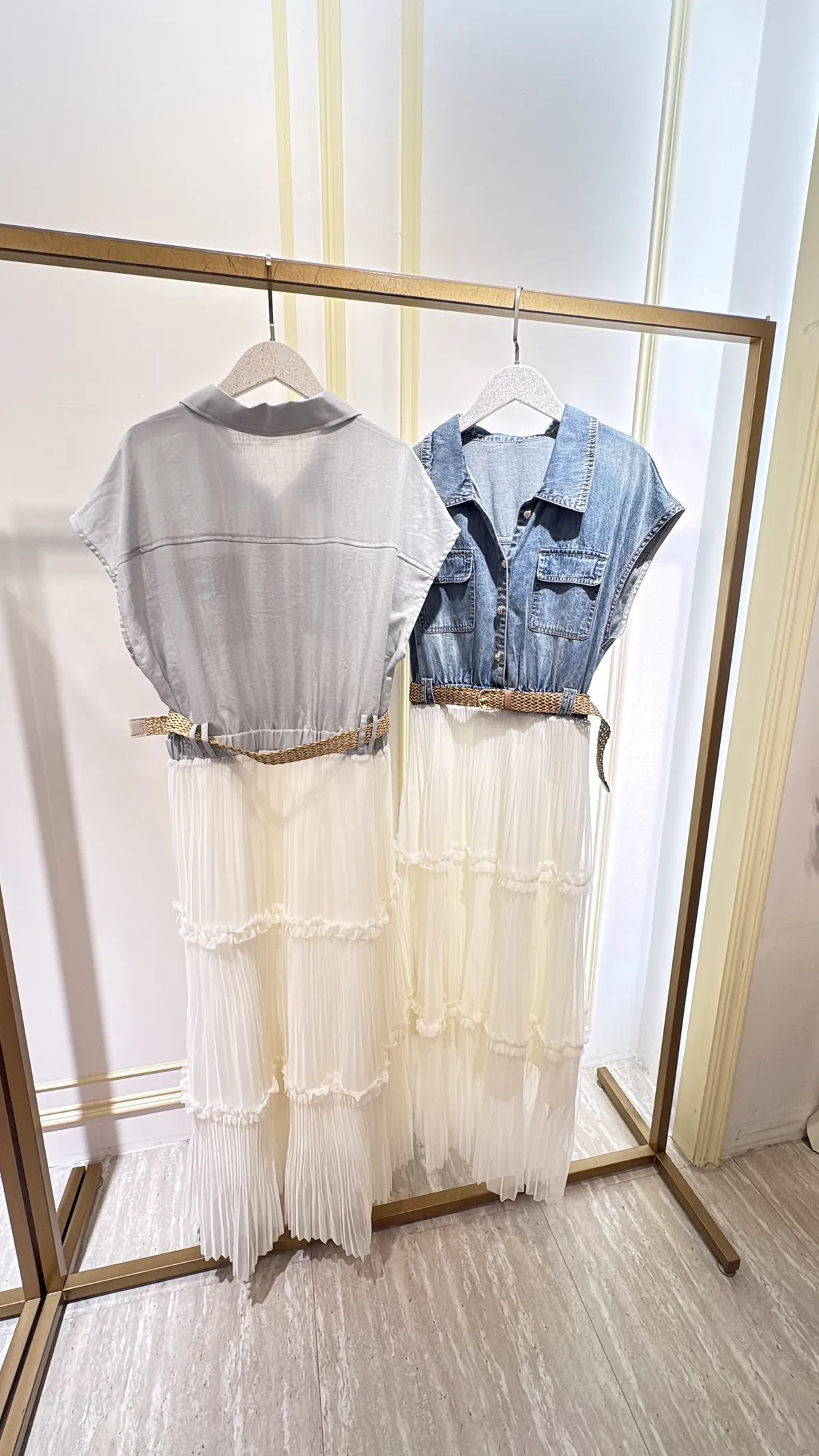 T267牛仔蛋糕紗長洋裝