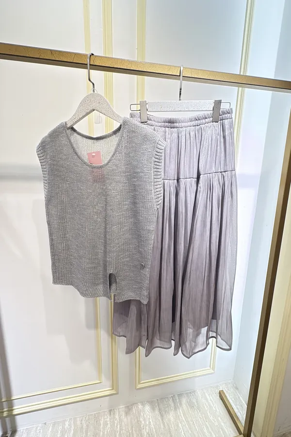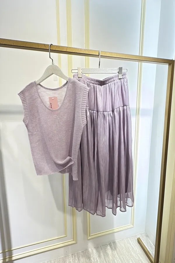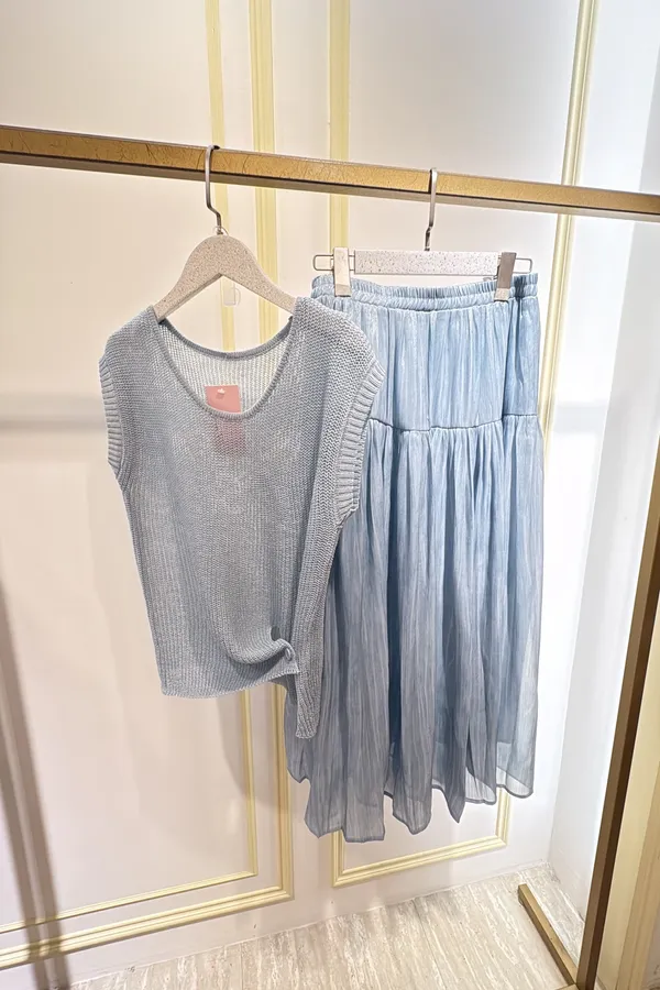 T302手勾衣珠光裙套裝